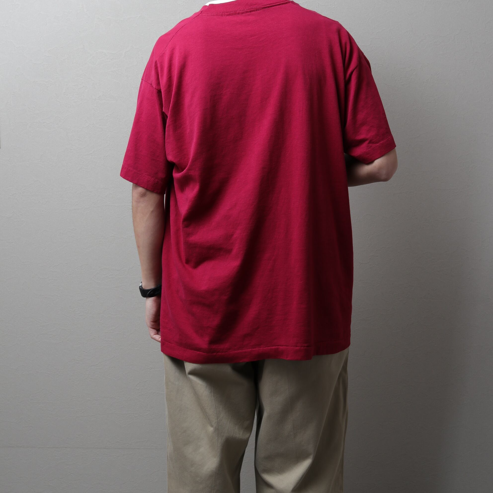 アメリカ製フルーツオブザルームボディ、袖裾シングルステッチ。