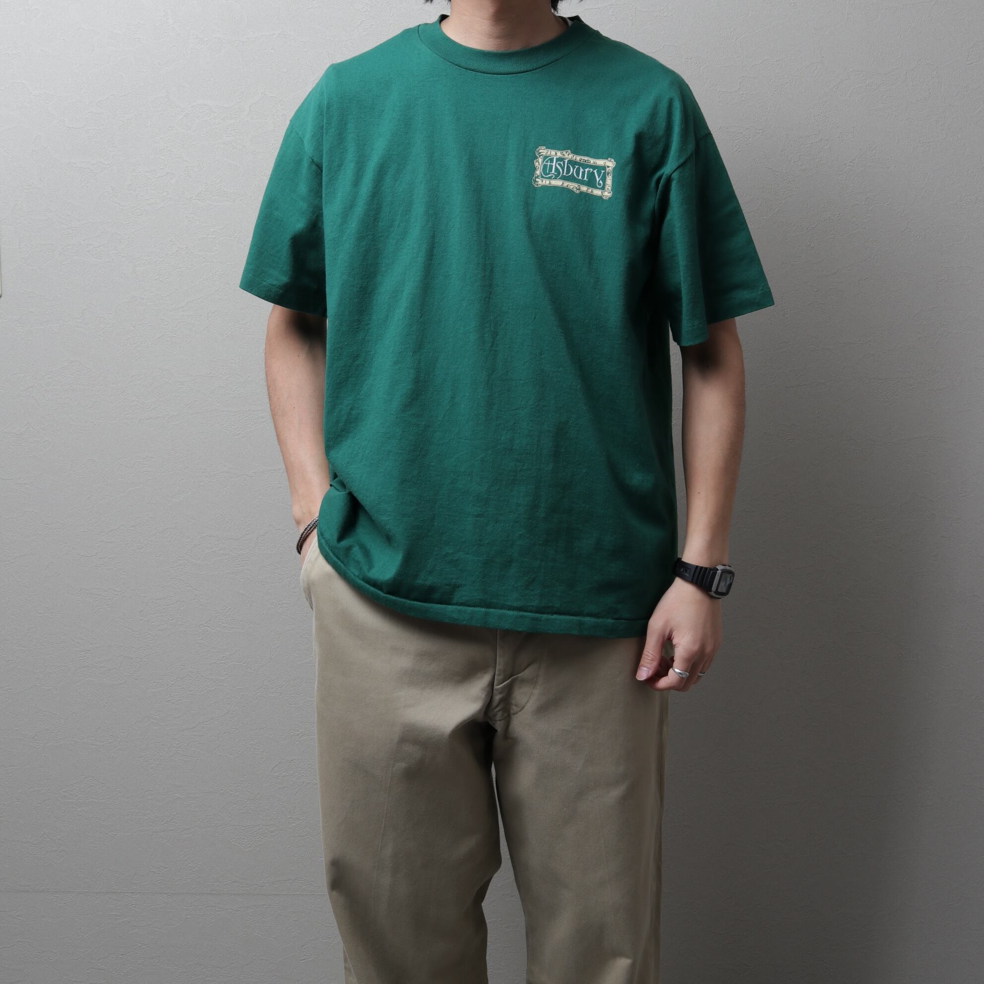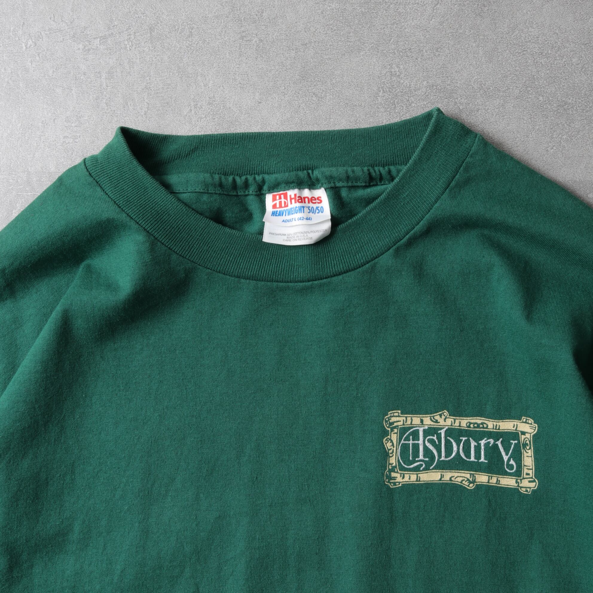 アメリカ製ヘインズのヘビーウェイトボディ、袖裾シングルステッチ。