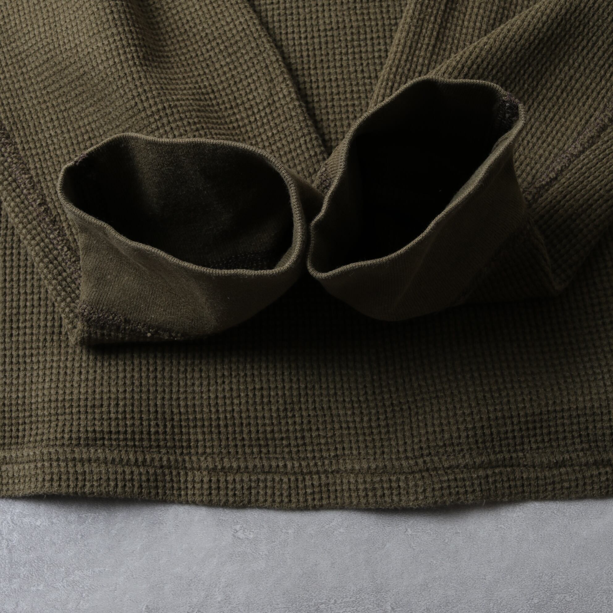 もともとスリーピングウェア用に開発されたものなのでワッフル状の綿の着心地は抜群。