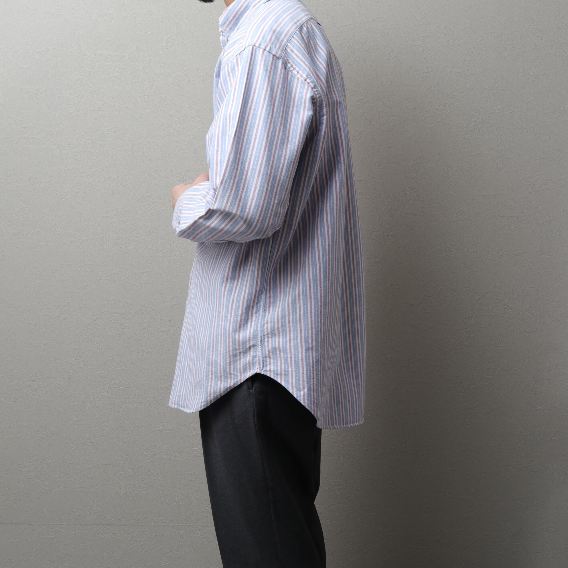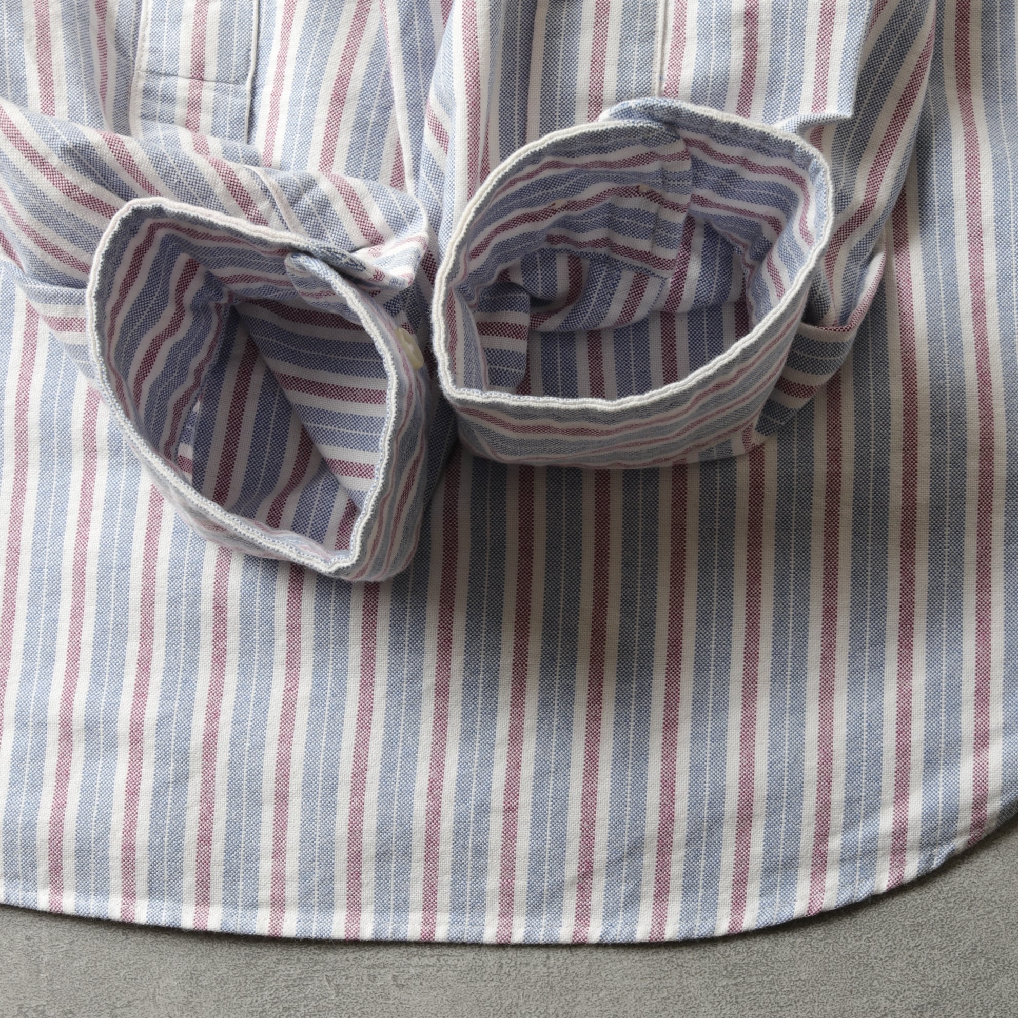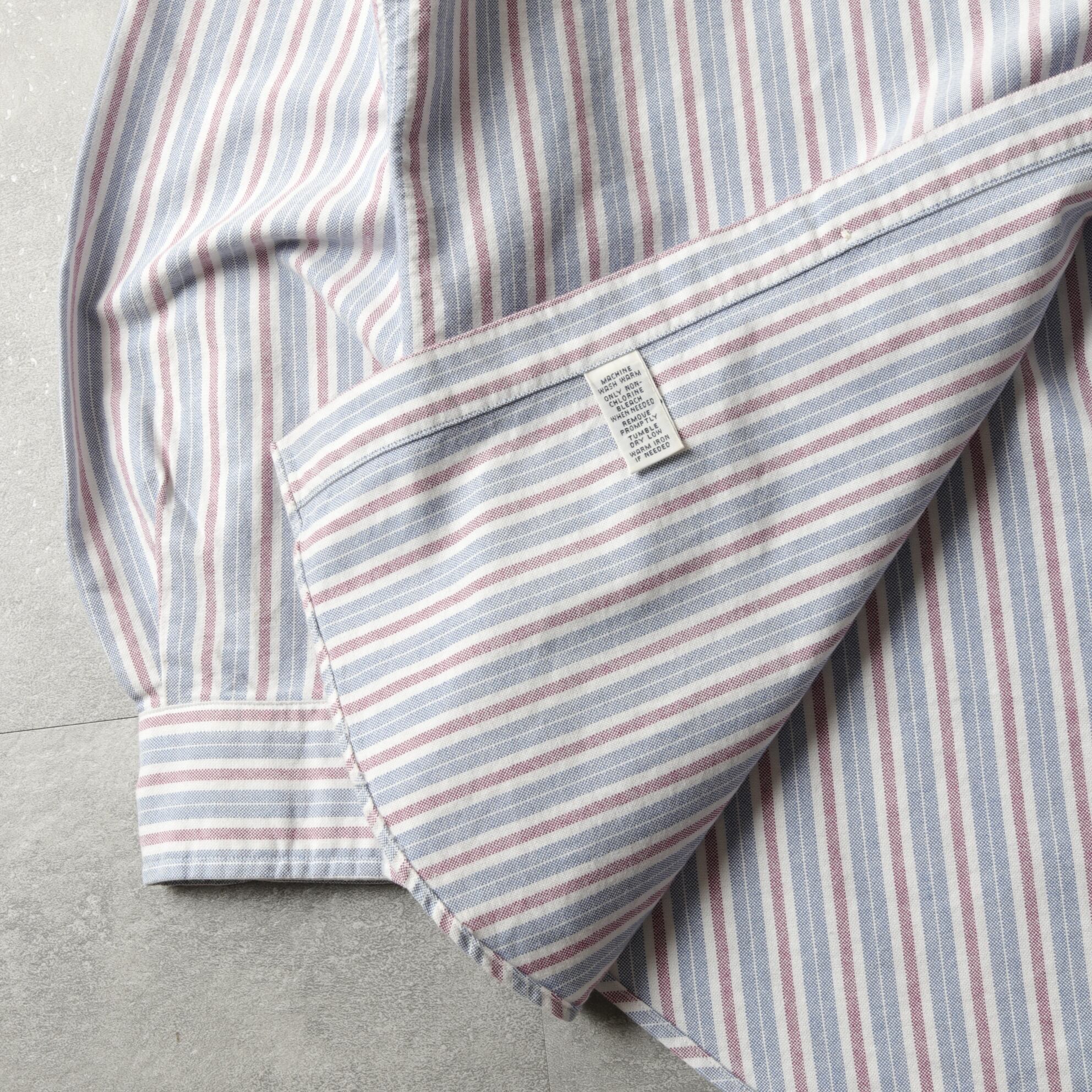 タフなオックスフォード生地に淡い配色のキャンディストライプ。