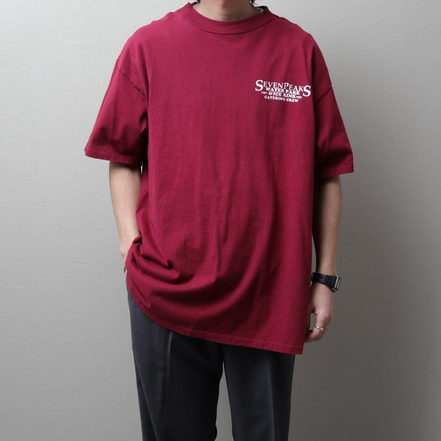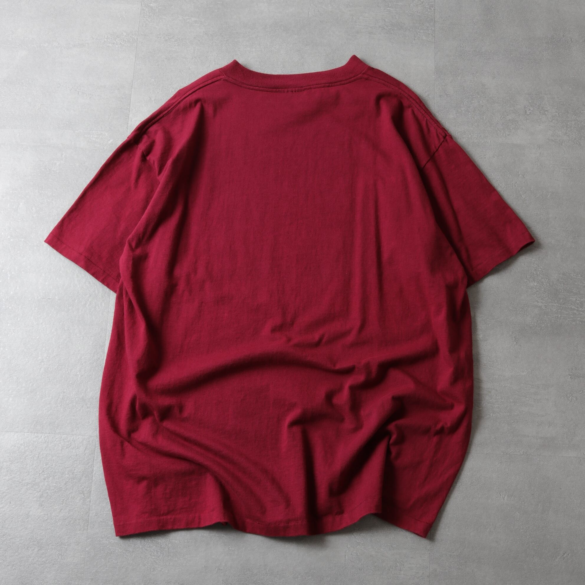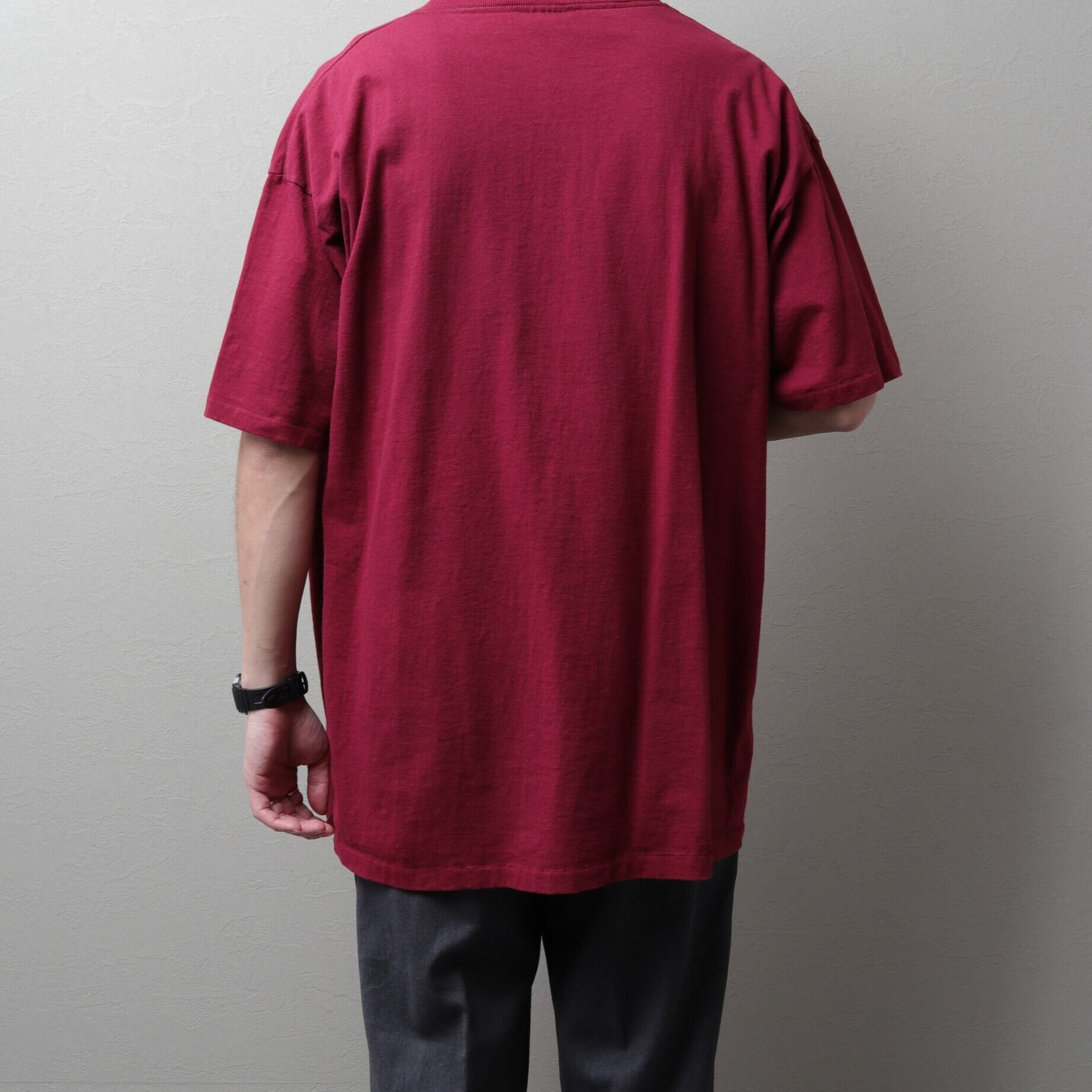 ワインレッドに胸プリントだけのシンプルなデザイン。
