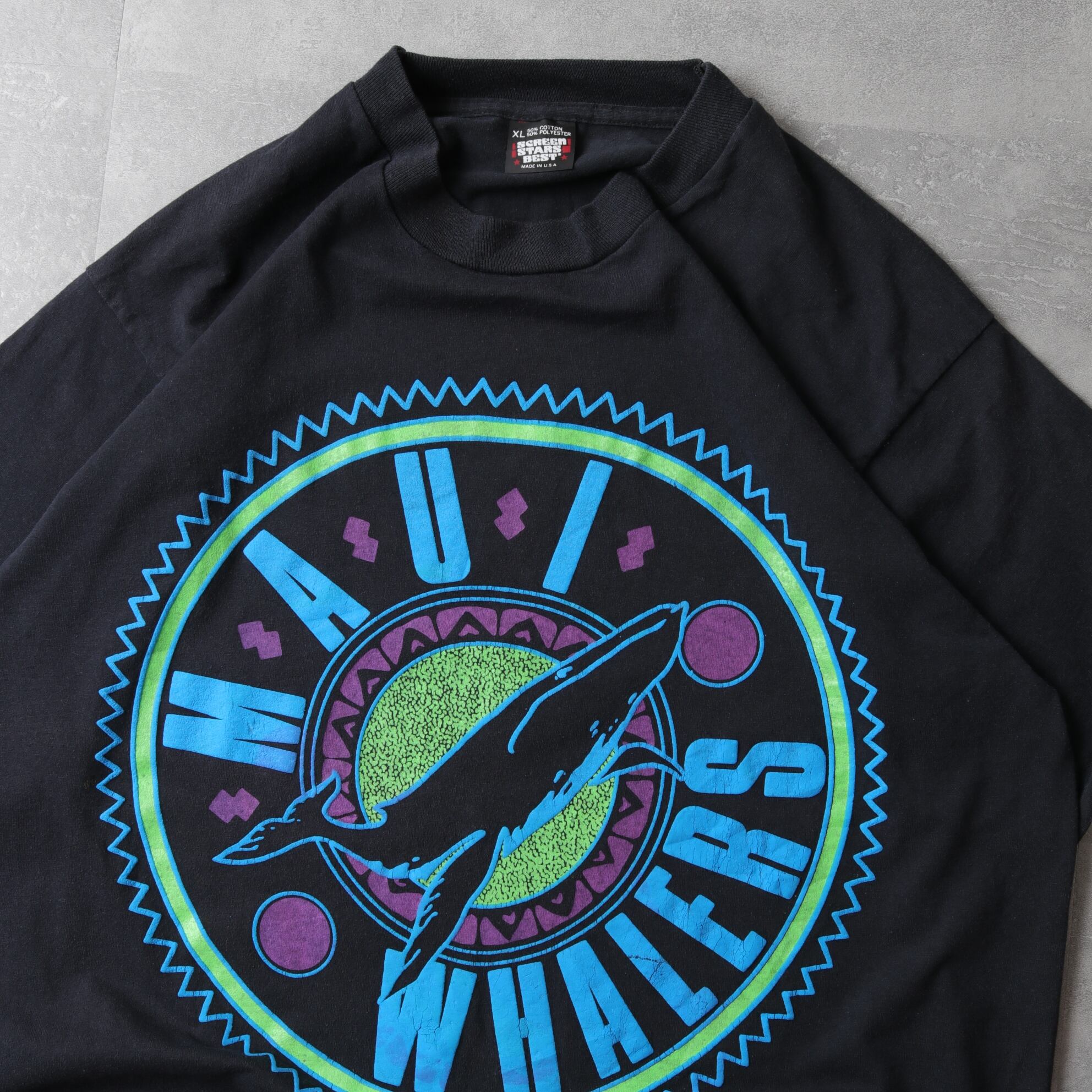 アメリカ製スクリーンスターズのコットンポリ50/50ボディ、袖裾シングルです。