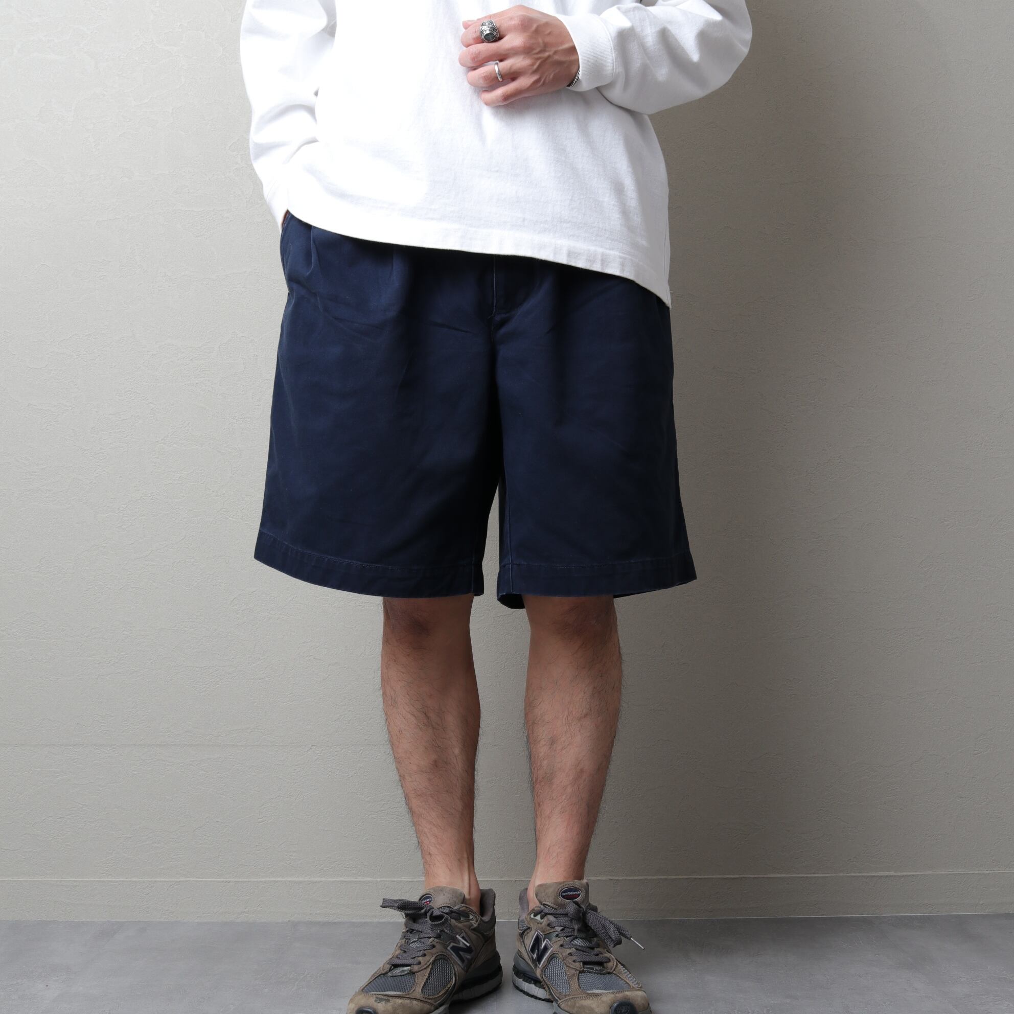 膝~膝上丈でウエストにプリーツが入り、深い股上と広い渡りが特徴の「TYLER SHORT」