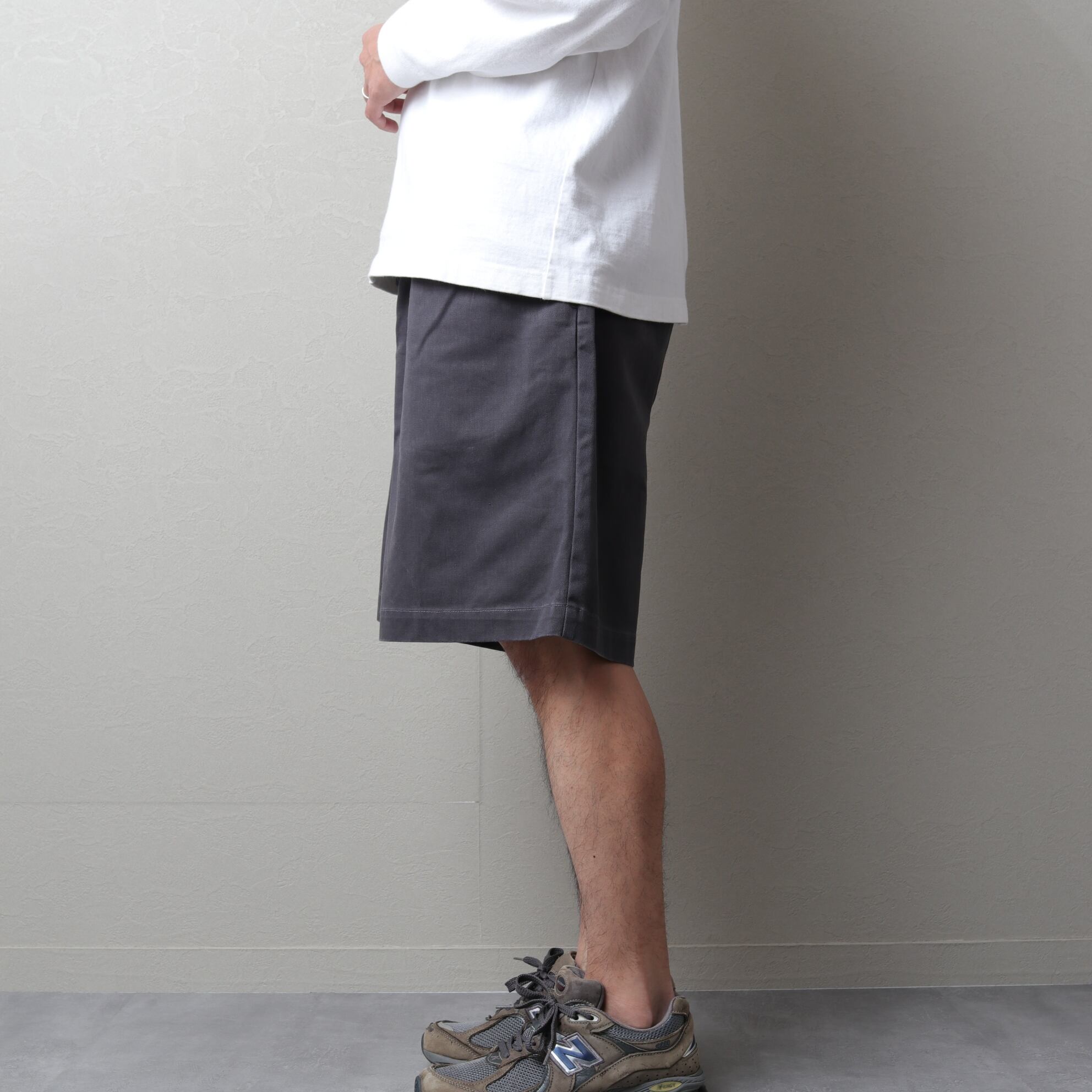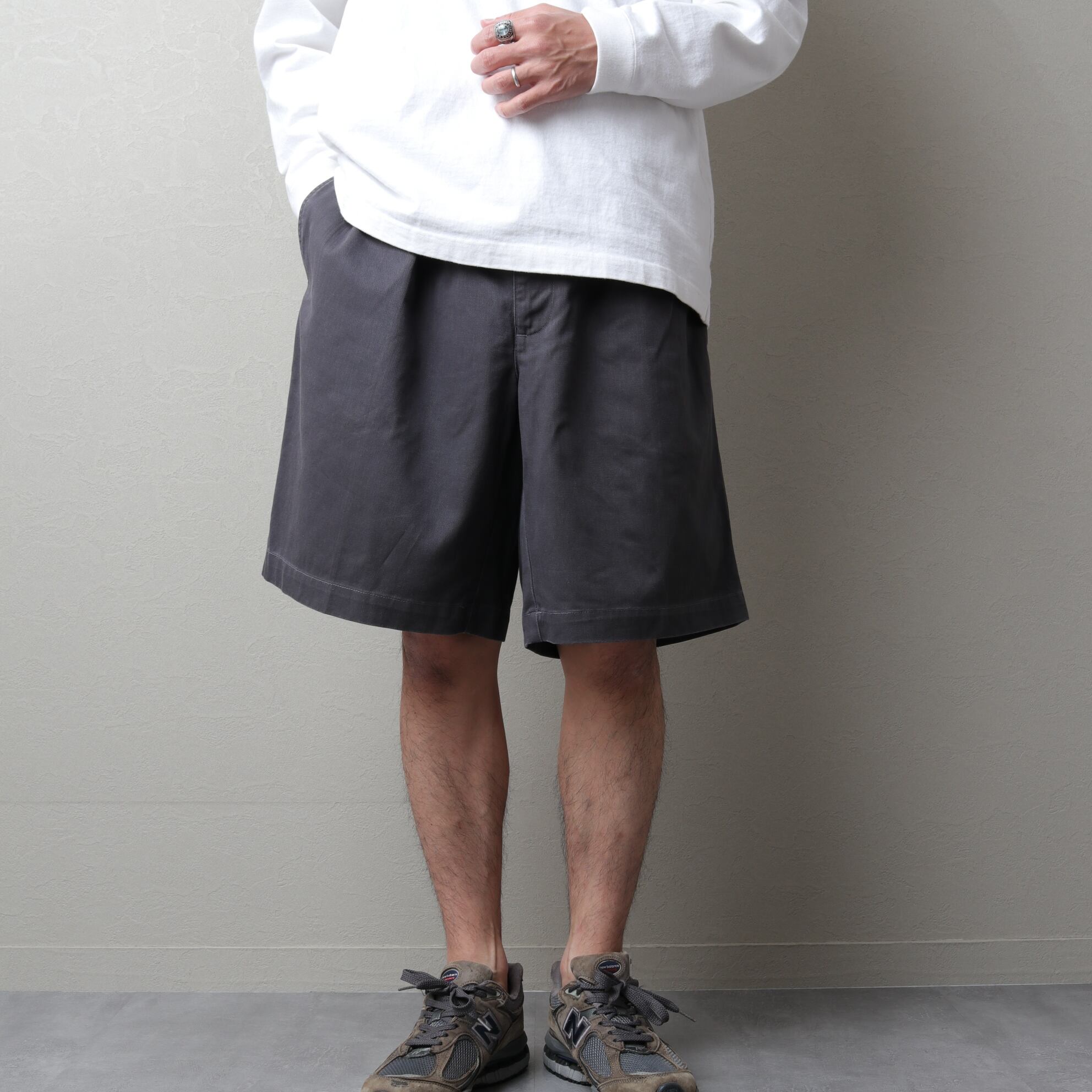 膝~膝上丈でウエストにプリーツが入り、深い股上と広い渡りが特徴の「TYLER SHORT」