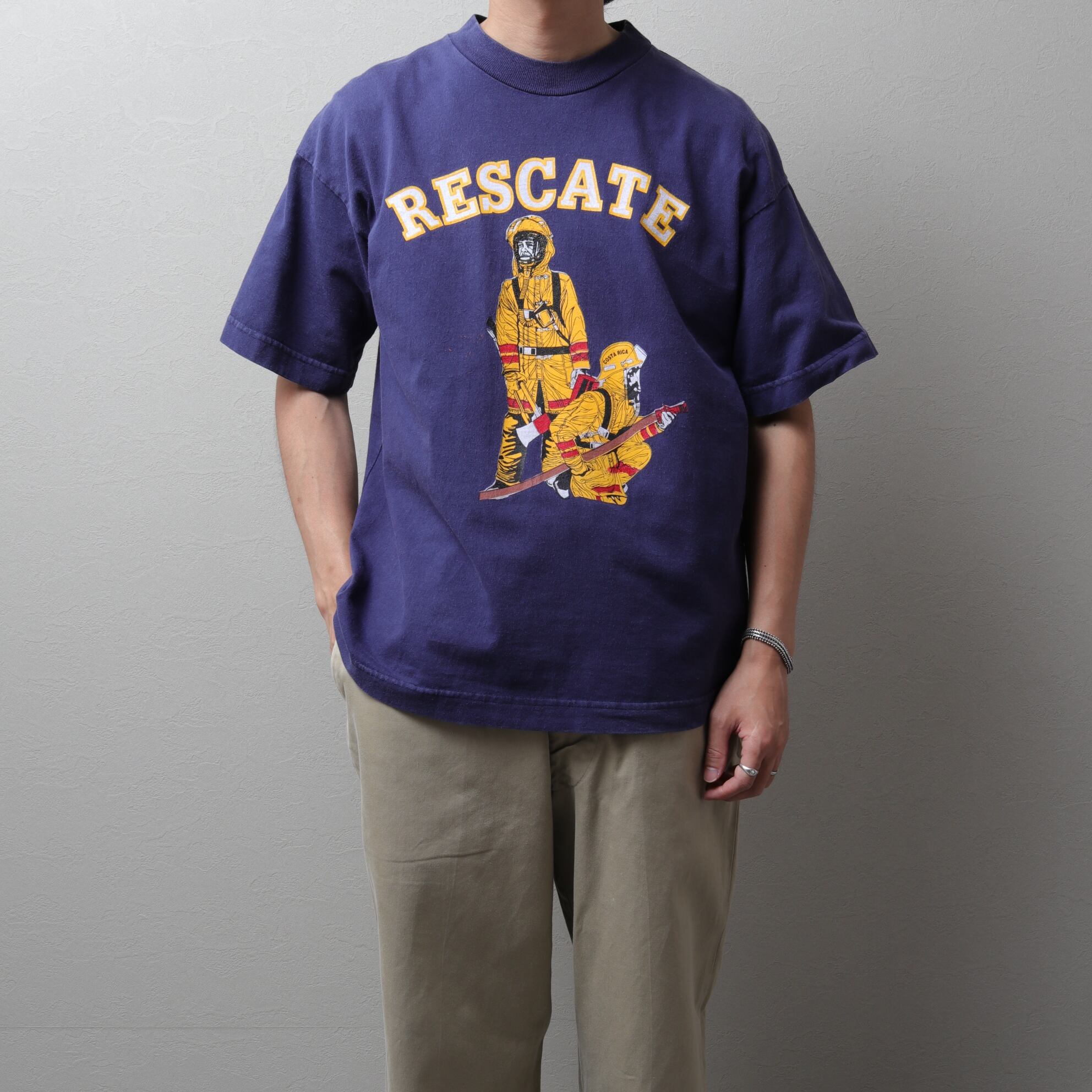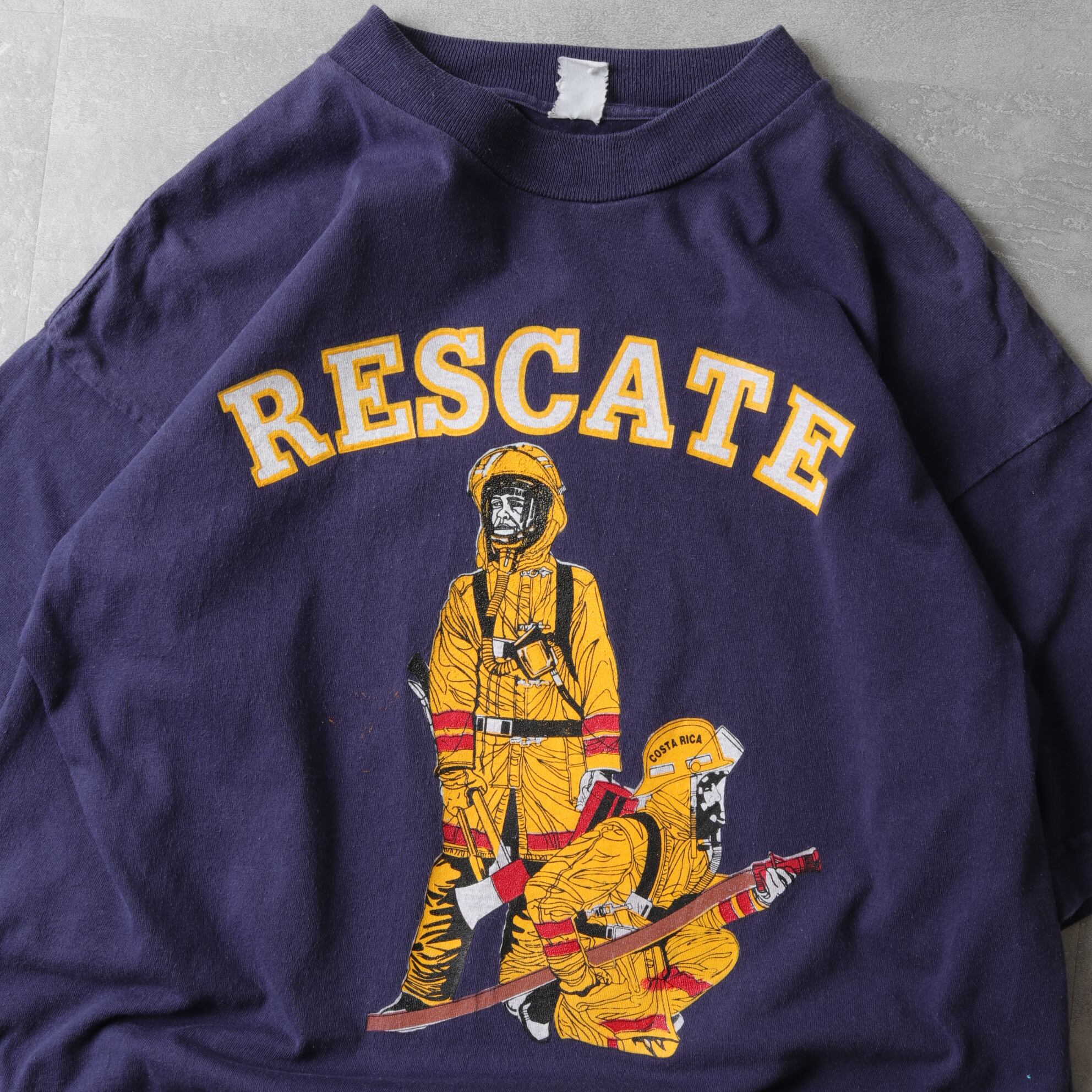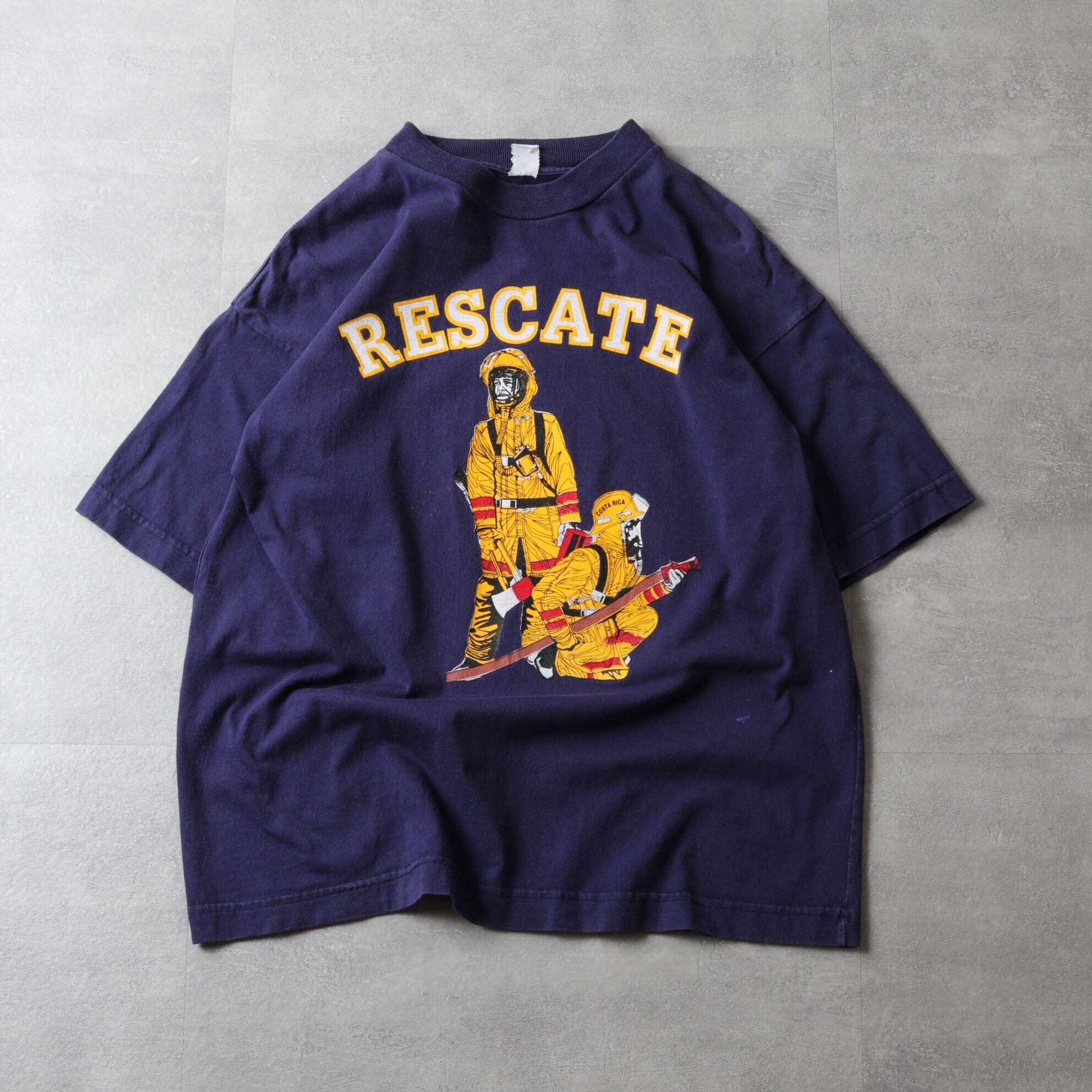 中米コスタリカの消防隊とスパニッシュが描かれたプリントTee。