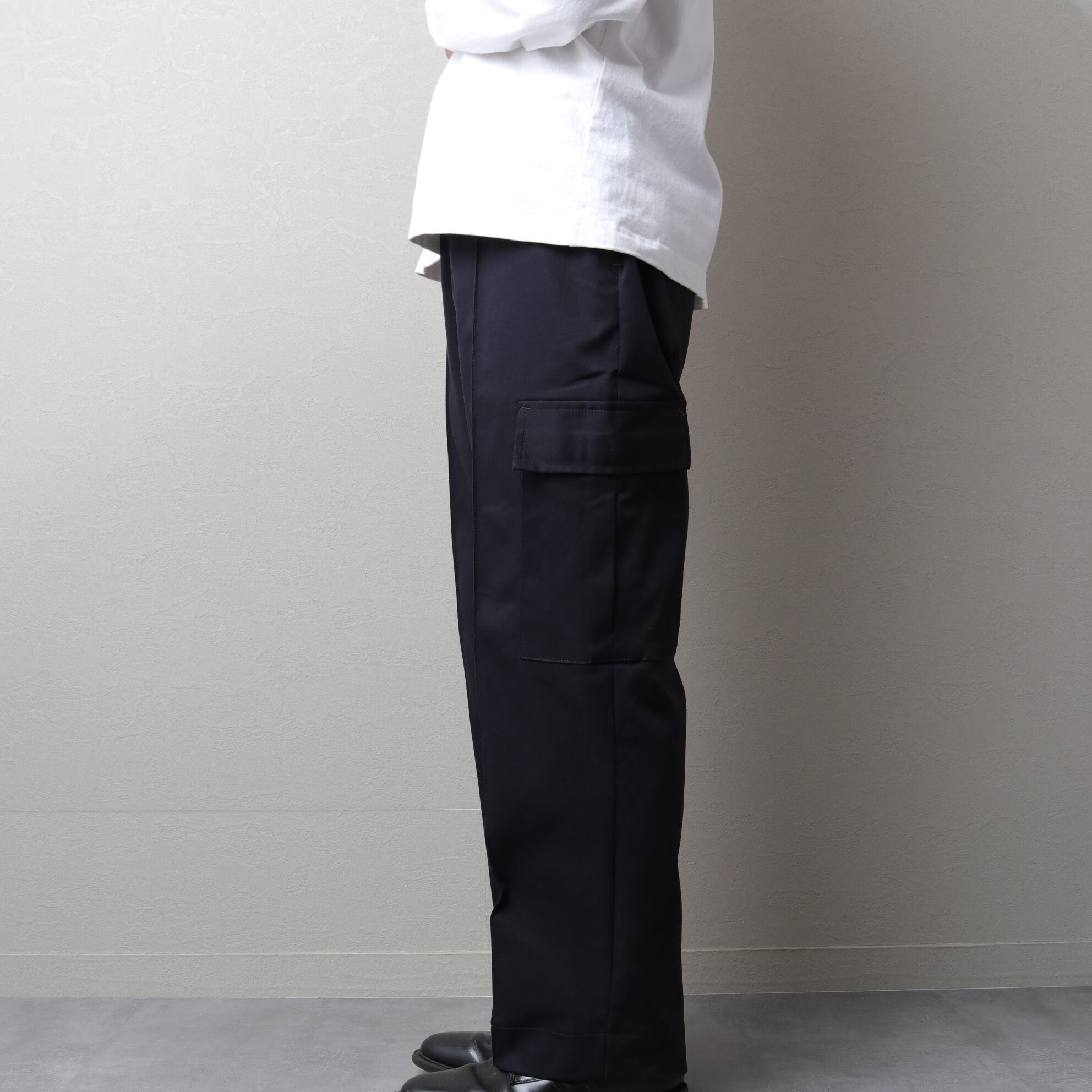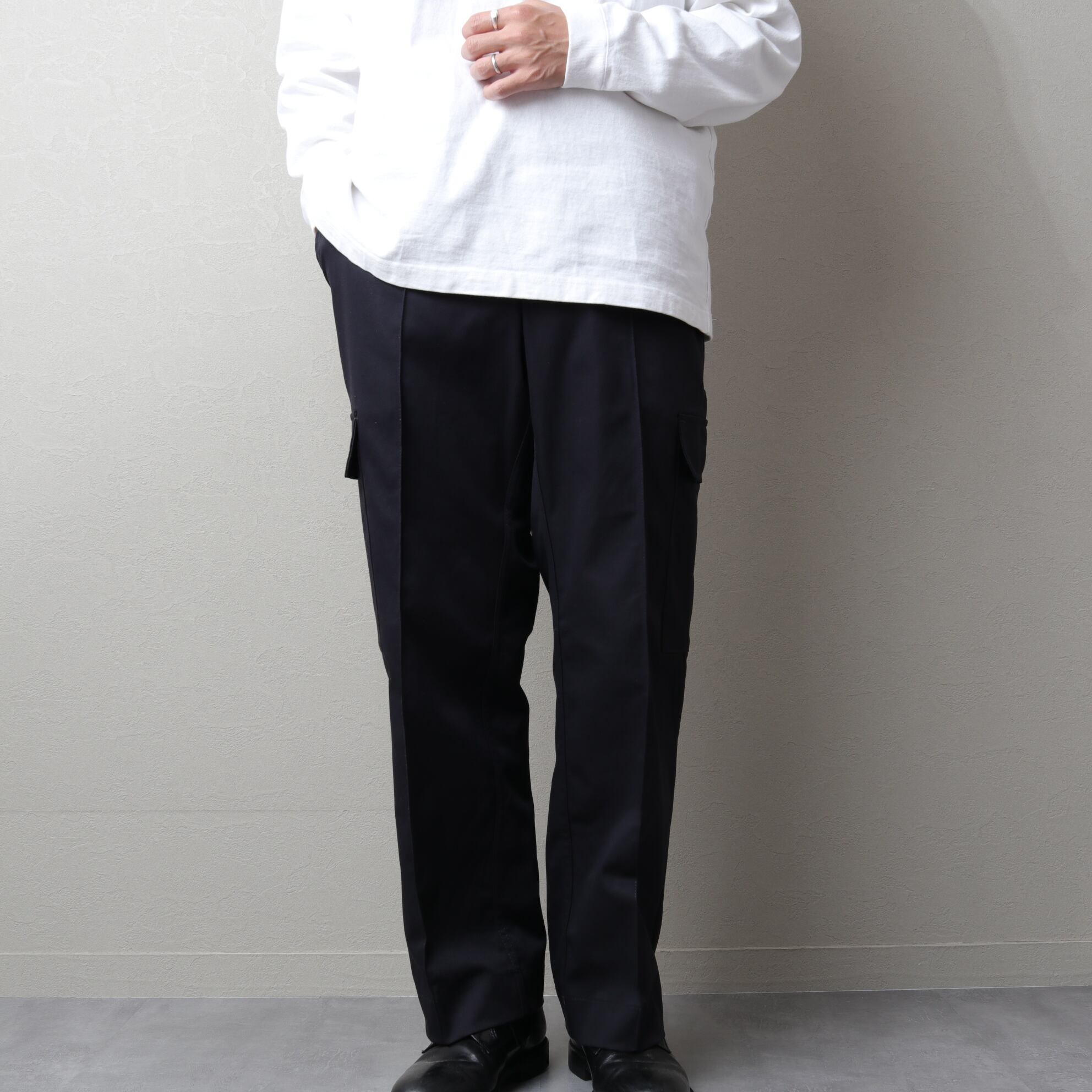 ブラックという色もあり、ドレストラウザーにプラップポケットが付いたような品のあるカーゴ。