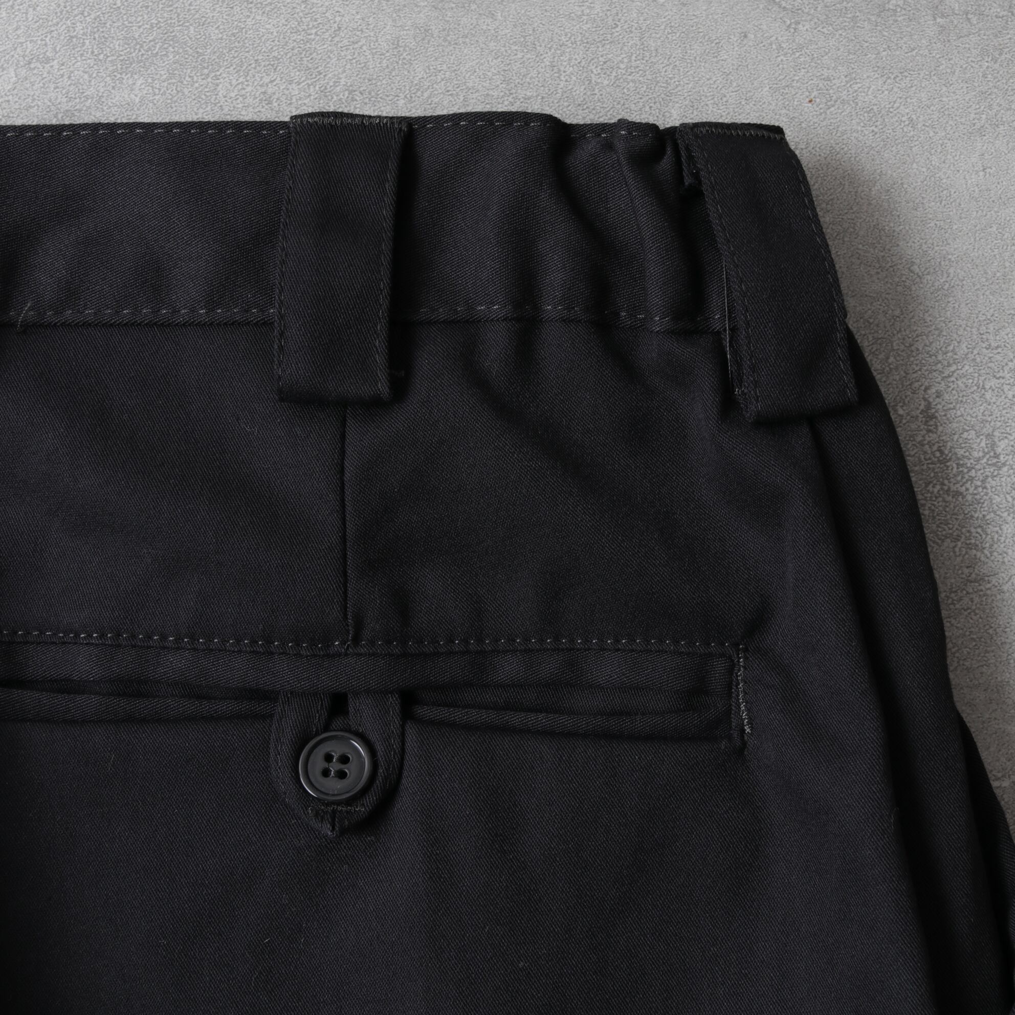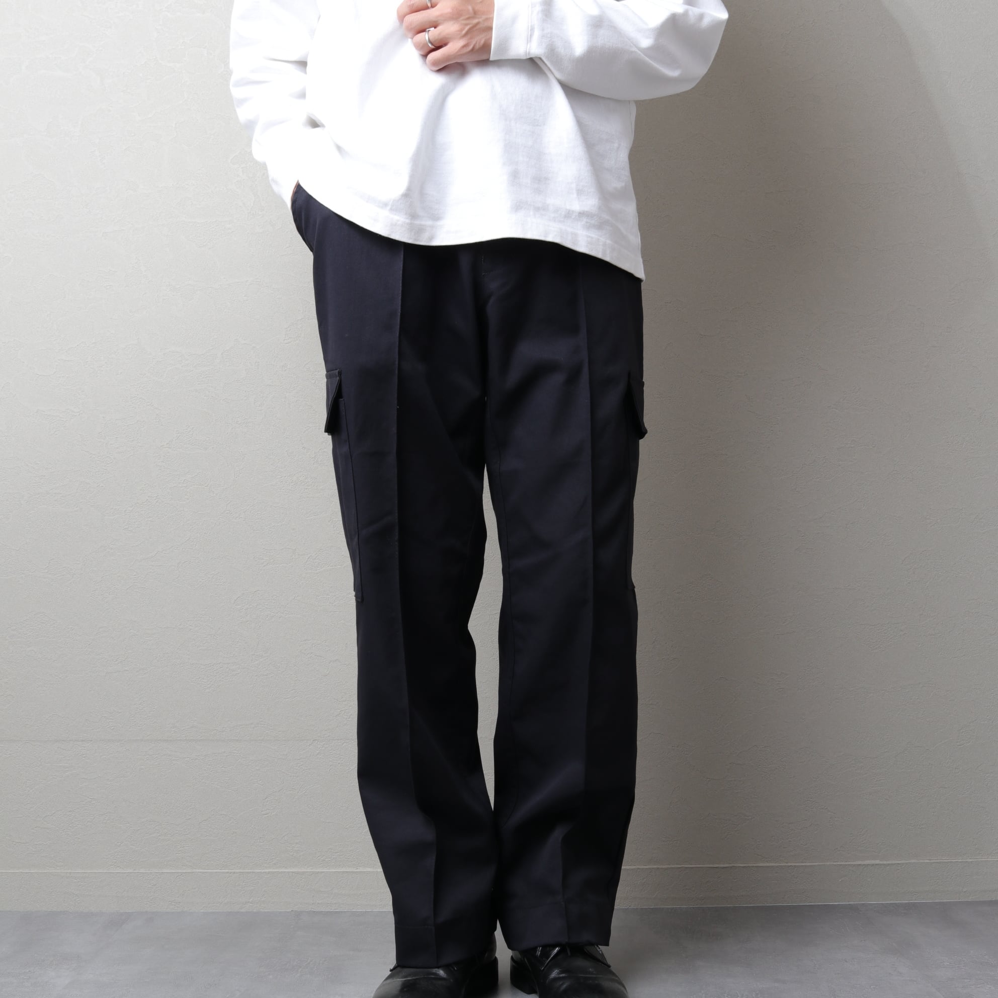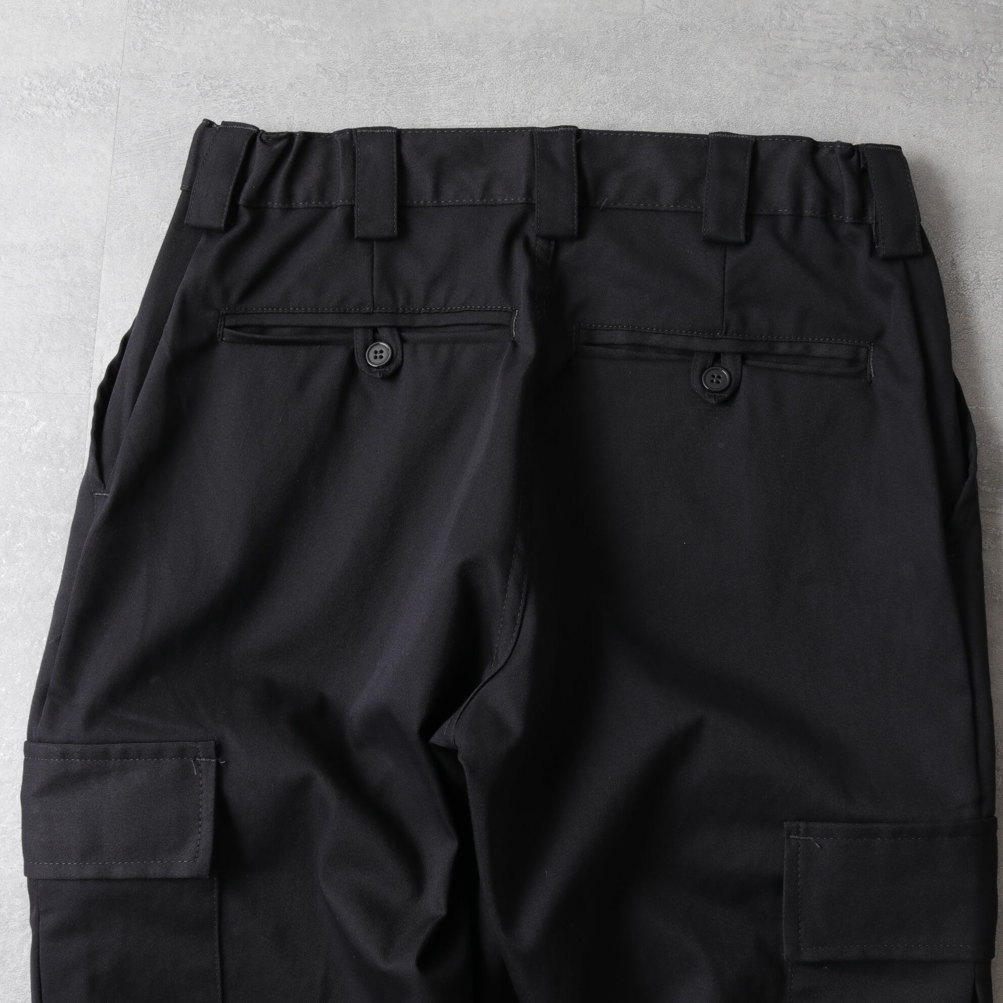 ブラックという色もあり、ドレストラウザーにプラップポケットが付いたような品のあるカーゴ。