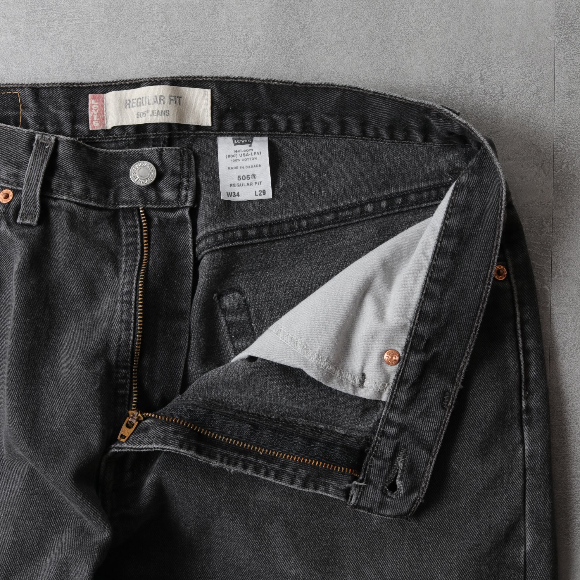 00年代カナダ製の厚みがあり、深みあるグレーに色落ちした一本。