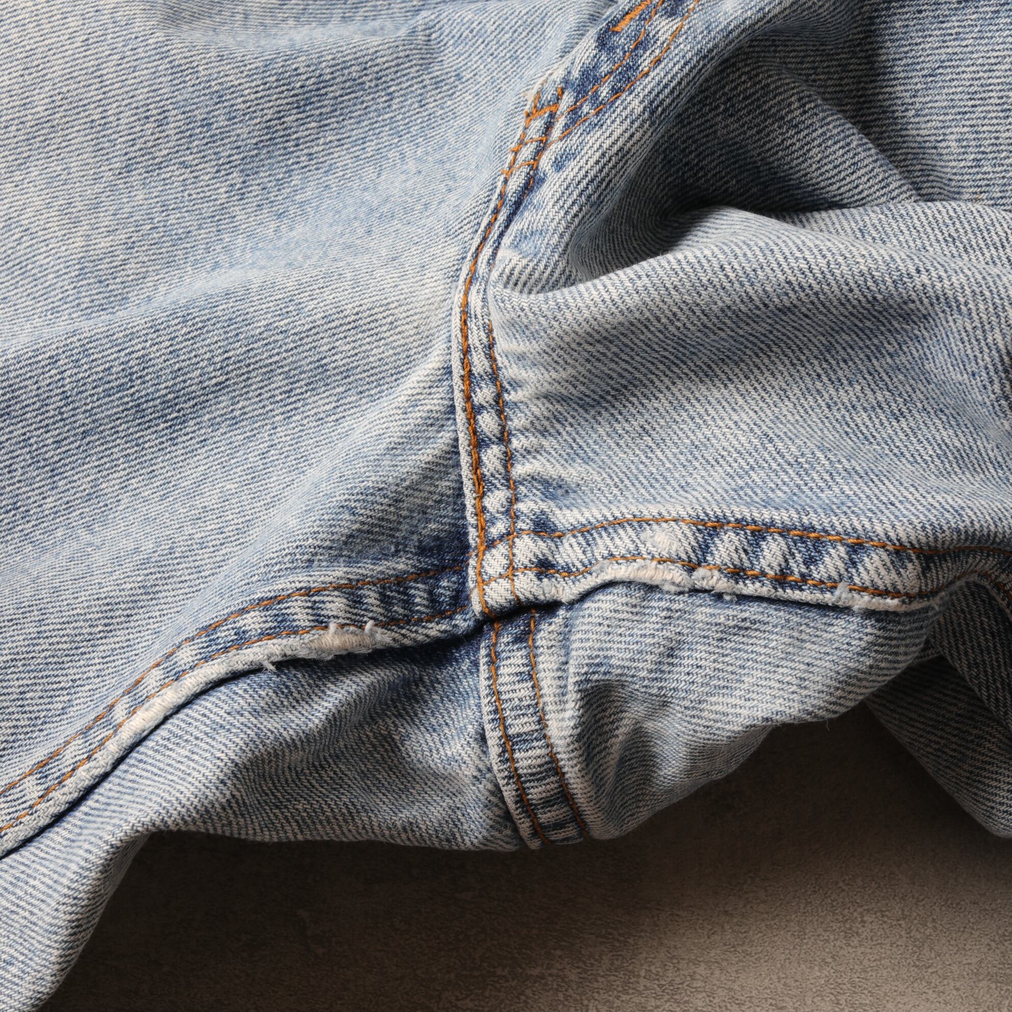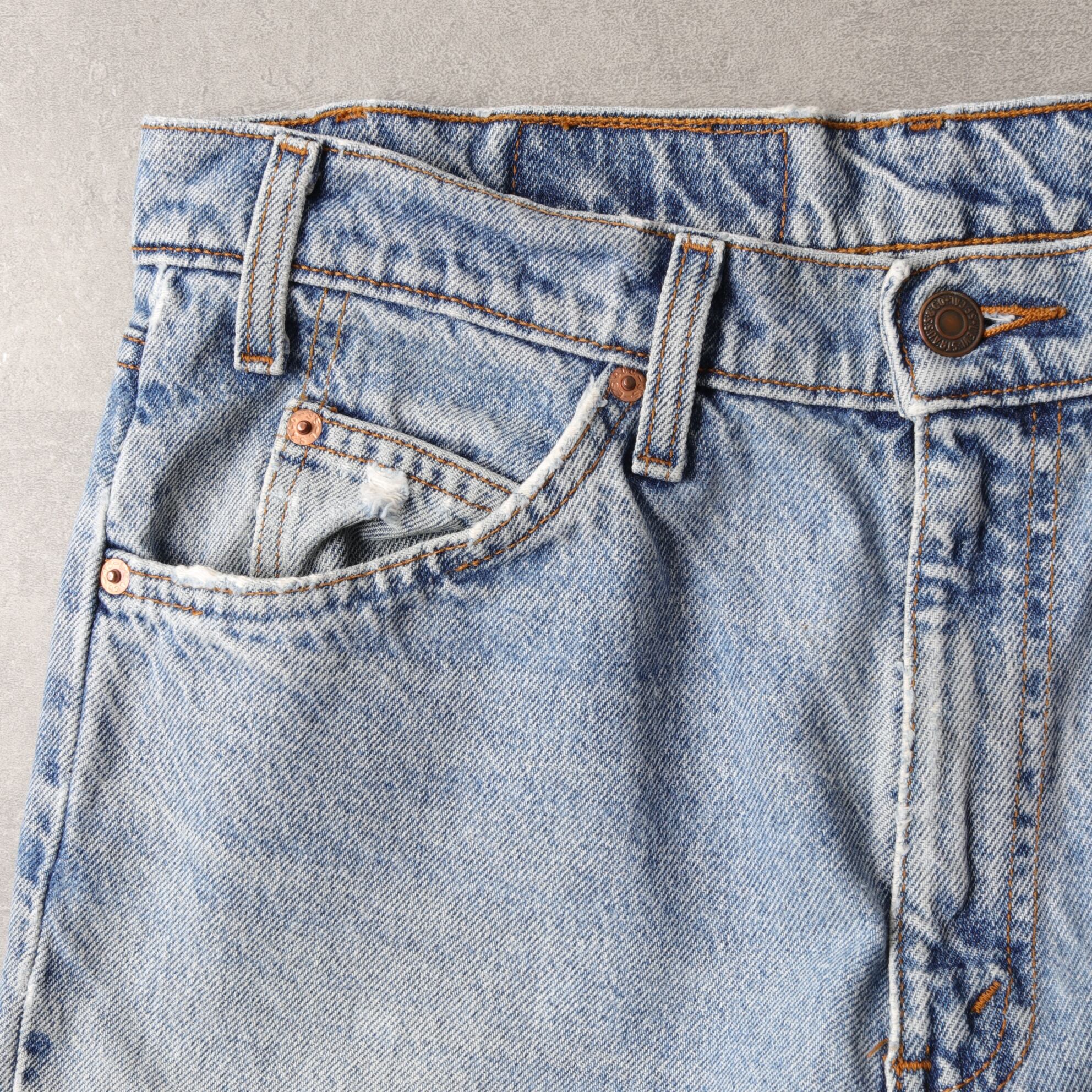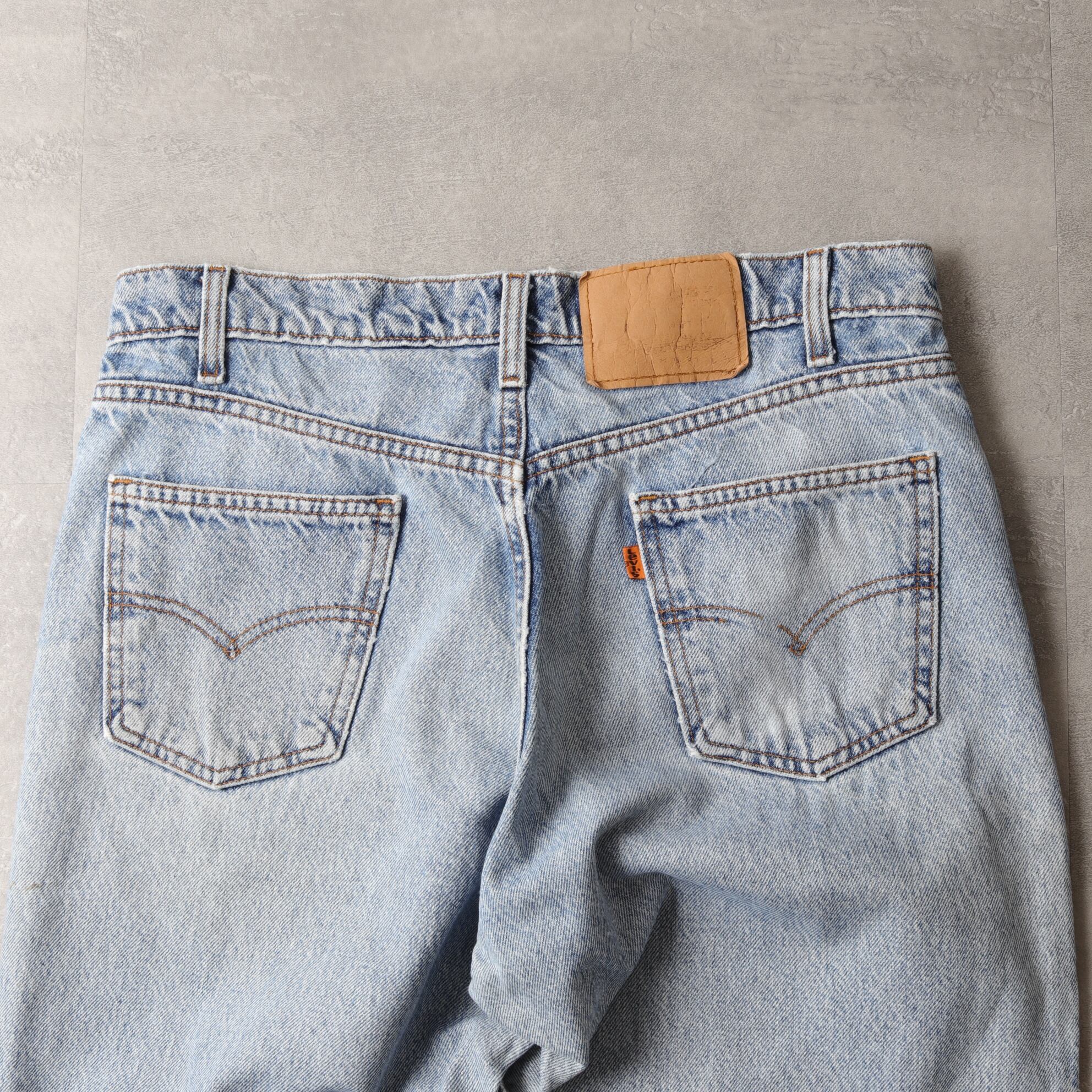 綺麗に色落ちしたアイスブルーにオレンジタブがいたなくて良い具合。
