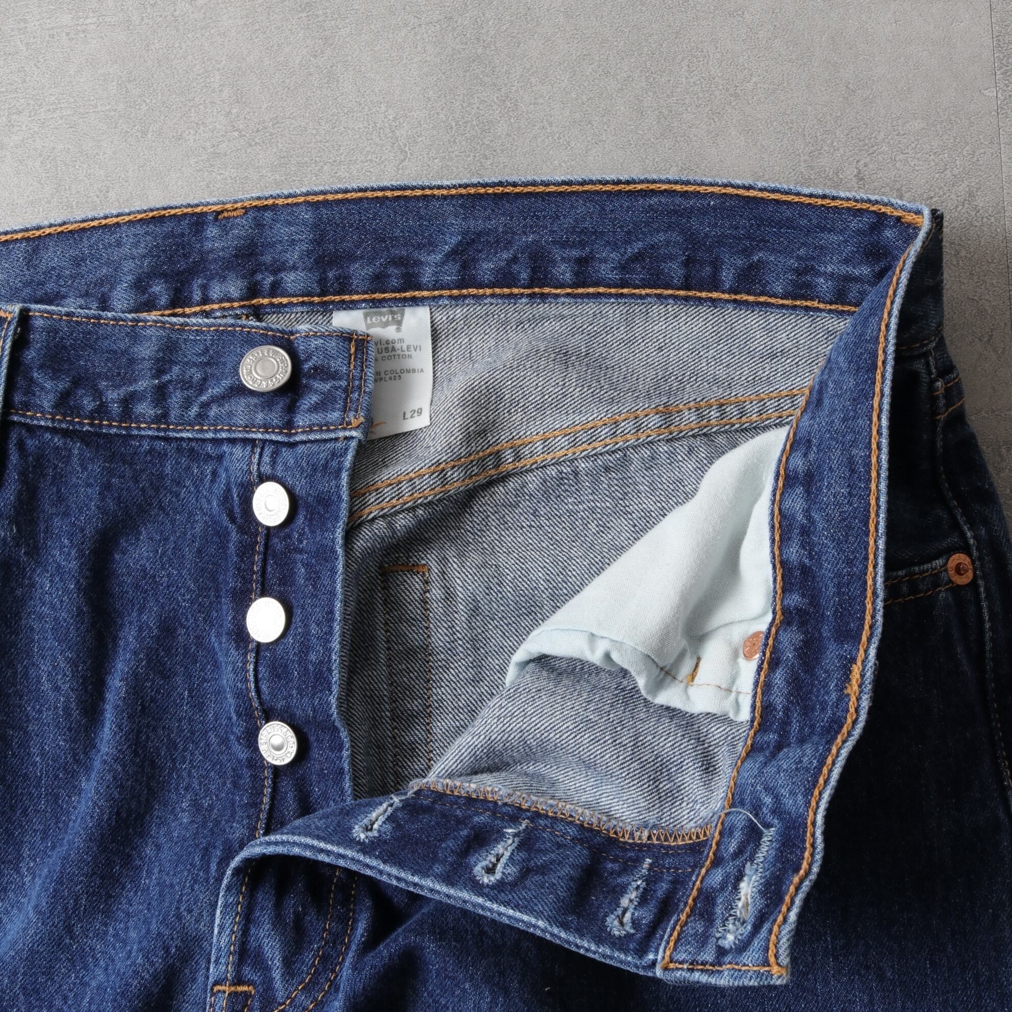03年コロンビア製、希少な濃紺で縦落ちも良い雰囲気。