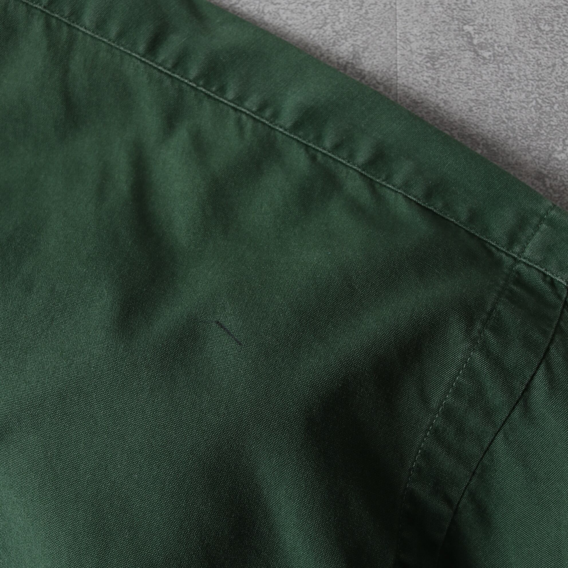 ハリのあるコットンポプリン生地にほぼ見ないオリーブグリーンカラー。