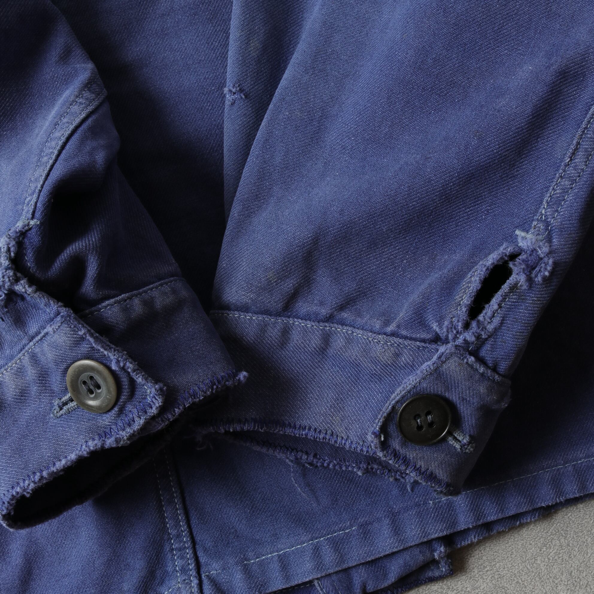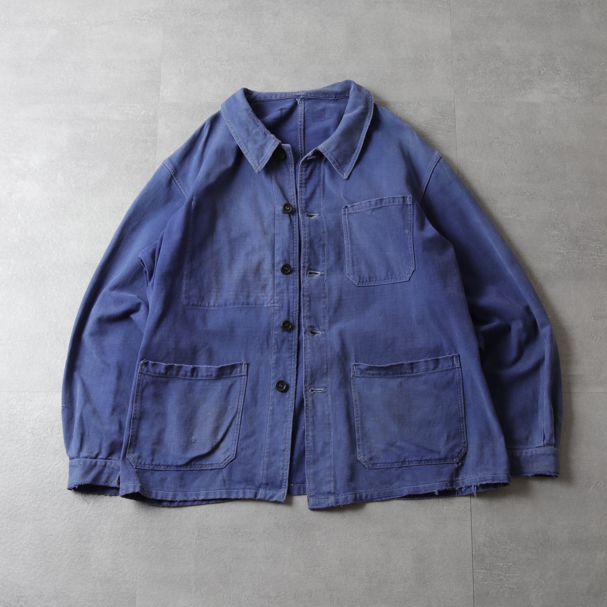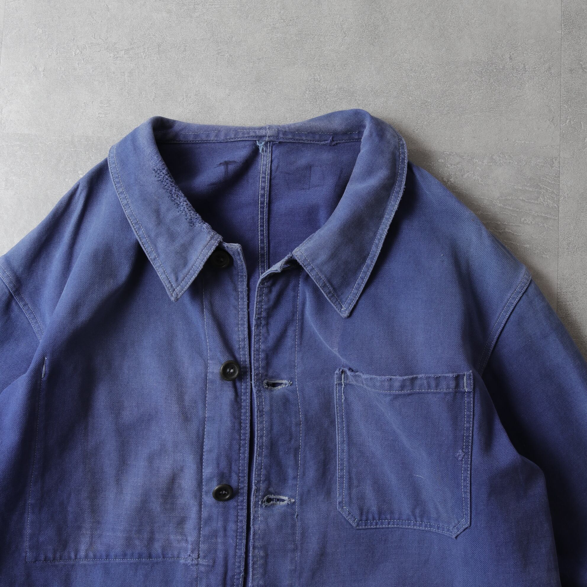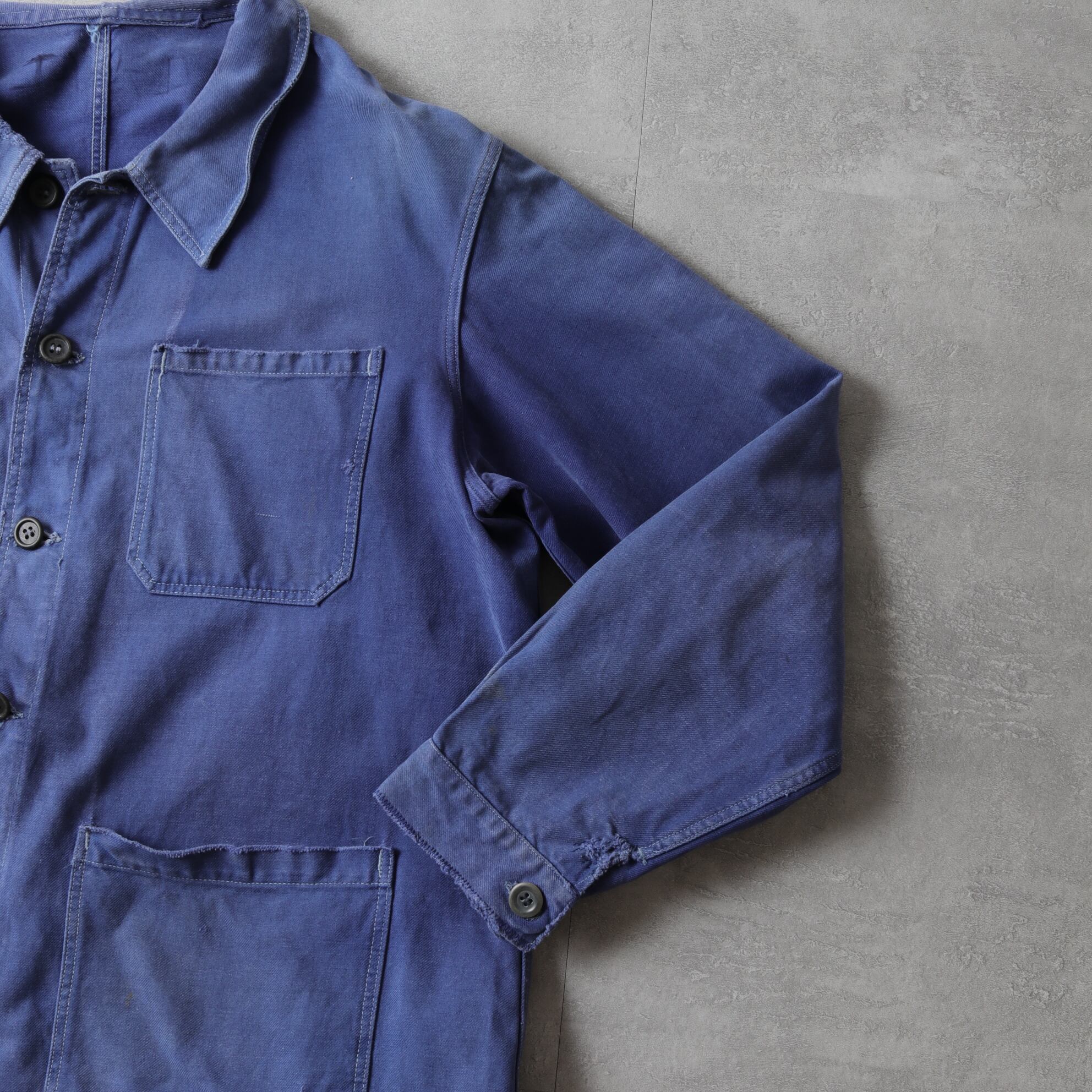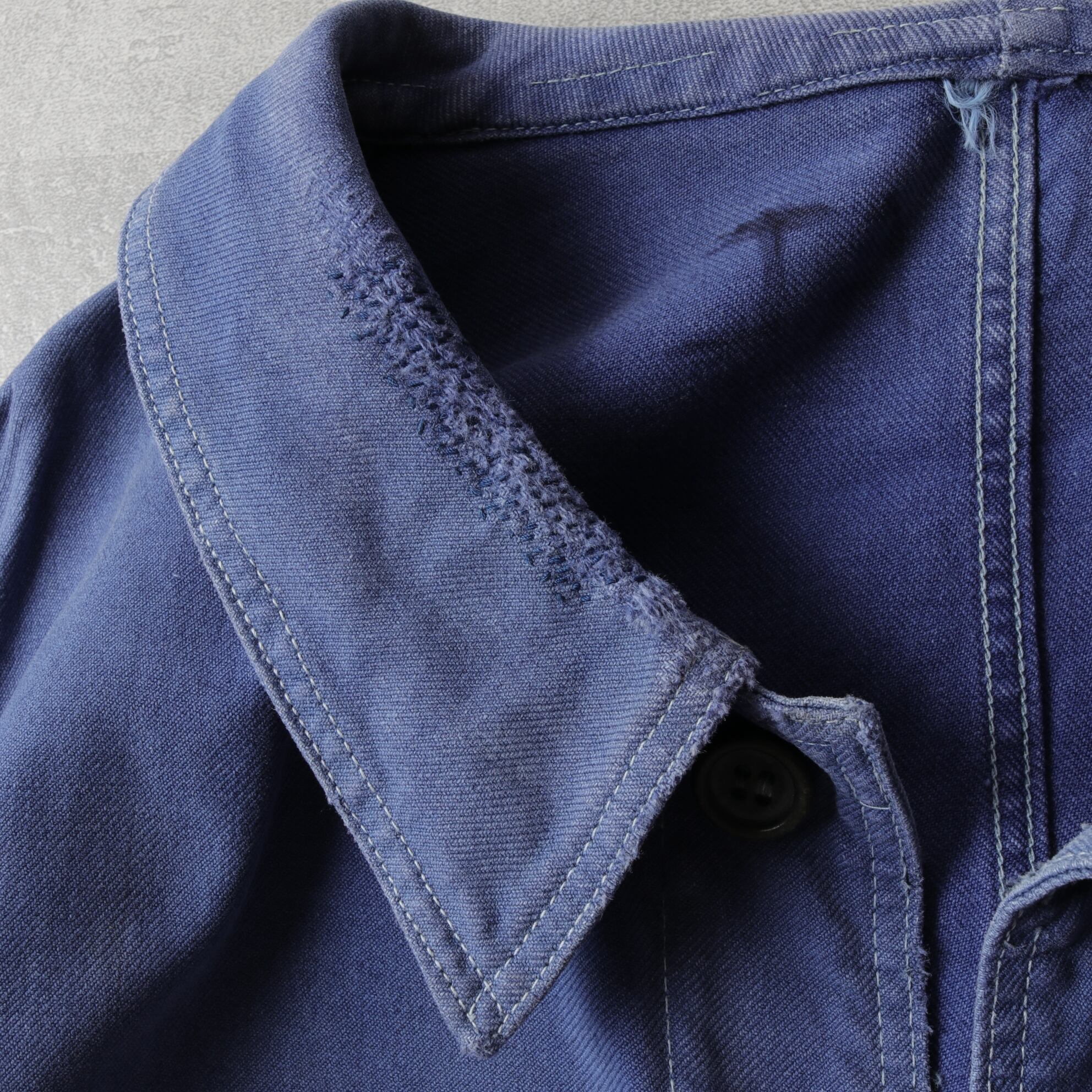 ブルーが退色したコットンツイルの表情が素晴らしく、