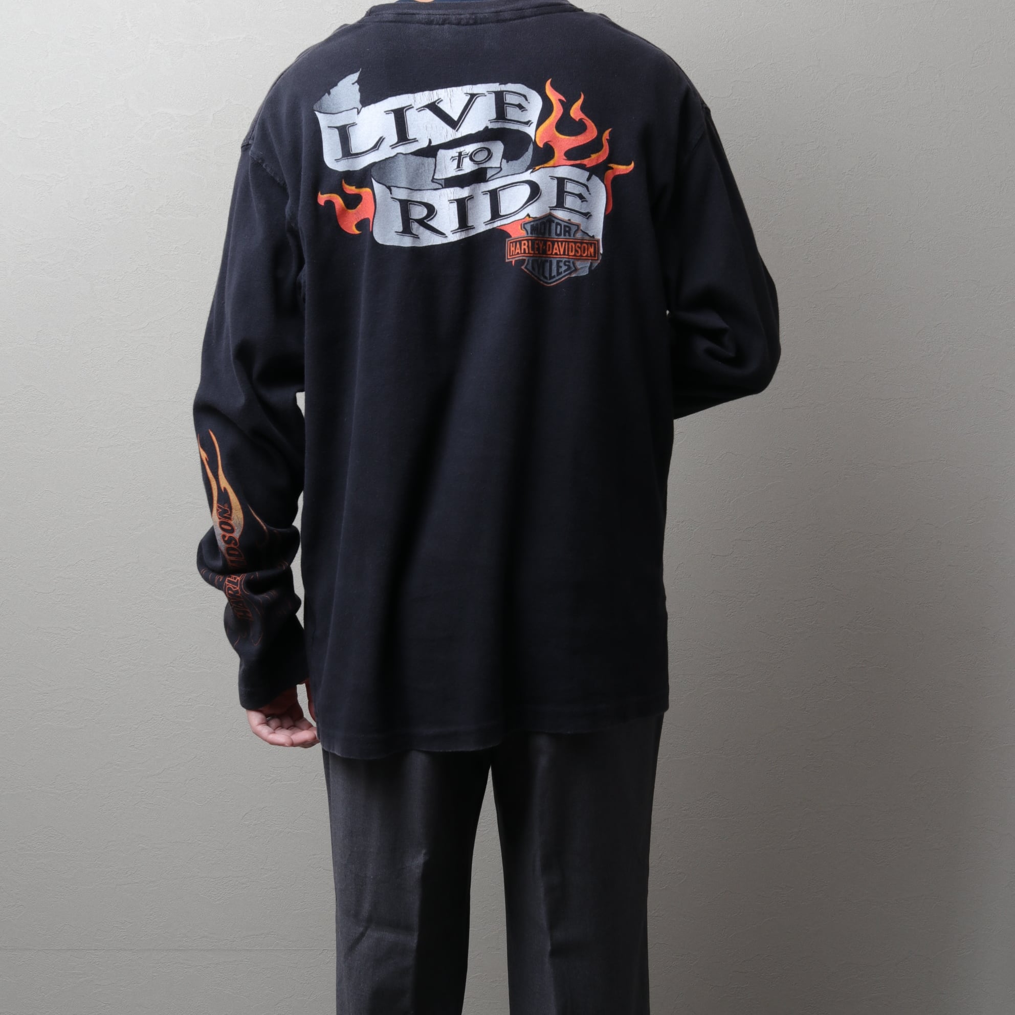 1990's~ Harley-Davidson MadeinUSA L/S T-Shirt "Sleeve Print" 112056