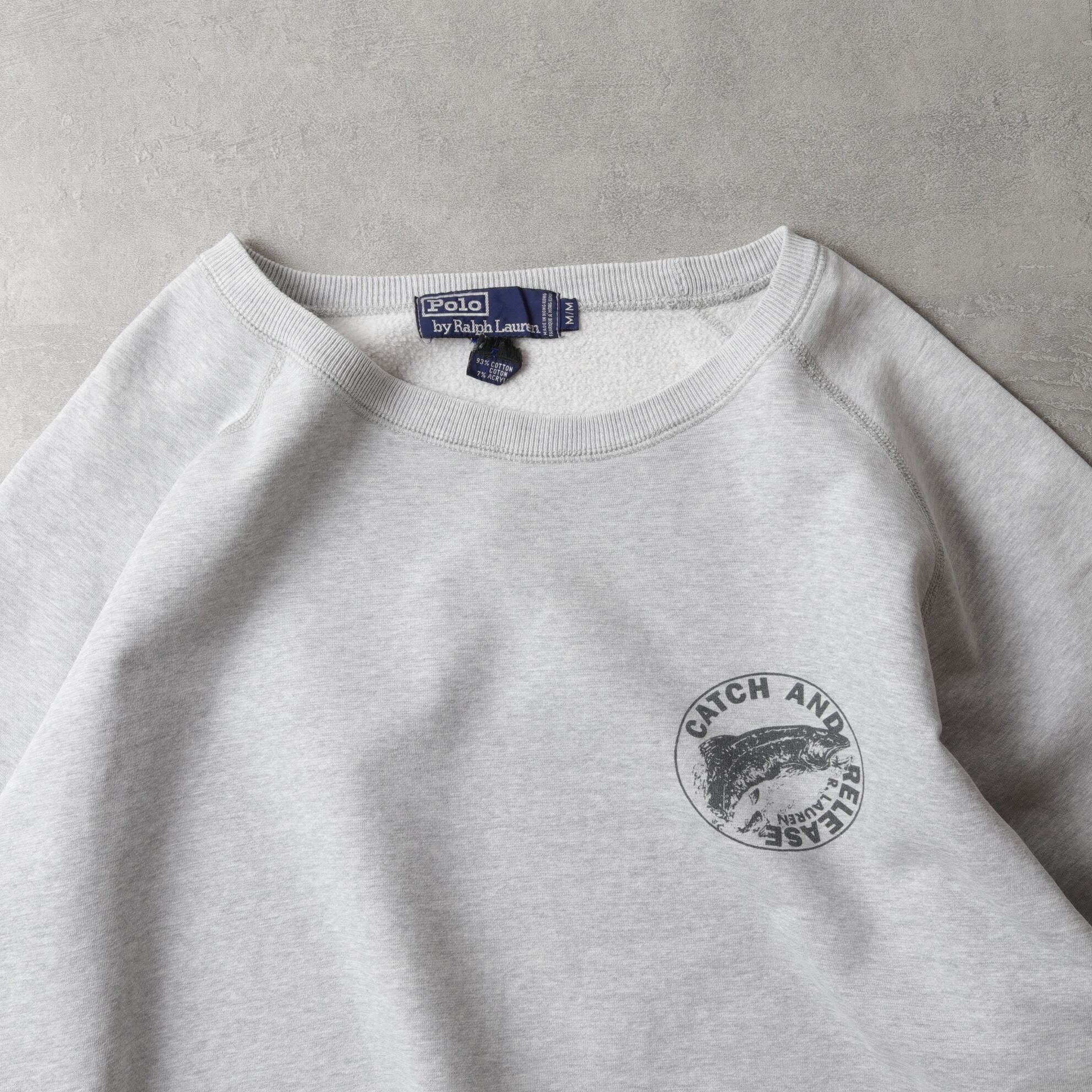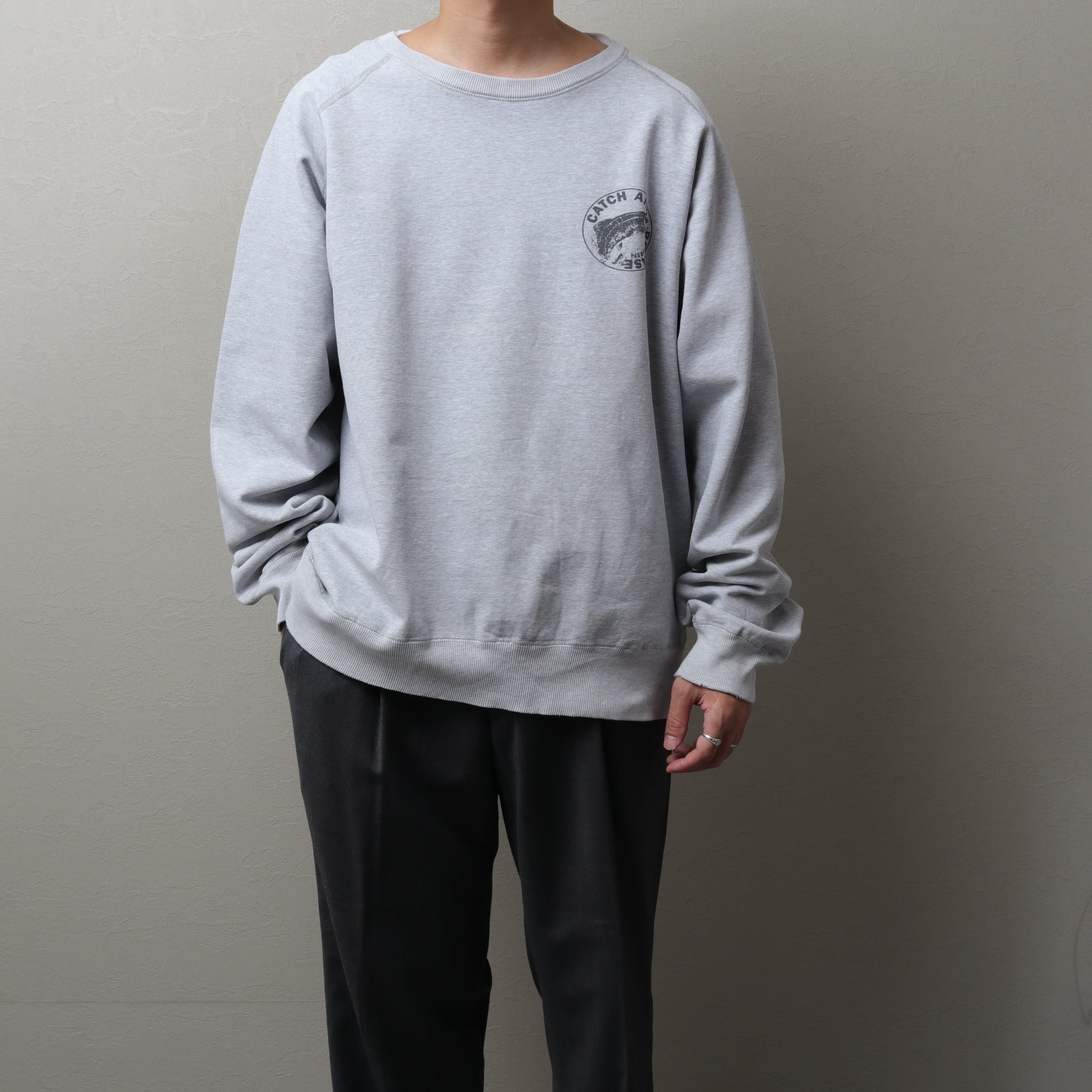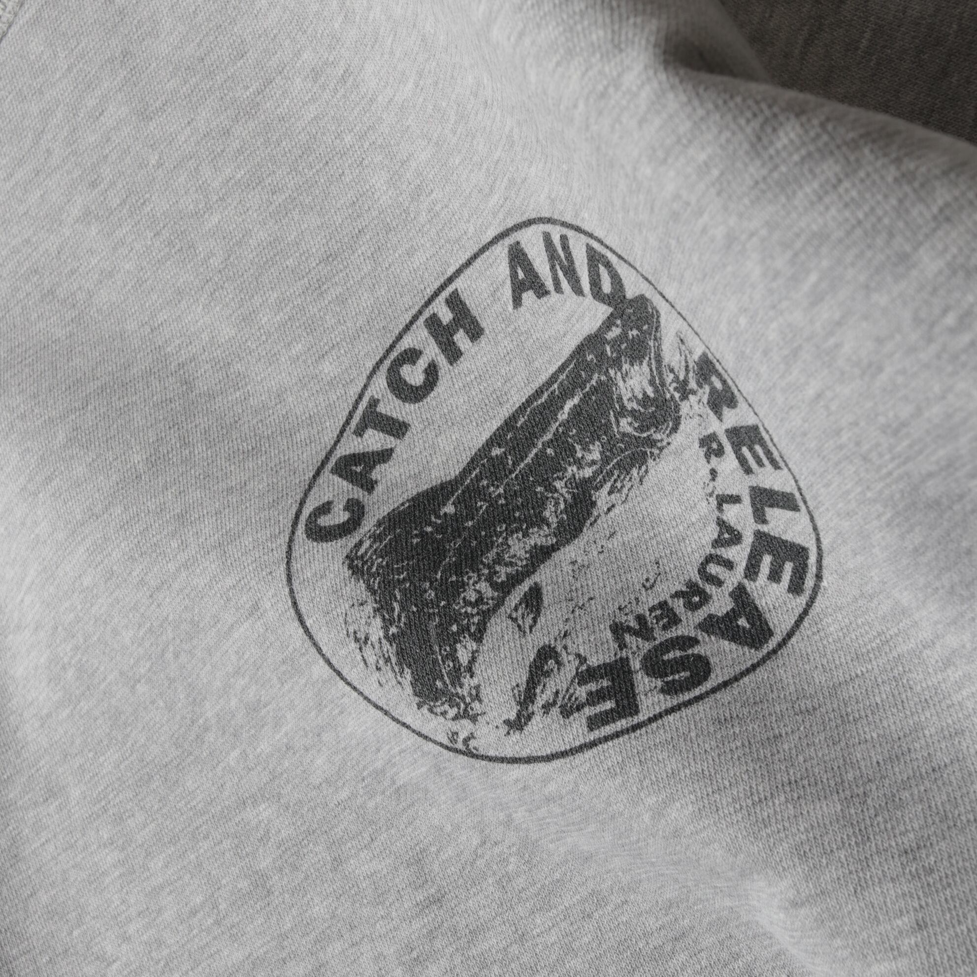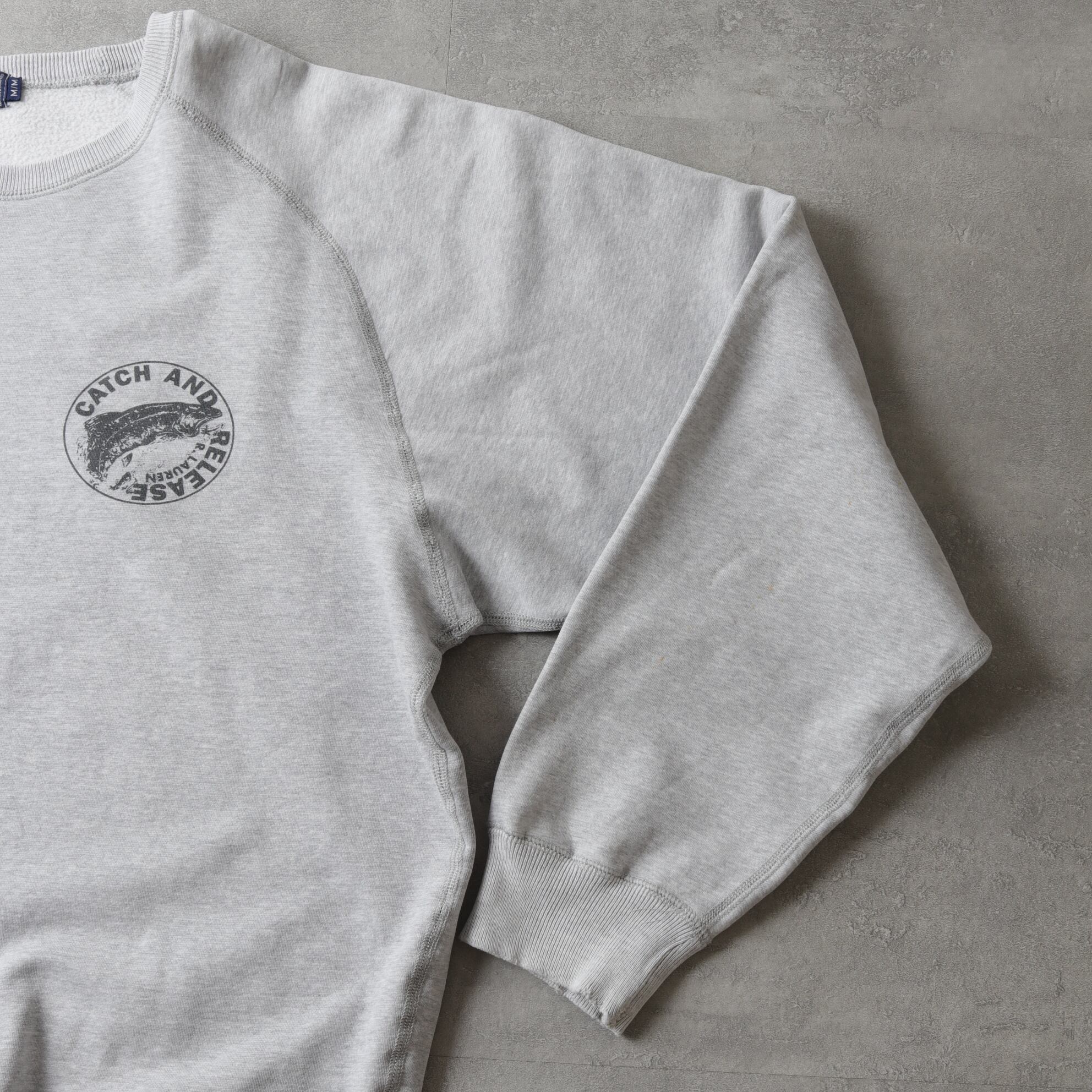 杢グレーのラグランスリーブボディにラルフでは珍しいフィッシングデザイン。
