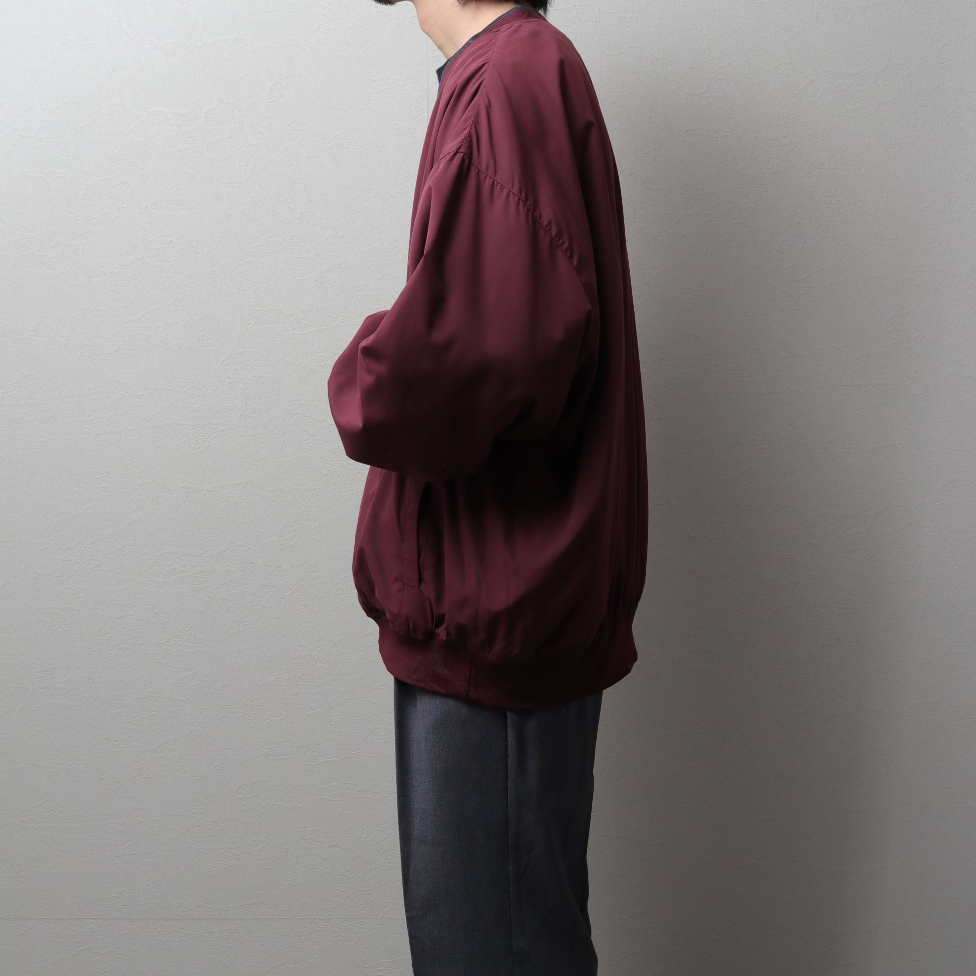 身幅や肩回りにゆとりがあり、袖と裾がリブになっているのが特徴。