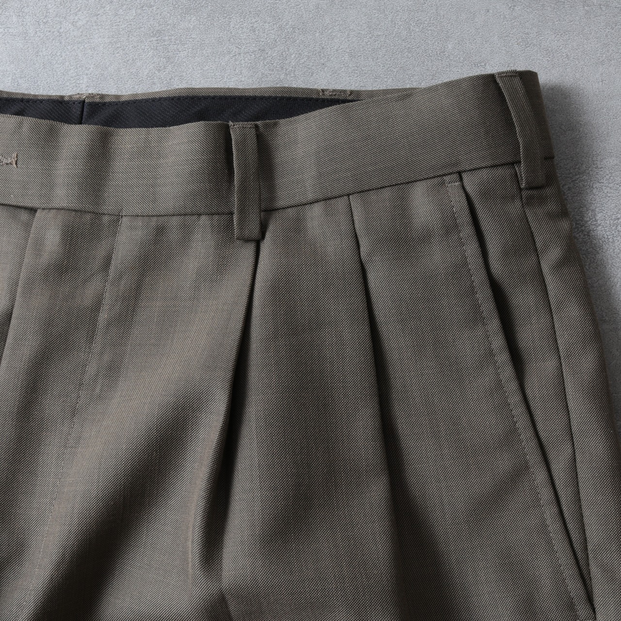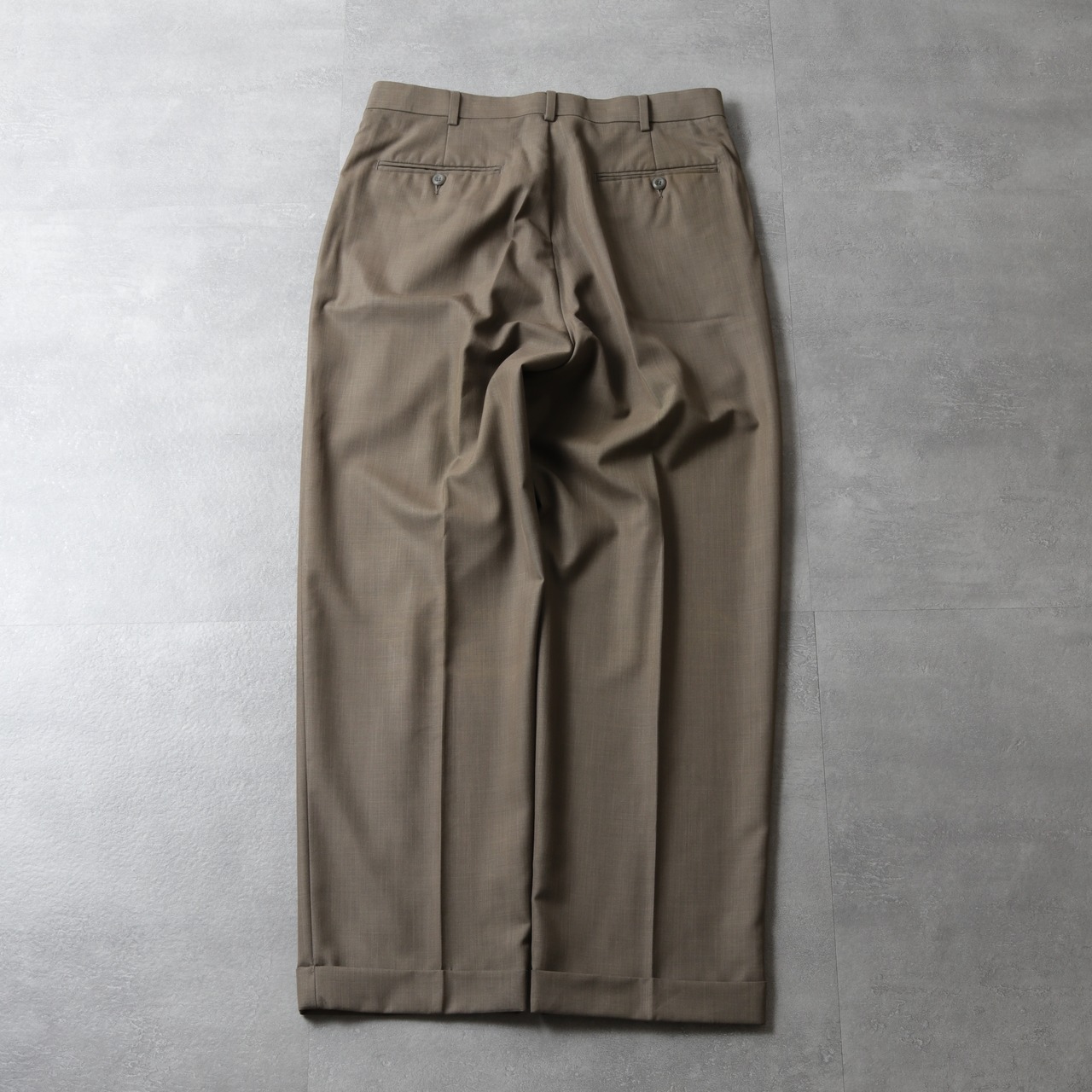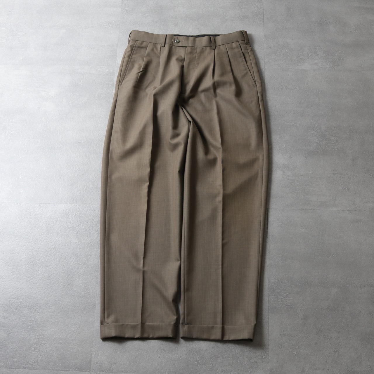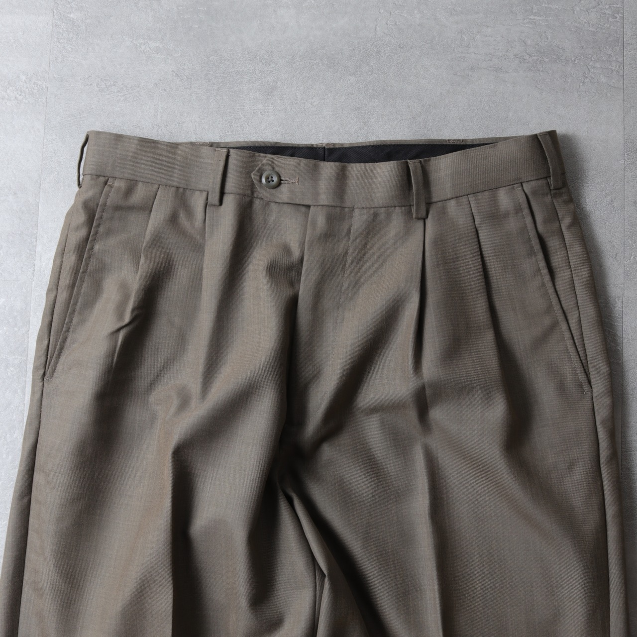 こちらは通年穿けるレーヨン混ポリ素材の2タックパンツで同社を代表とするアイテムです。