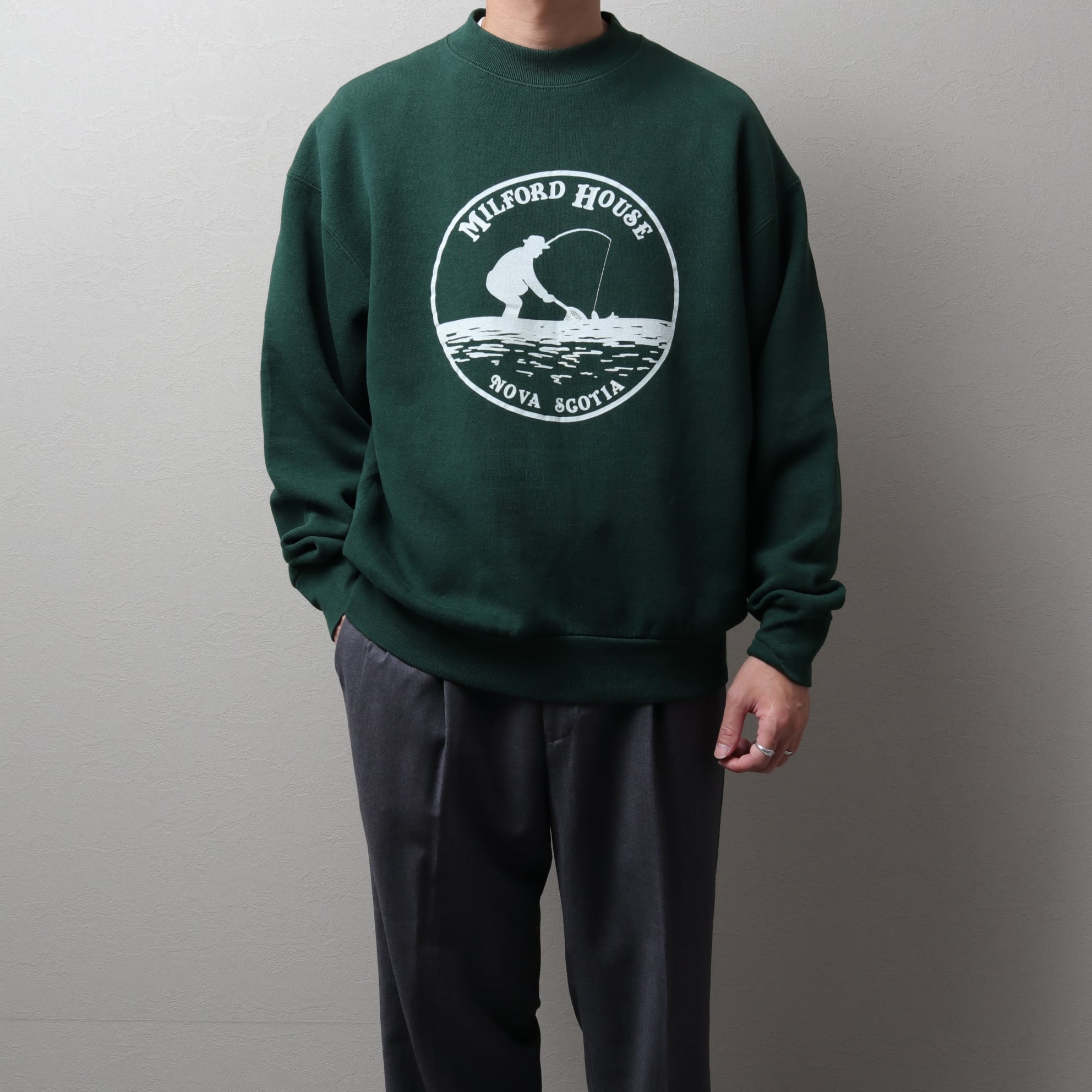 グリーンにホワイトのオールド感漂う単色プリント。