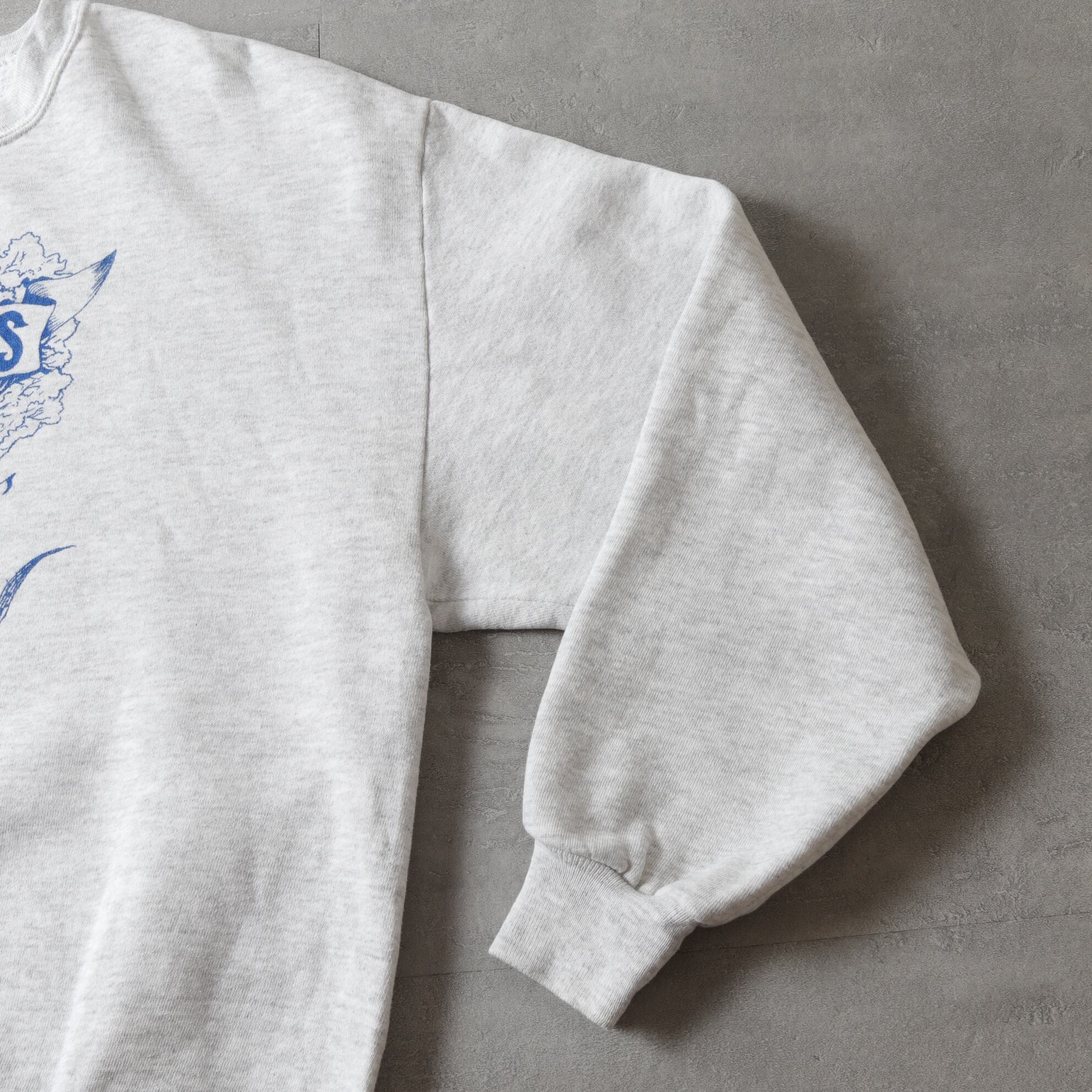 アッシュグレーにブルーのオールド感漂う単色プリント。