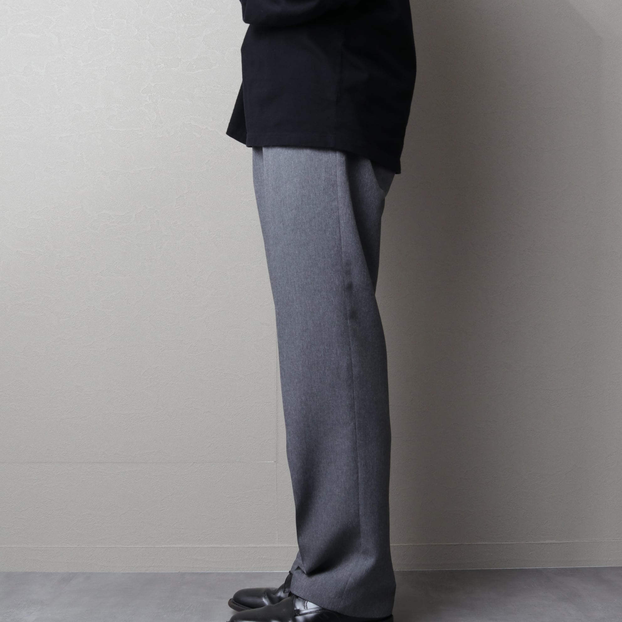 こちらは程よい太さのあるクラシックな微テーパードで定番のスラックスの形。