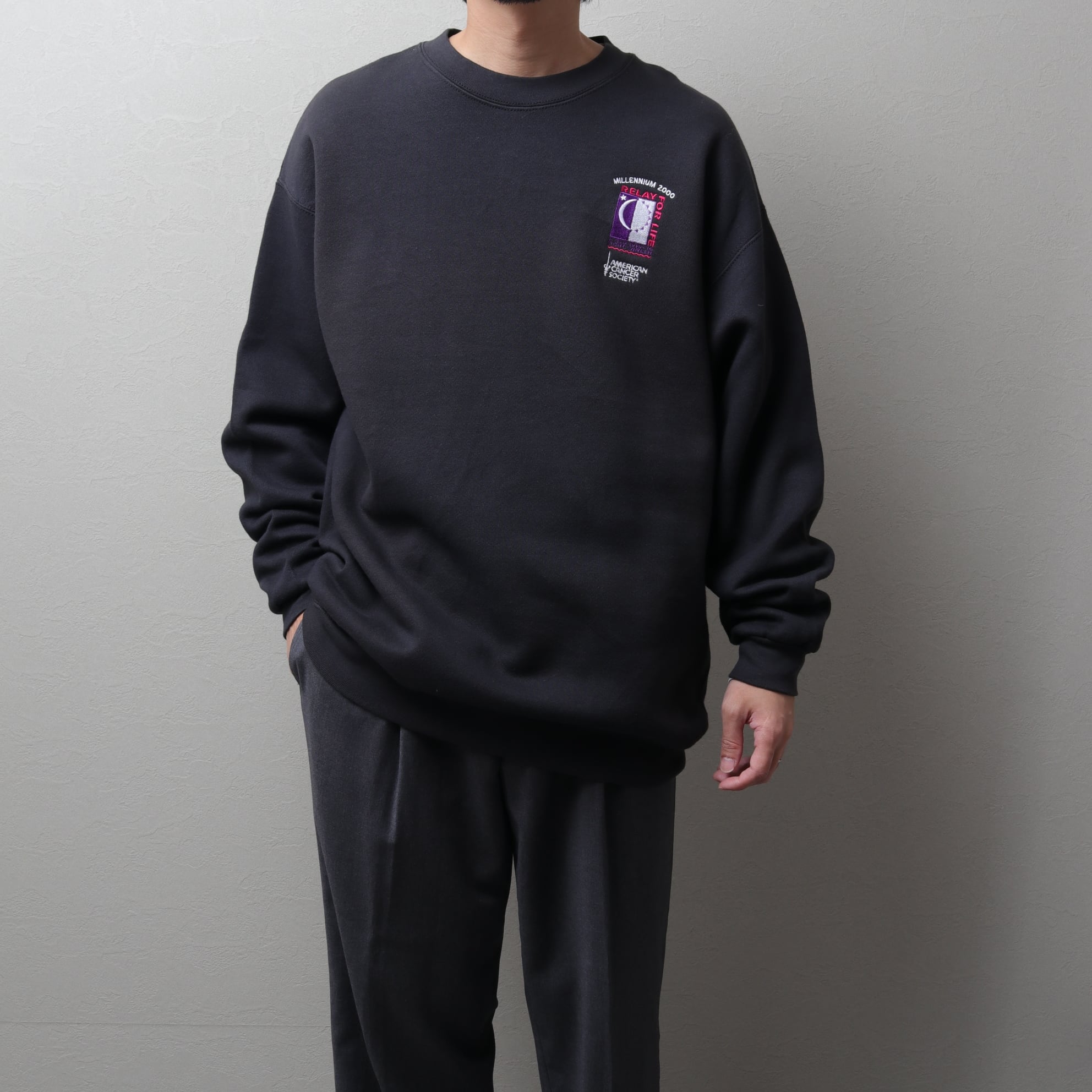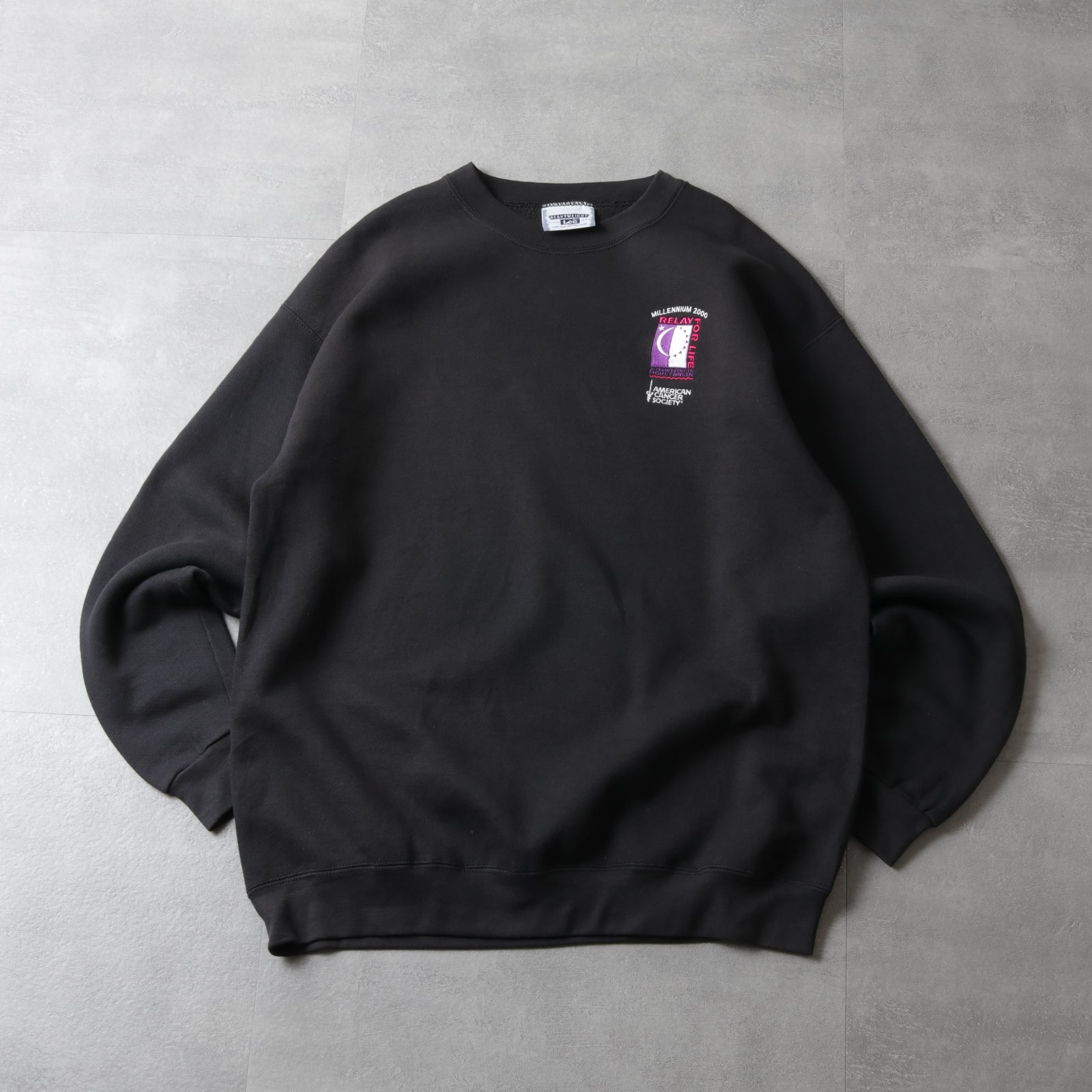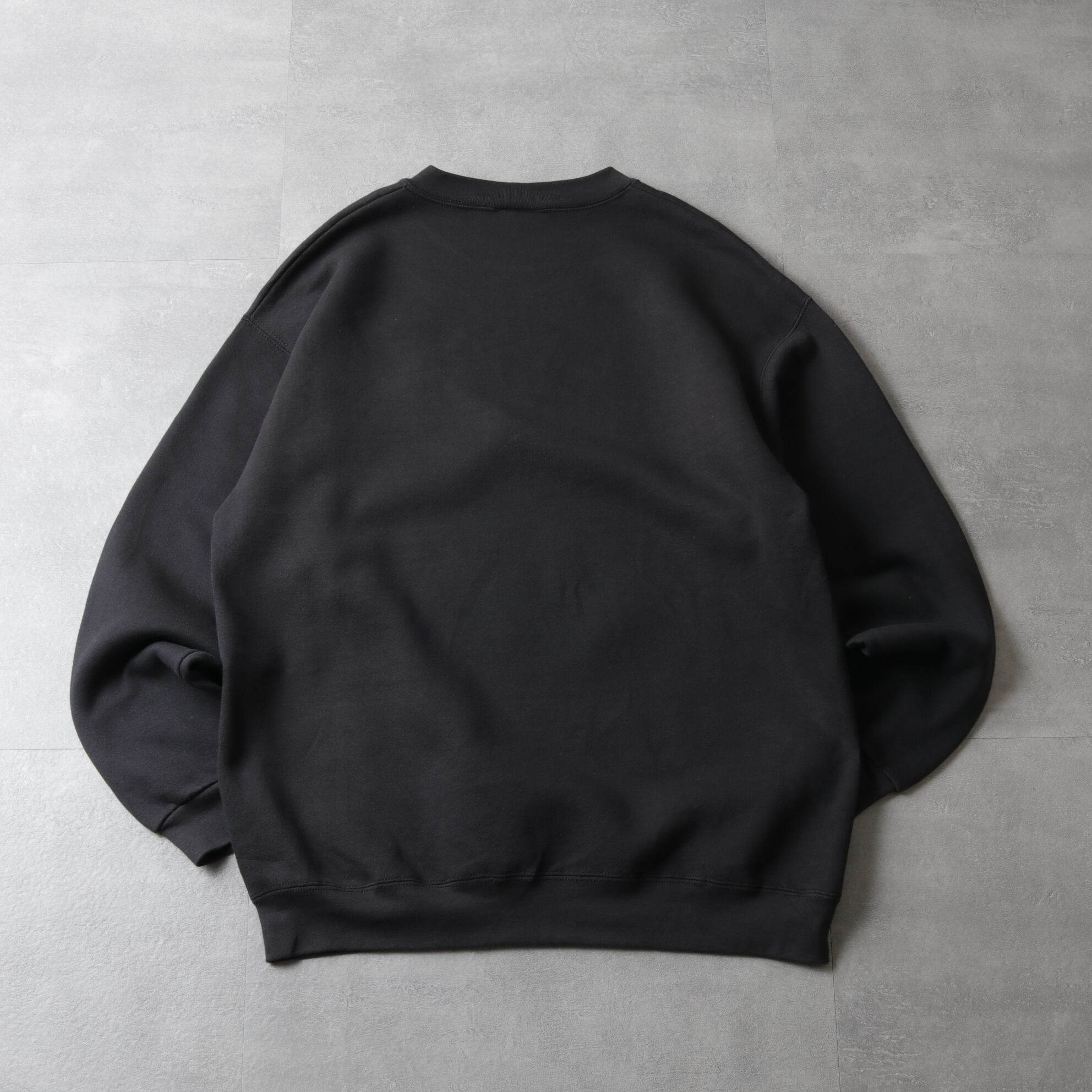 ブラックボディに刺繍プリントの入ったスウェットシャツ。