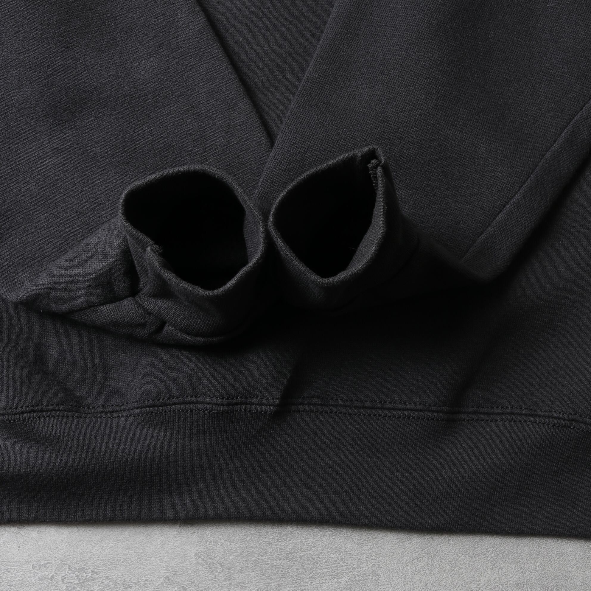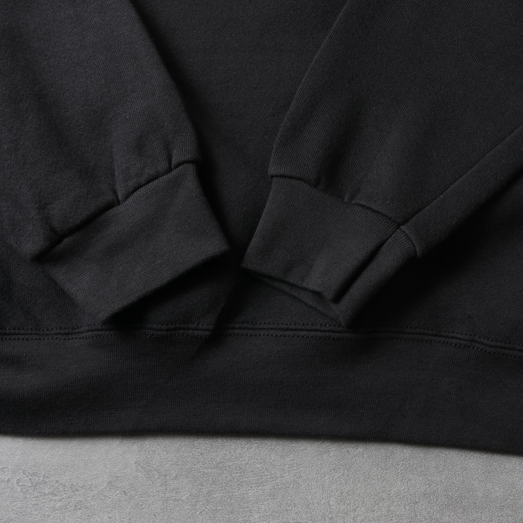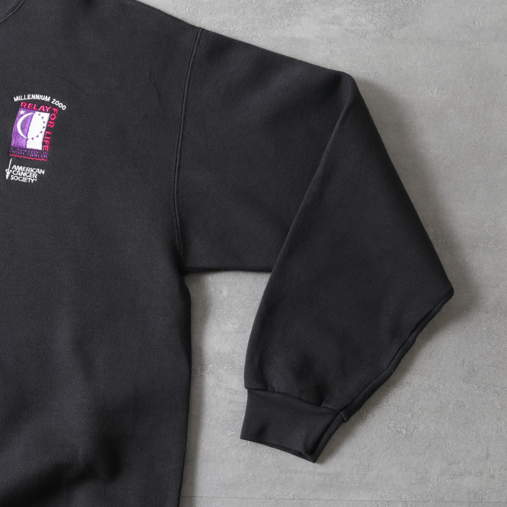ブラックボディに刺繍プリントの入ったスウェットシャツ。