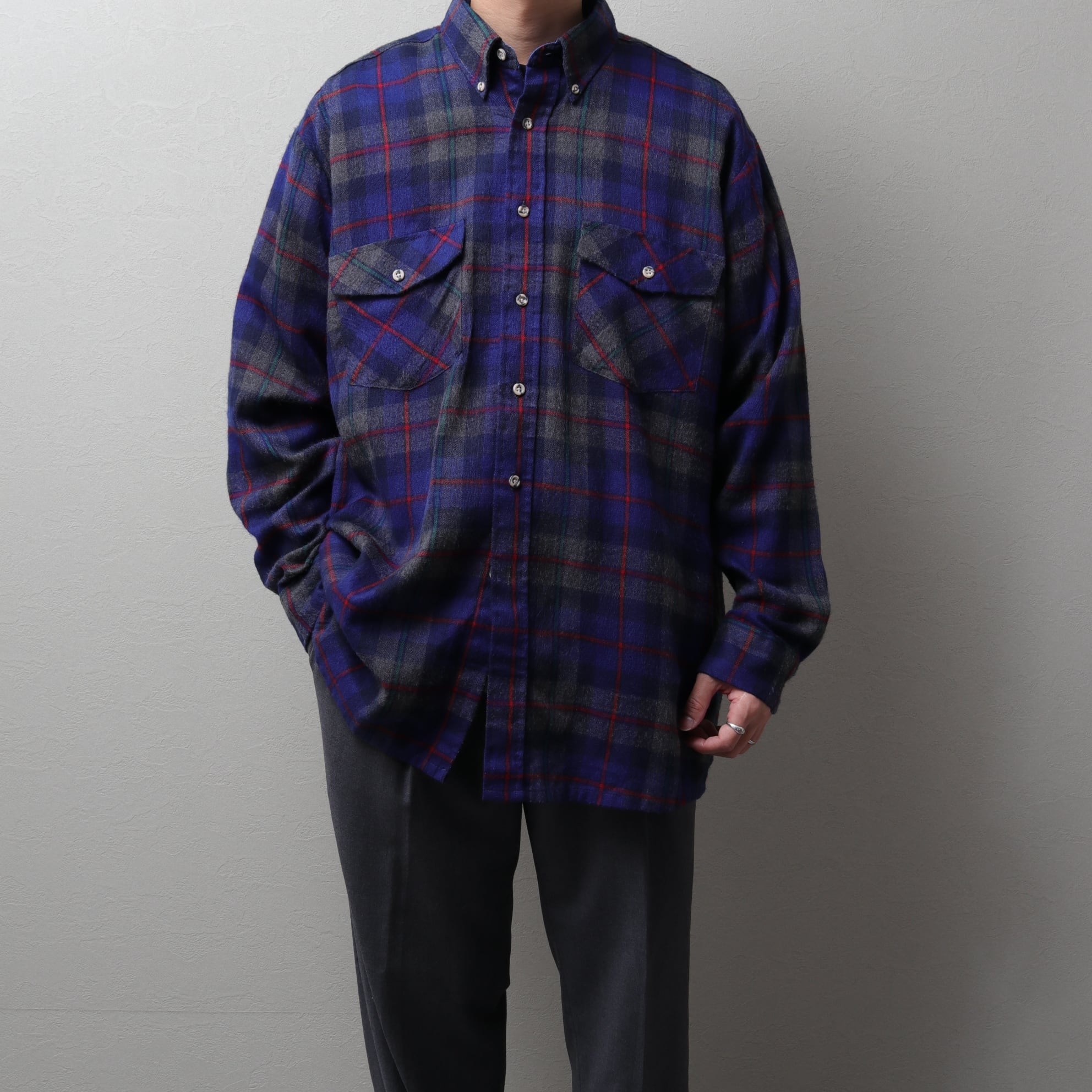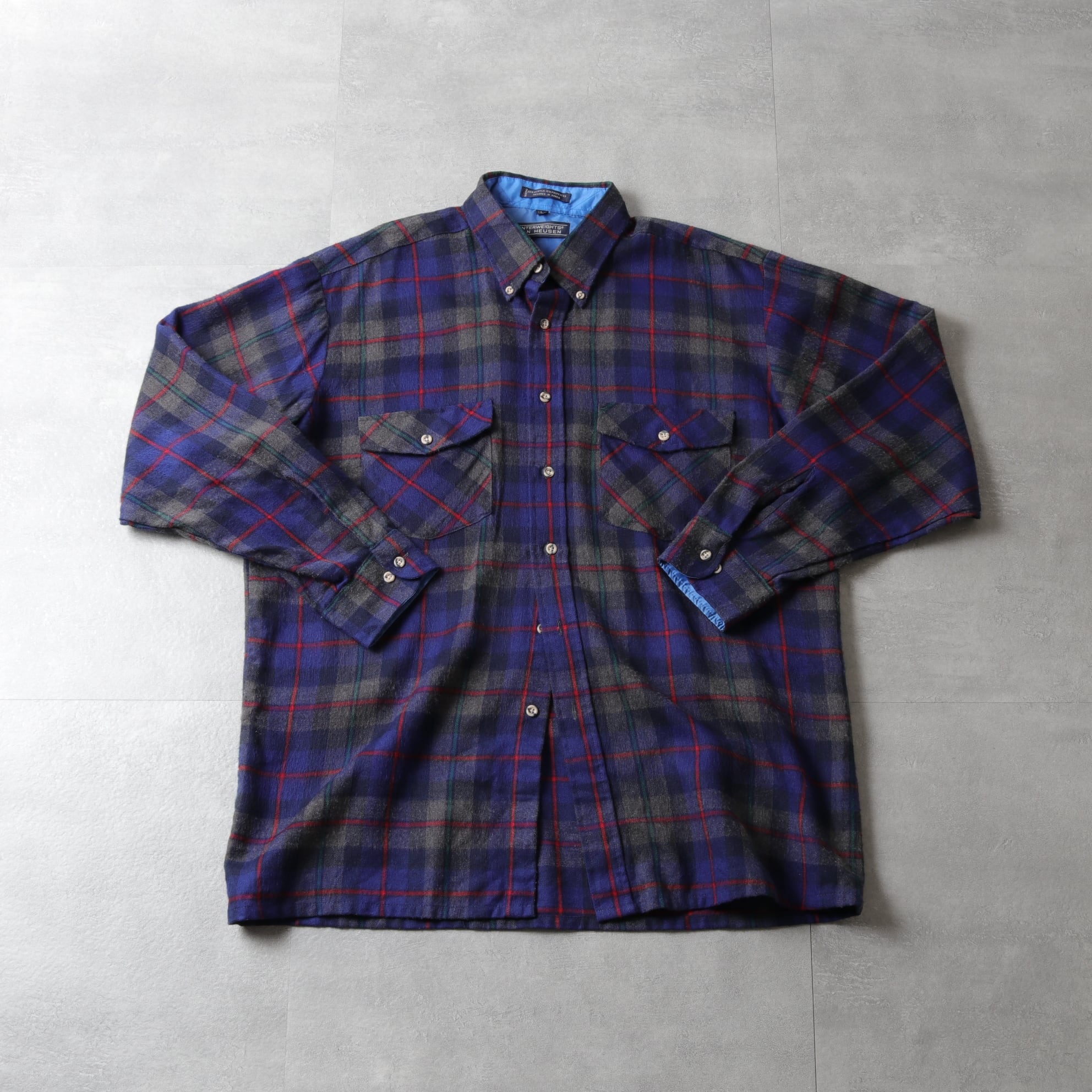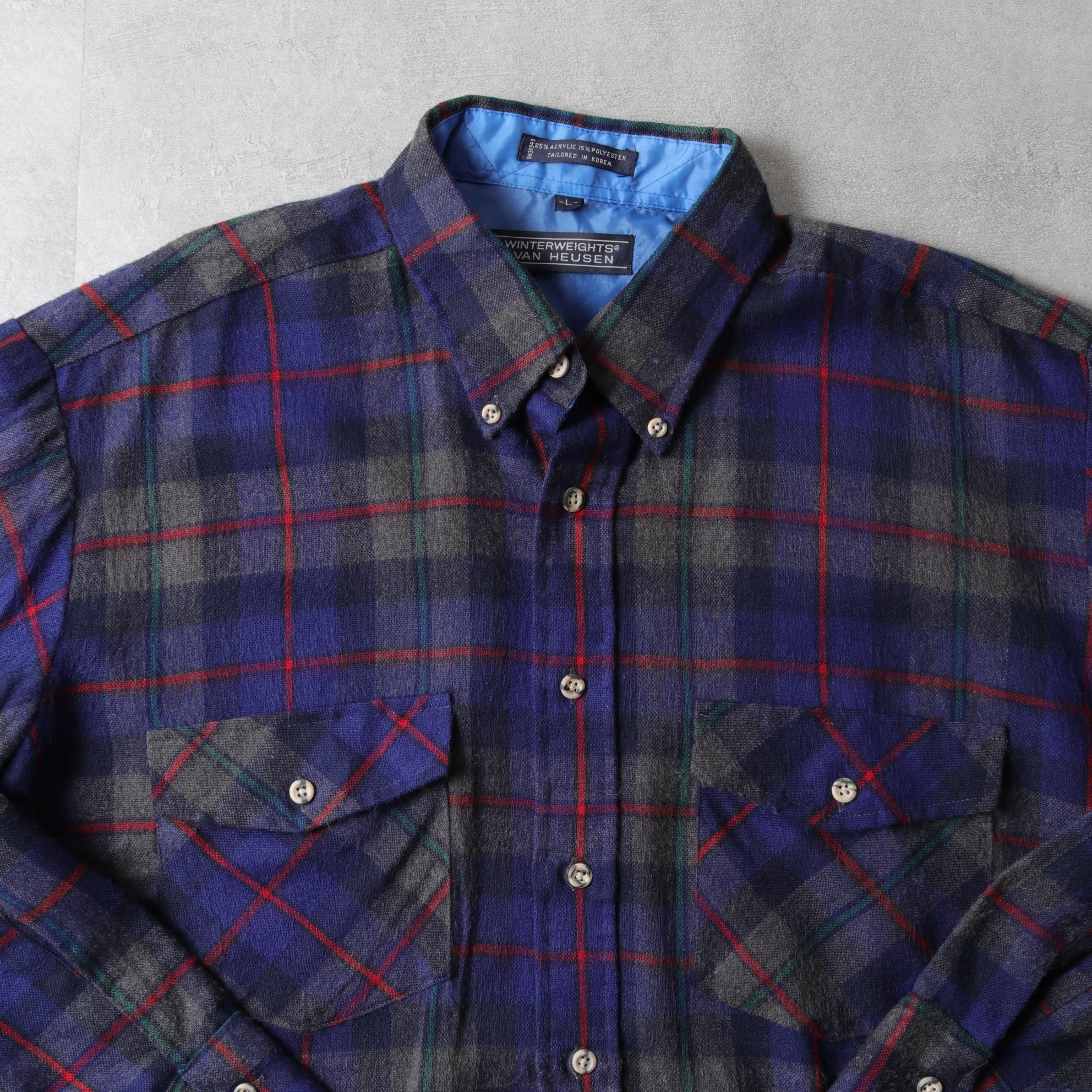 1980's~ VAN HEUSEN Wool Like Plaid B.D Shirt "acrylic/poly" 131225
