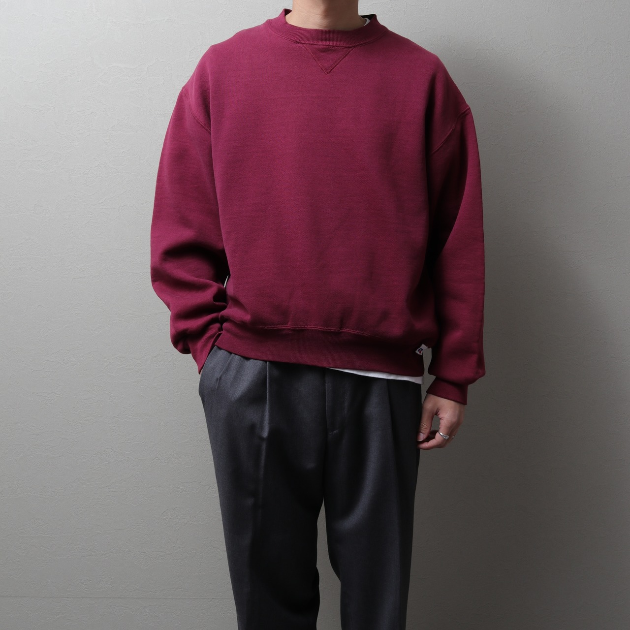 ラッセルアスレチックの無地スウェット、90sのアメリカ製のワインレッド。
