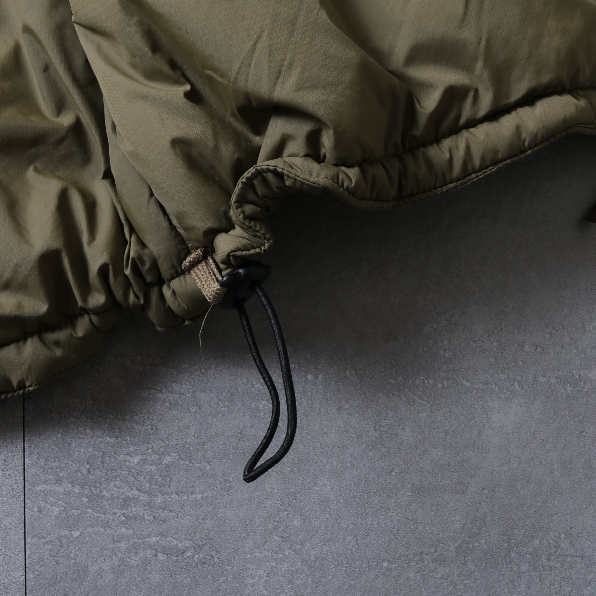フードや裾のサイドにはドローコードで調節可能