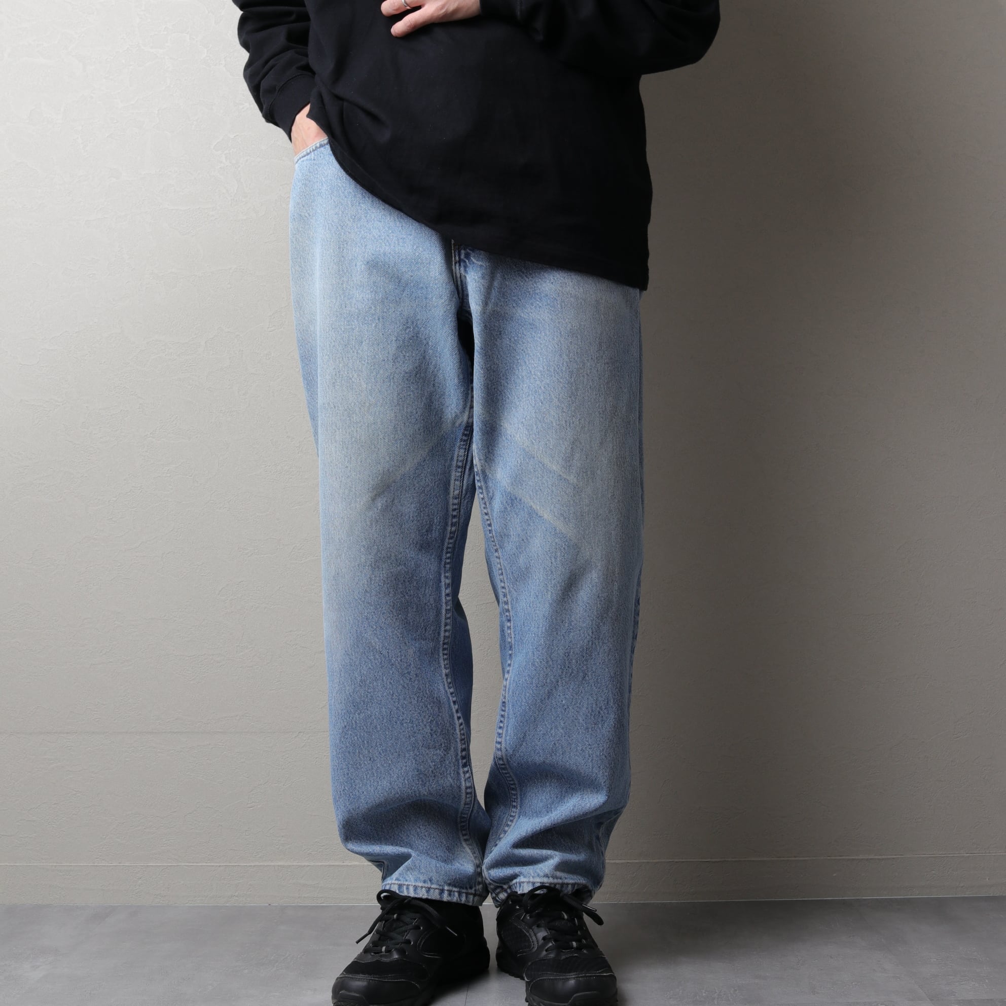 Levi’sでいうと550品番に近く、テーパードがきつくないシルエットです。