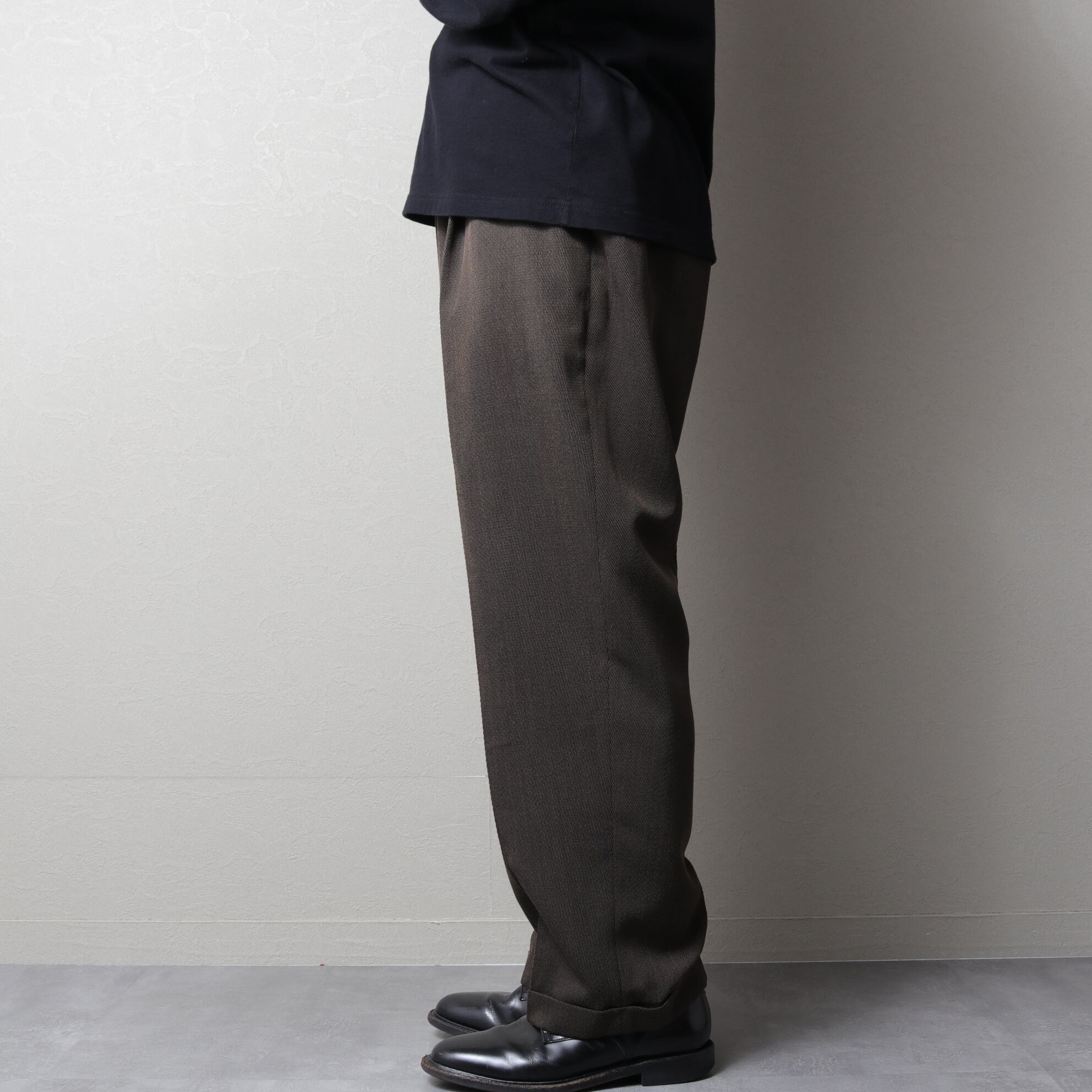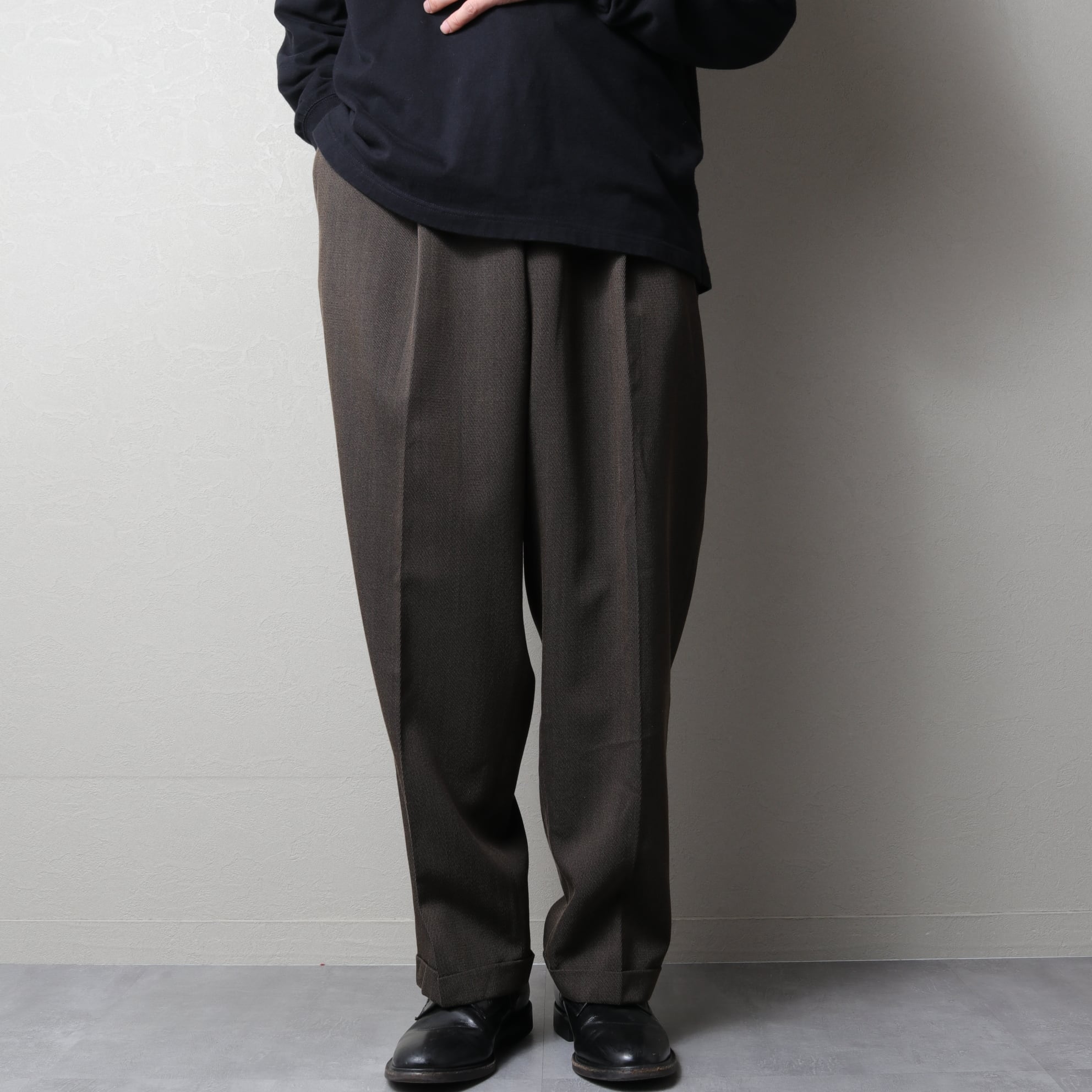 近年ドメスティックが展開しているようなドレープ感のある太いスラックスで