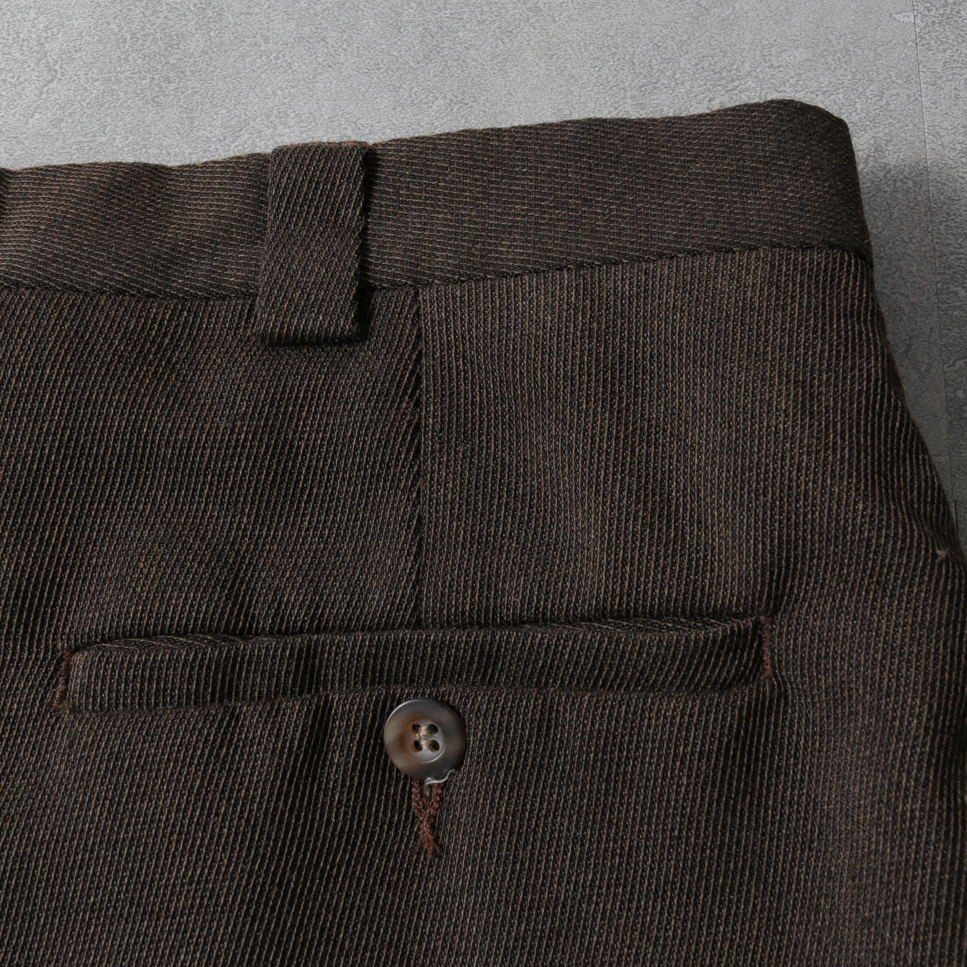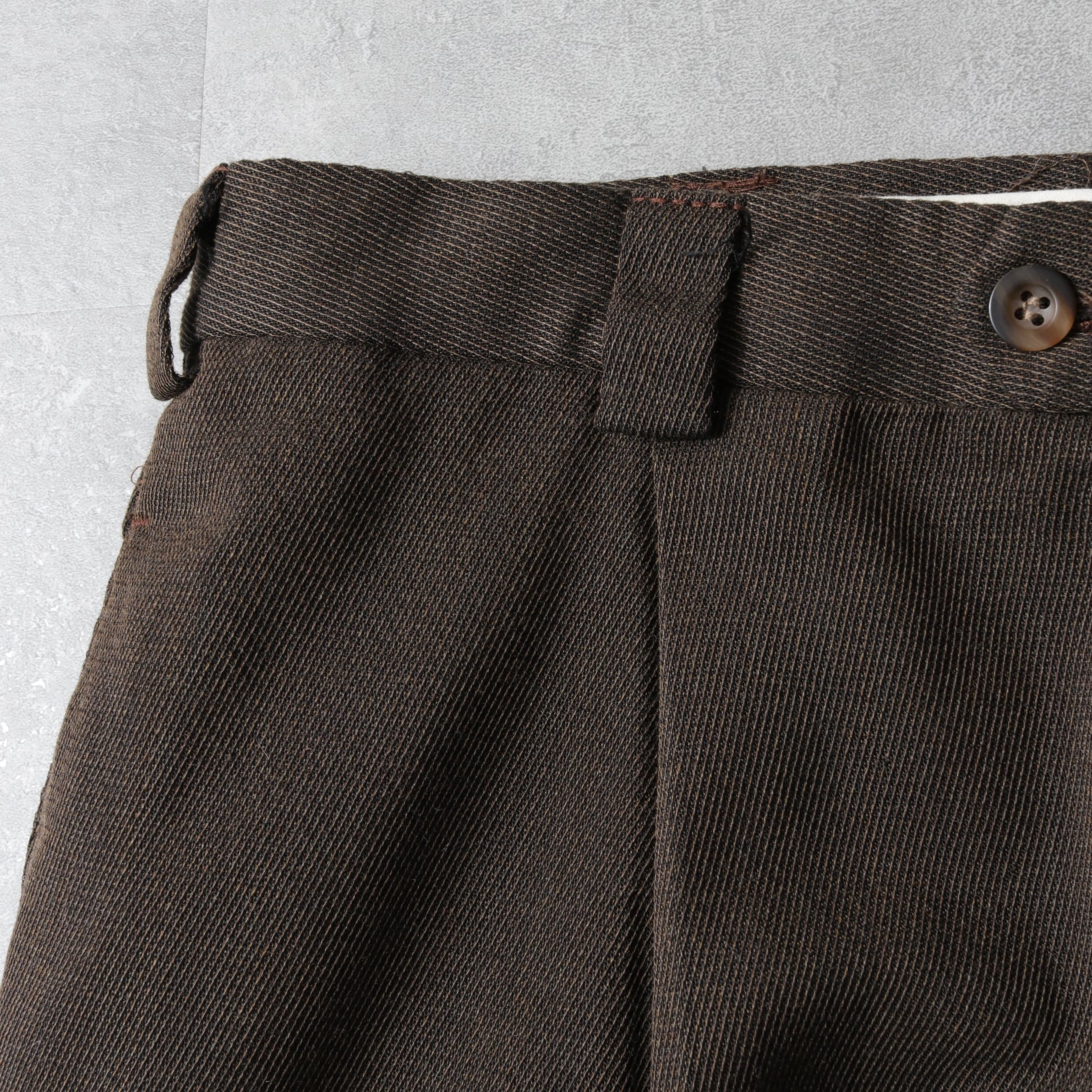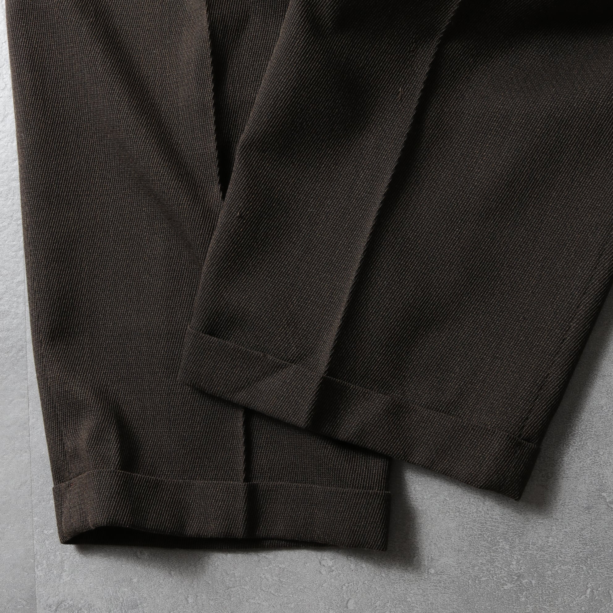 こちらは1タックで渡りが広く、テーパードがかかり裾はダブル。