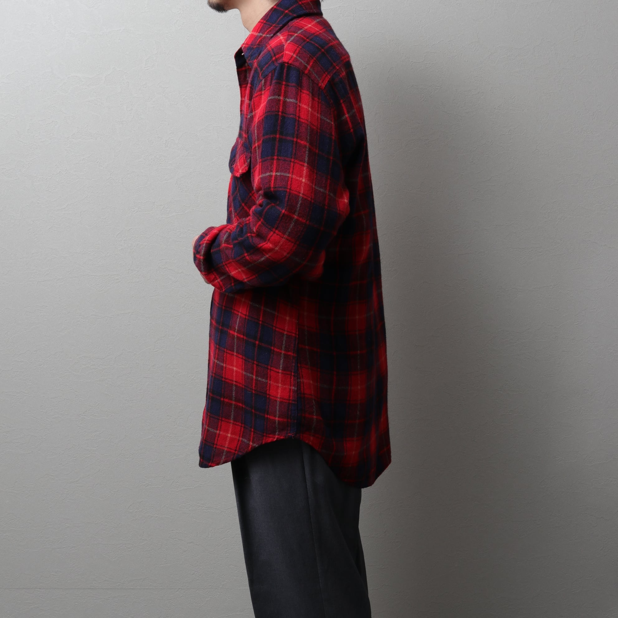 ペンドルトン程の生地感で冬季はインナーにも使いやすい一着です。