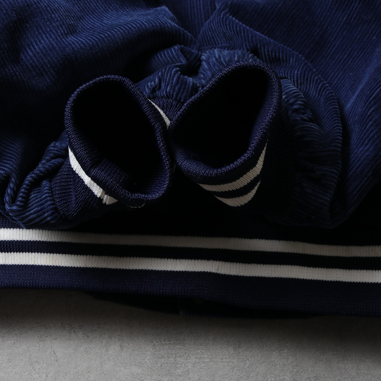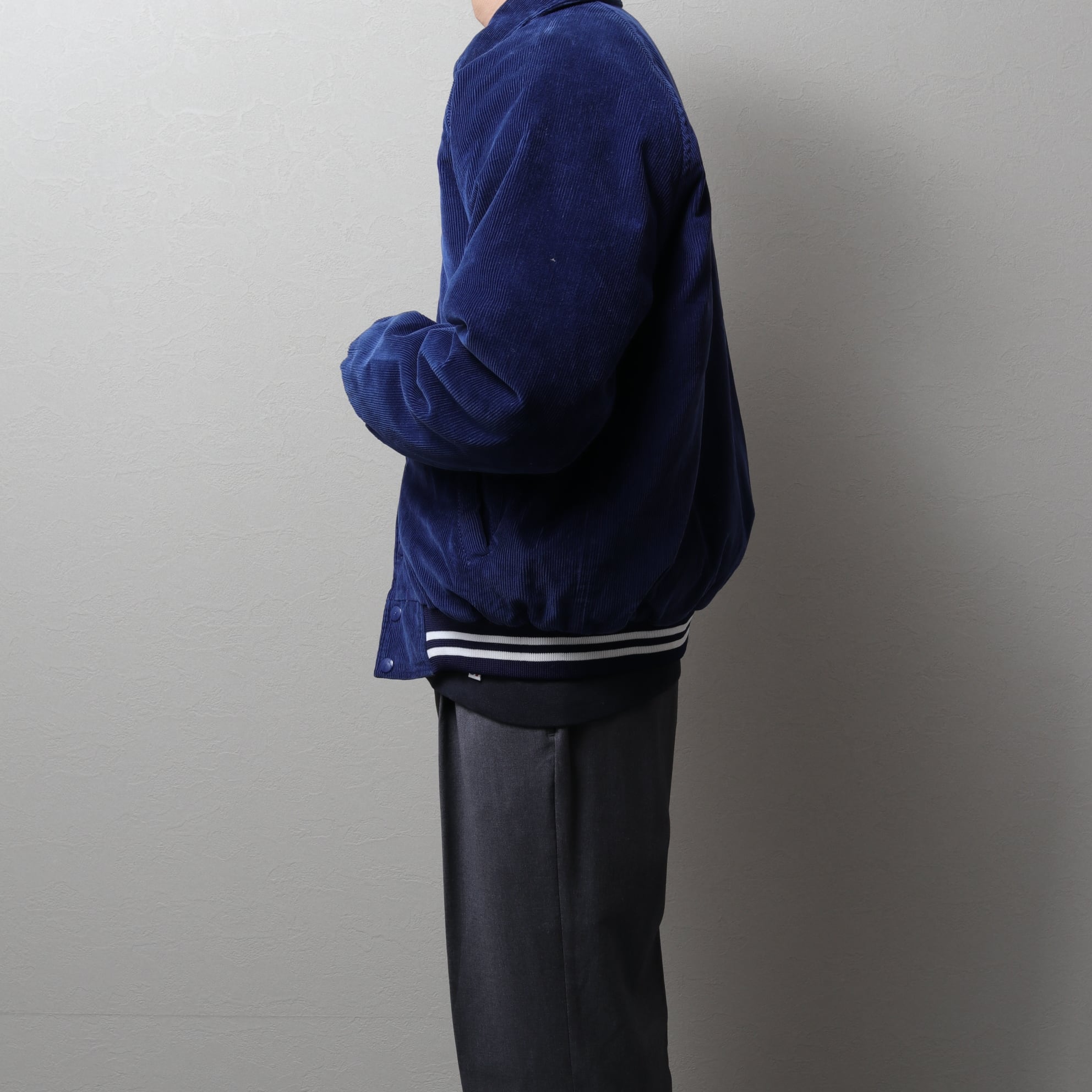 スポーツ感が弱いデザインで、光沢のあるコーデュロイはカジュアルながらエレガンスさも感じます。