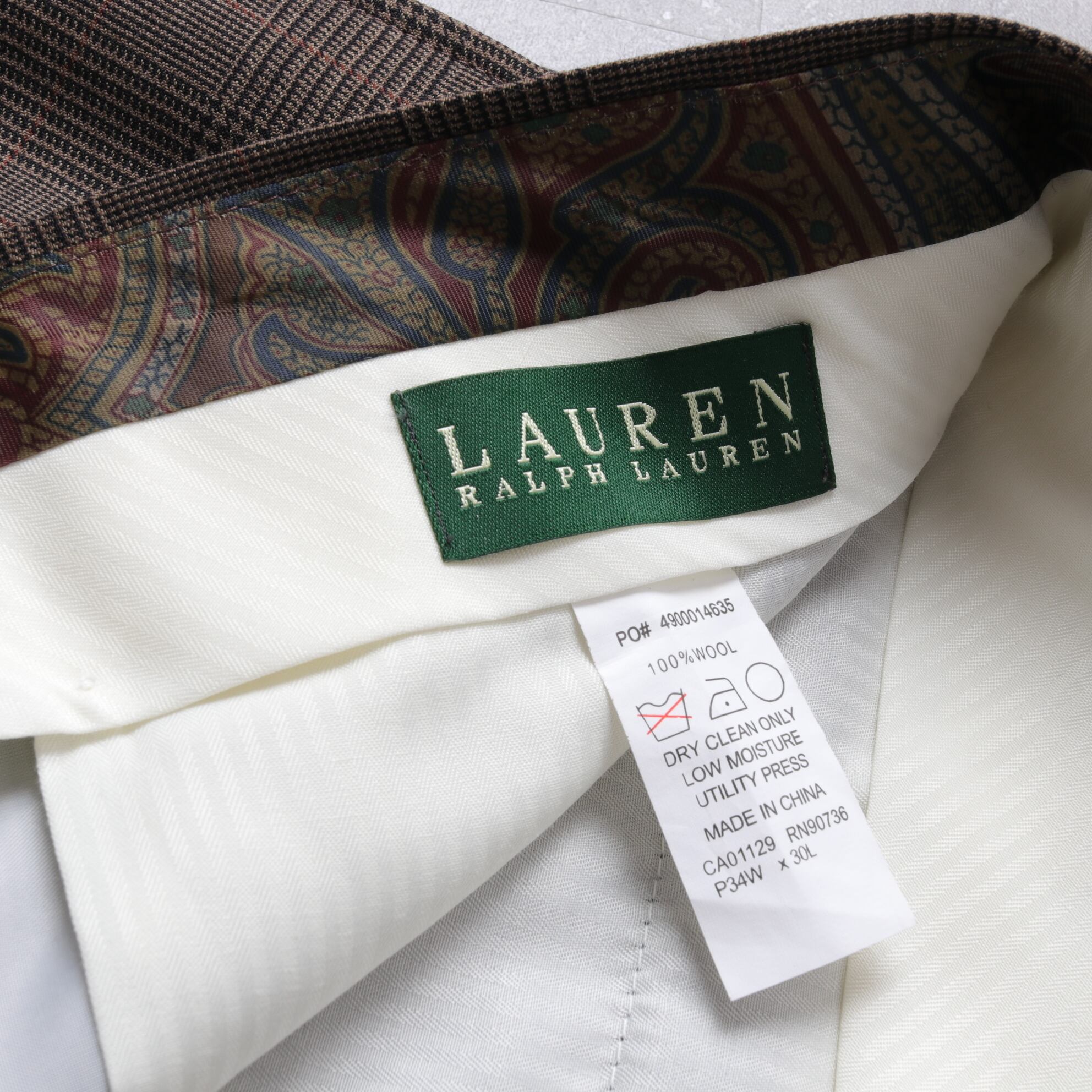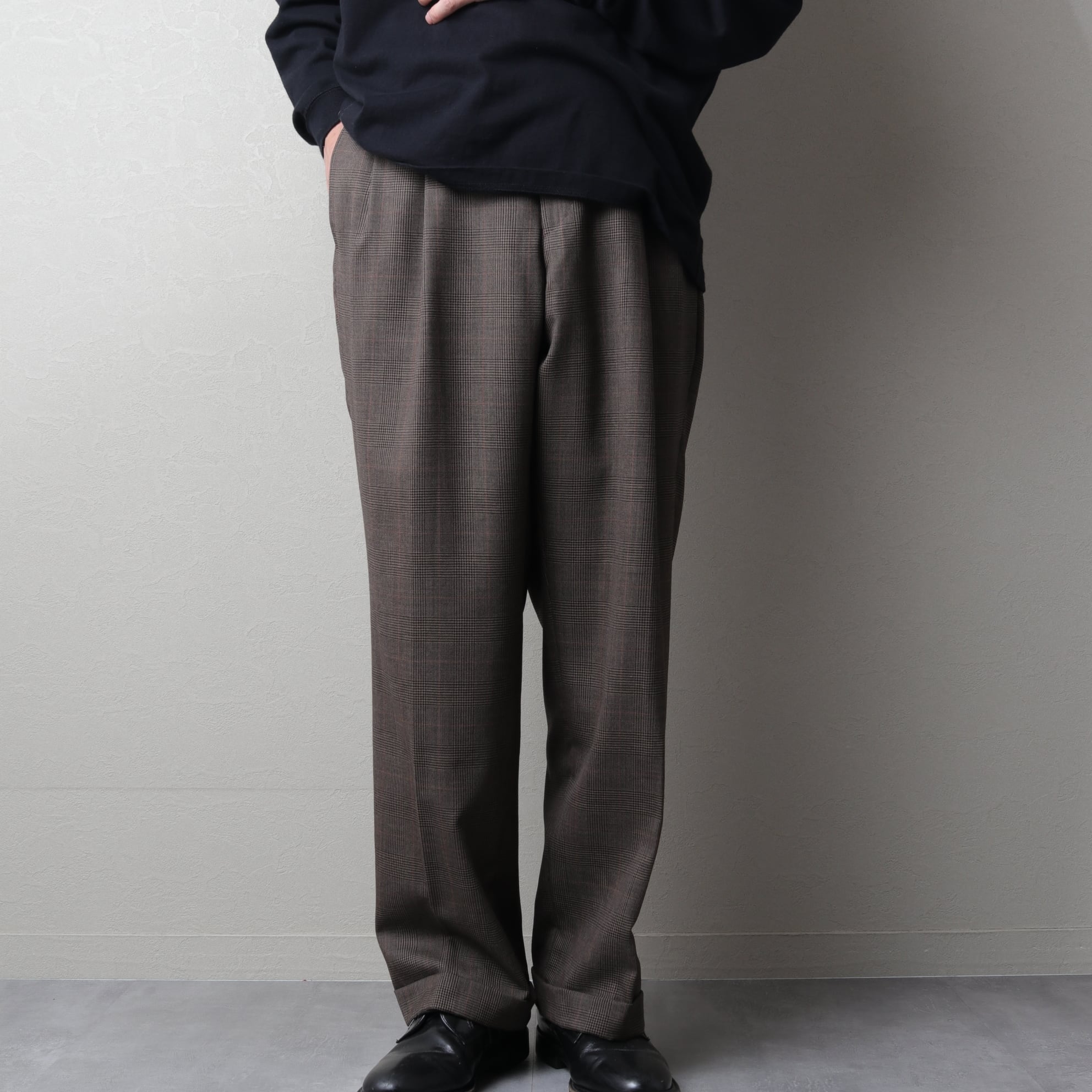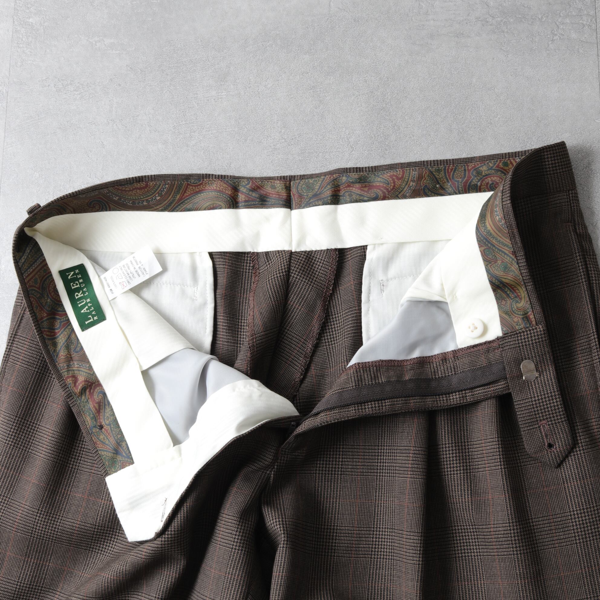 [34×30] "LAUREN" RALPH LAUREN Pleated Wool Trousers "glen check" 213226