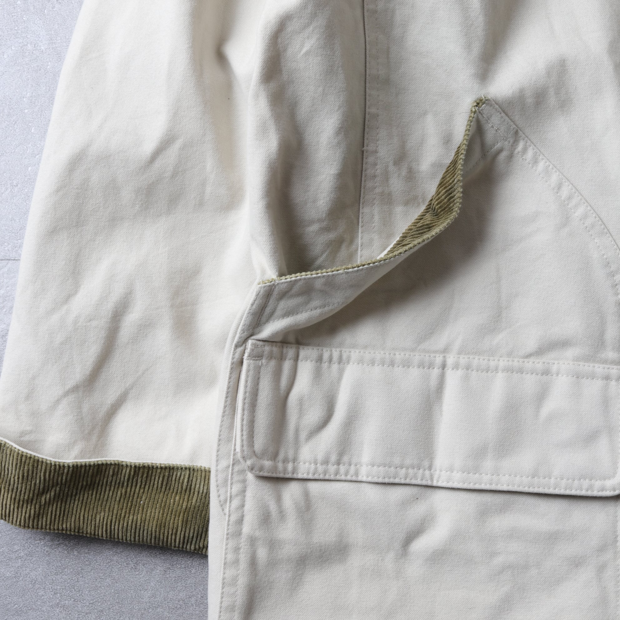 ライトベージュにブラウンコーデュロイのコントラストが効いています。