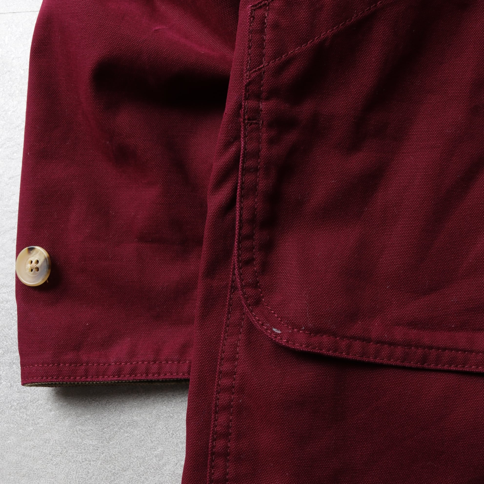 襟に日焼け、フロントポケット付近、バック裾付近に軽微な着色があります(写真参照)
