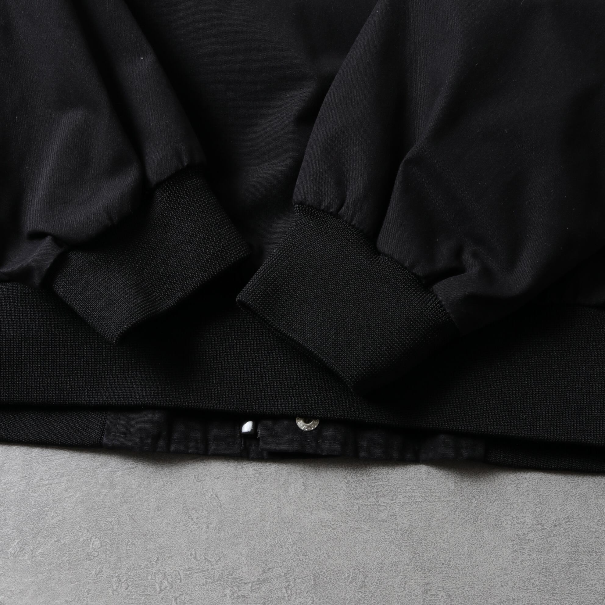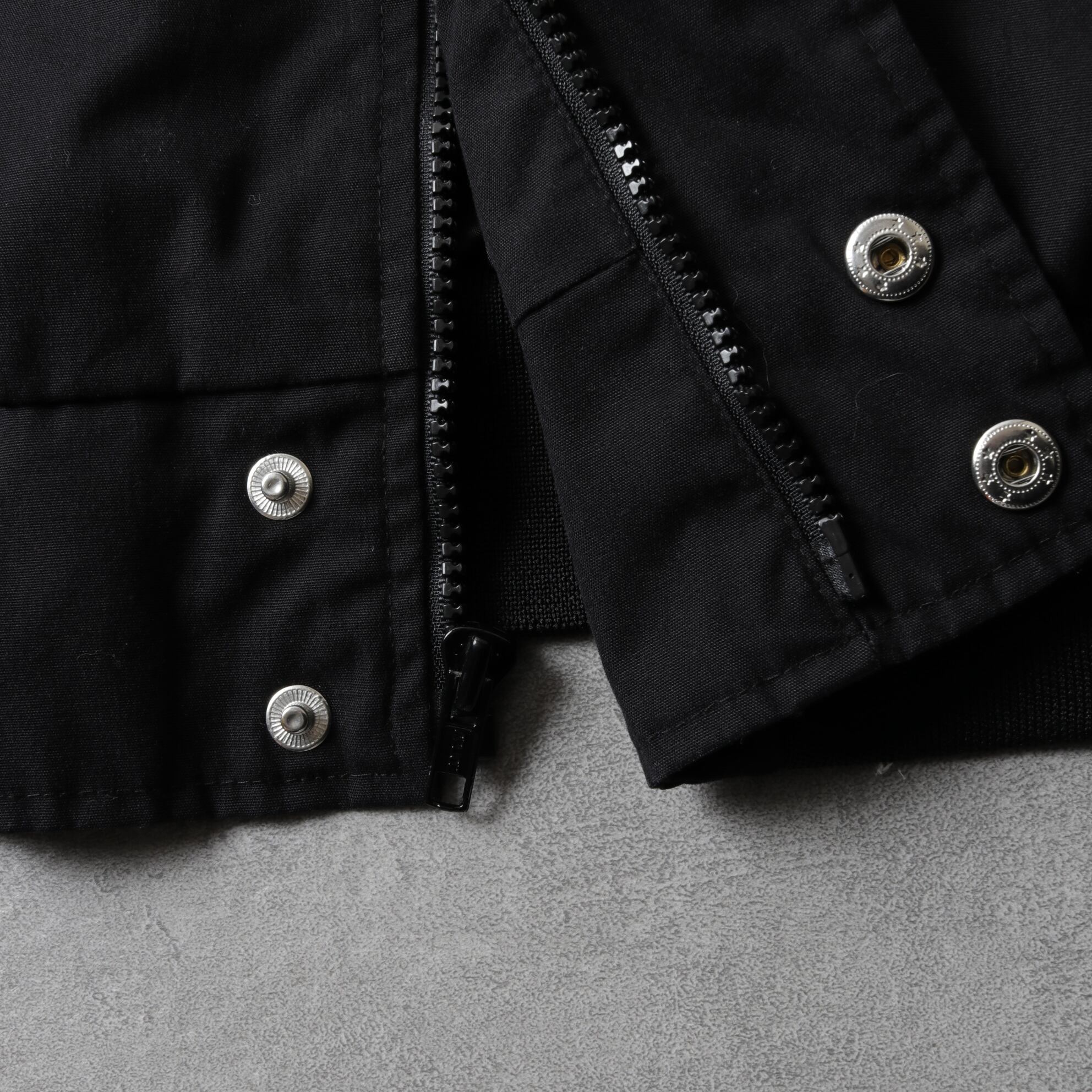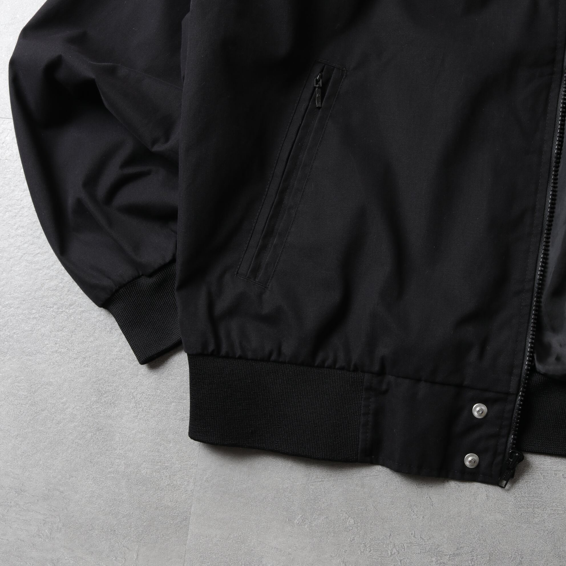 ポリコットンのハリのある生地にマッドなブラックカラー。
