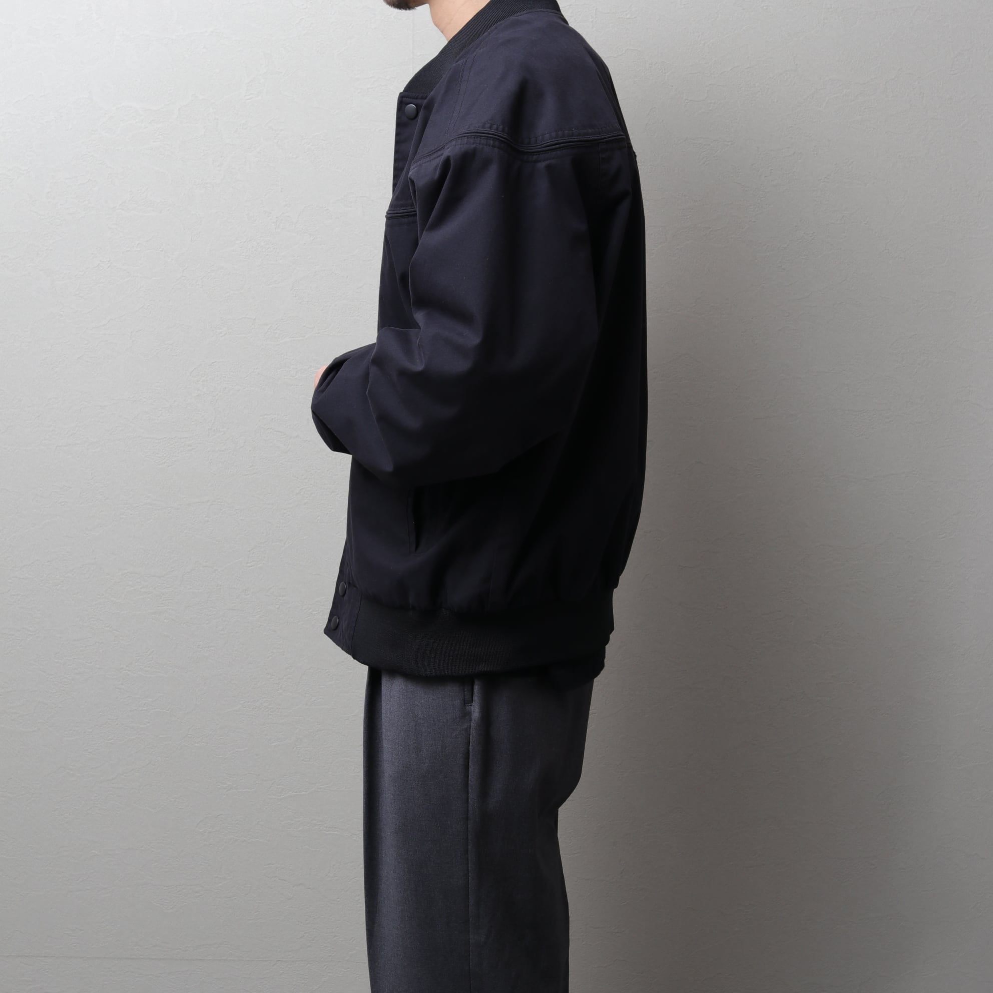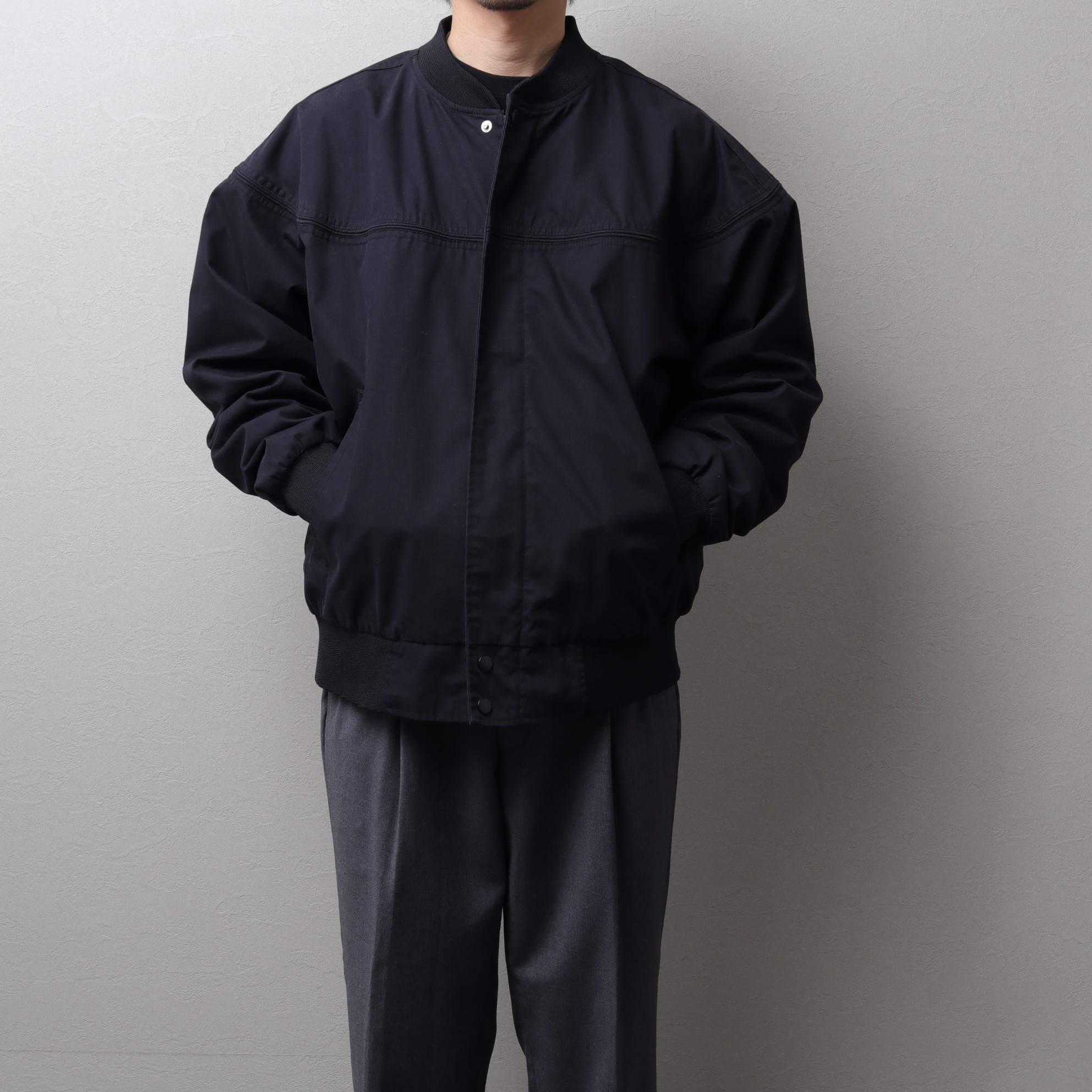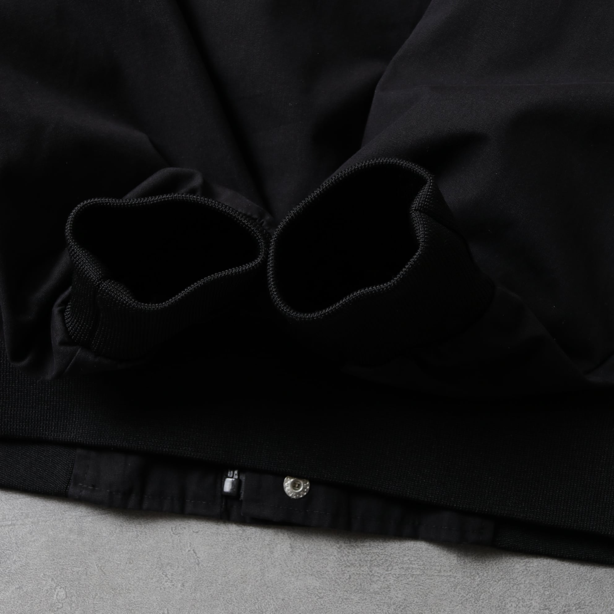 ポリコットンのハリのある生地にマッドなブラックカラー。