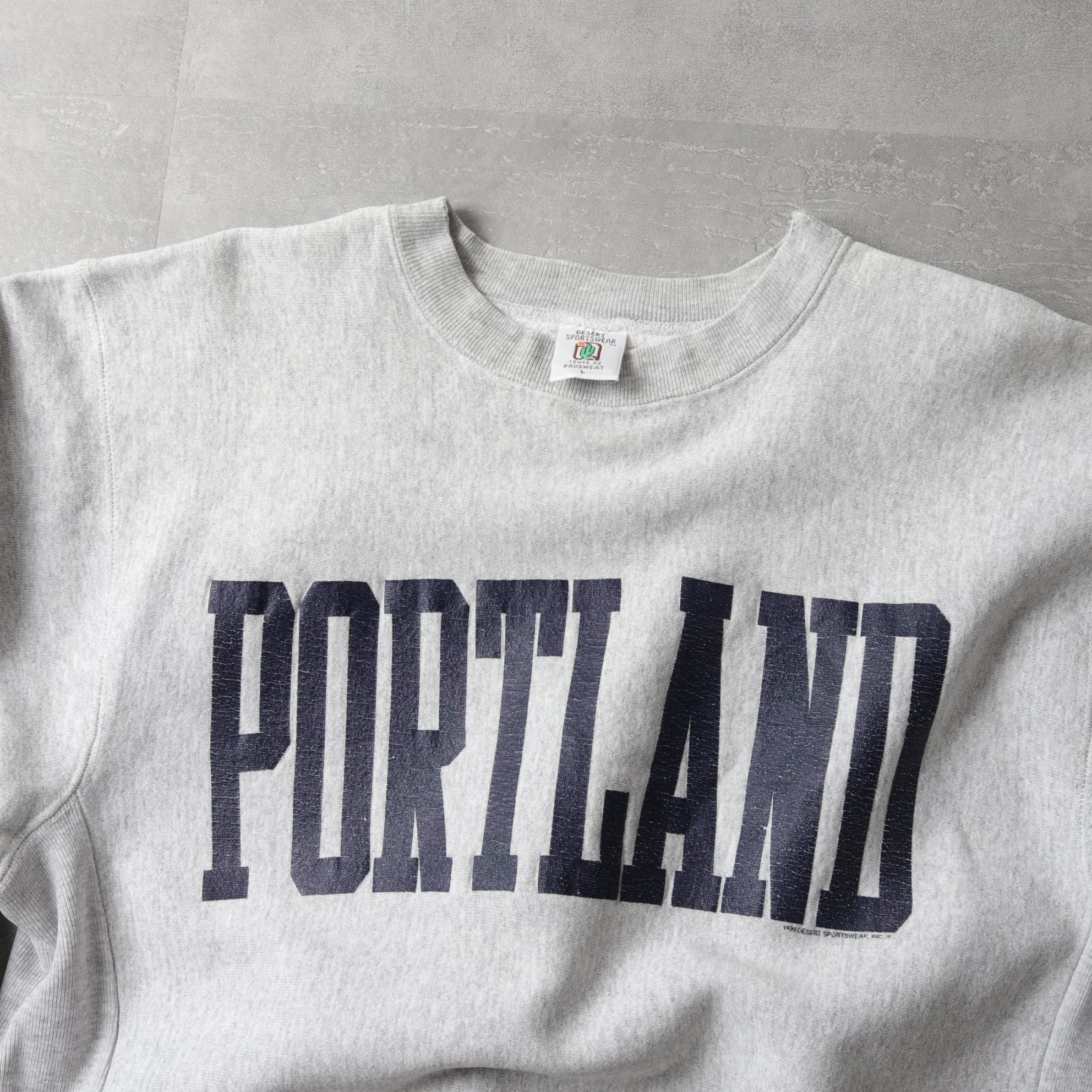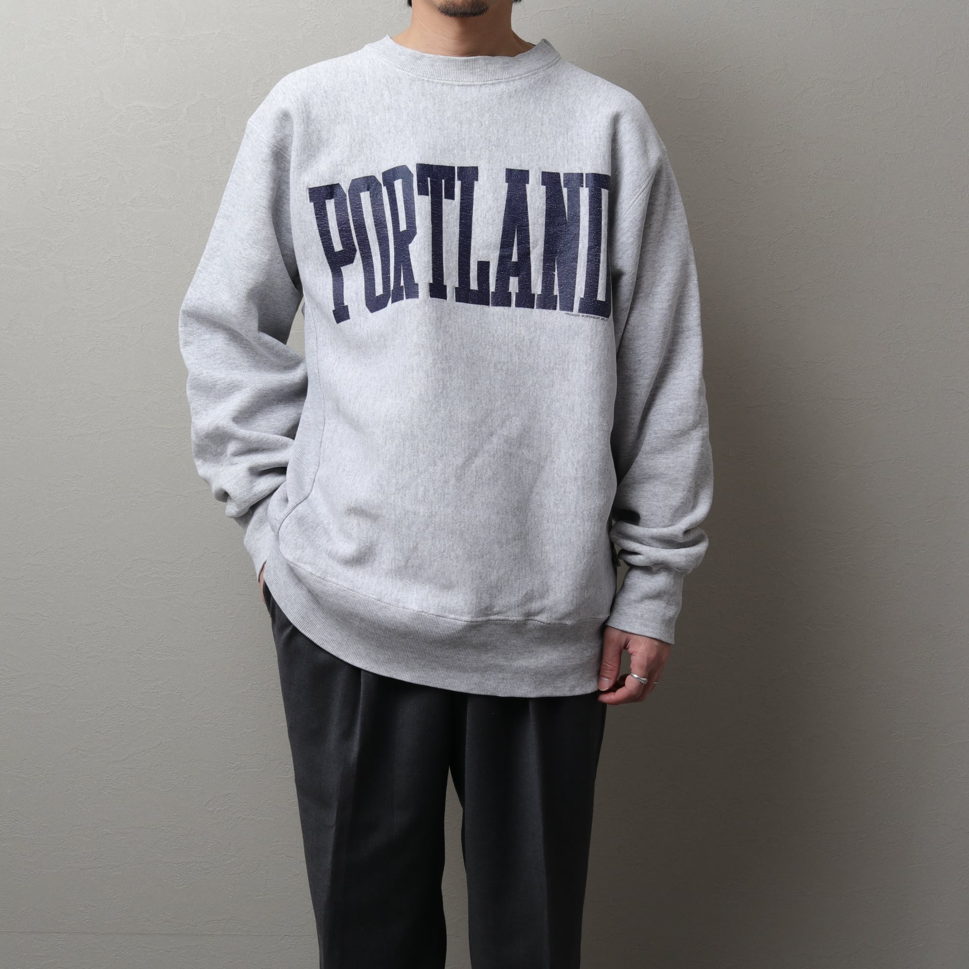 リバースウィーブタイプのボディにPORTLANDのデカプリント。