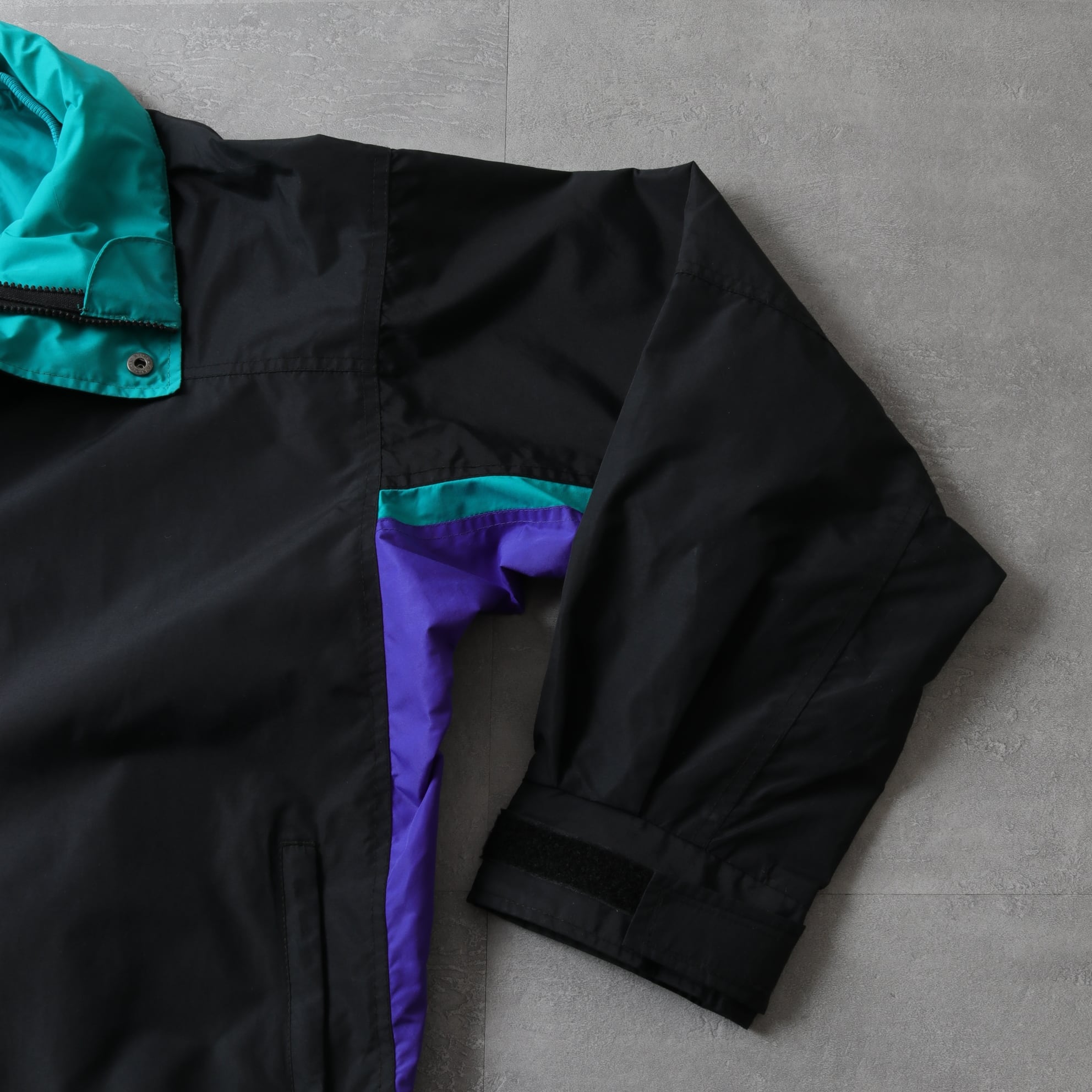 ブラックベースにパープル、ターコイズというオールドアウトドアらしい配色。