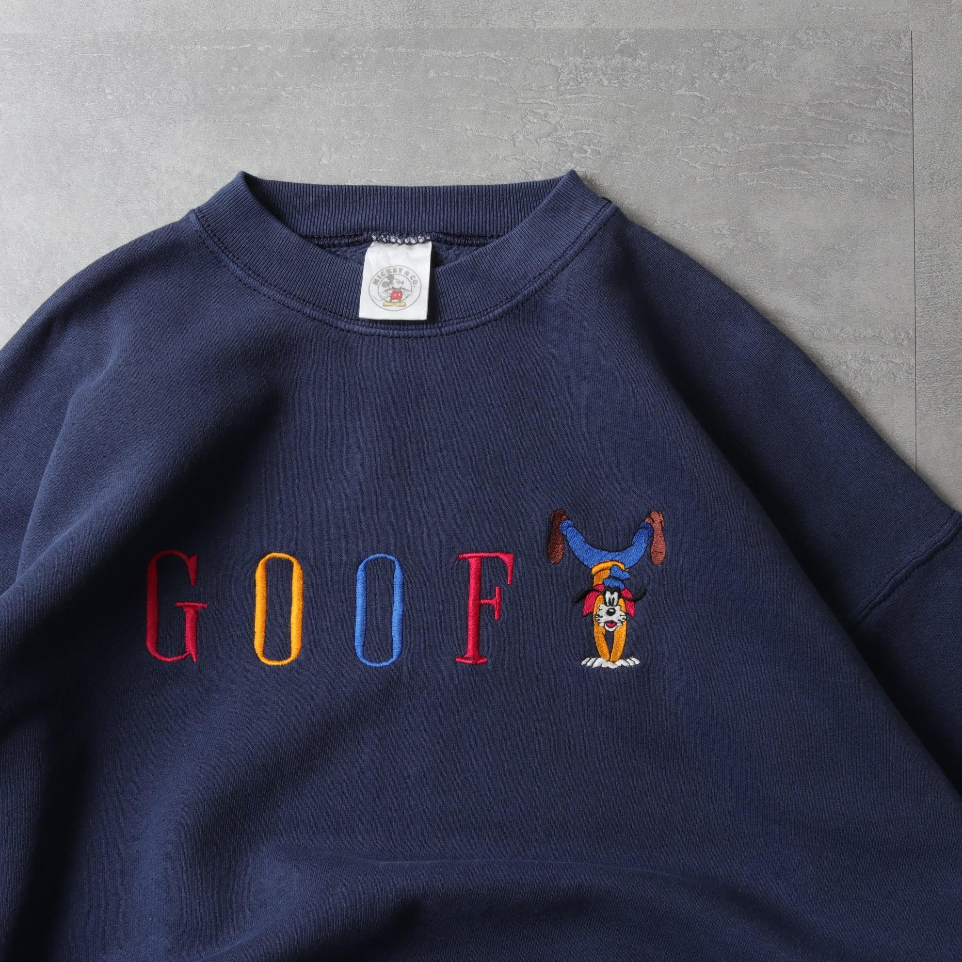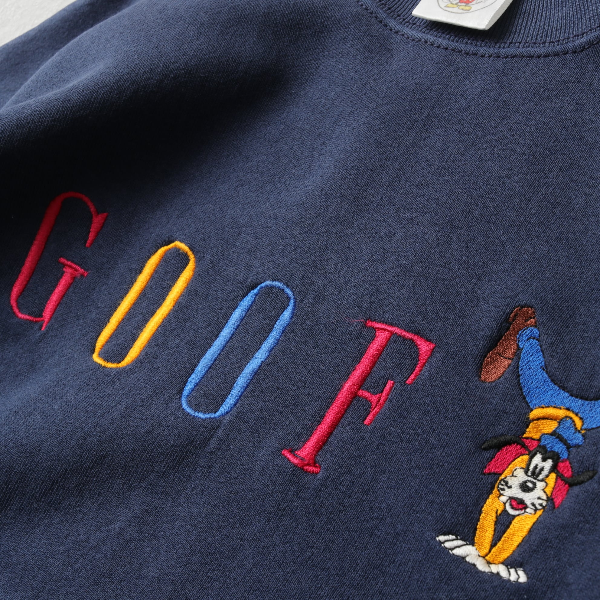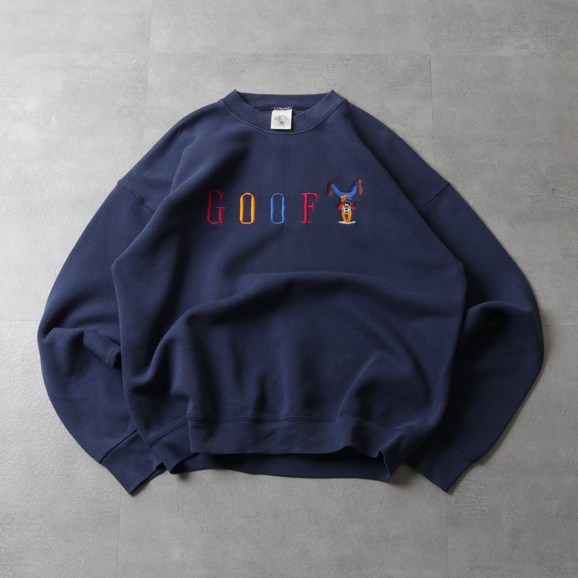 オフィシャルタグが付くアメリカ製のボディでレトロなグーフィの刺繍プリント。