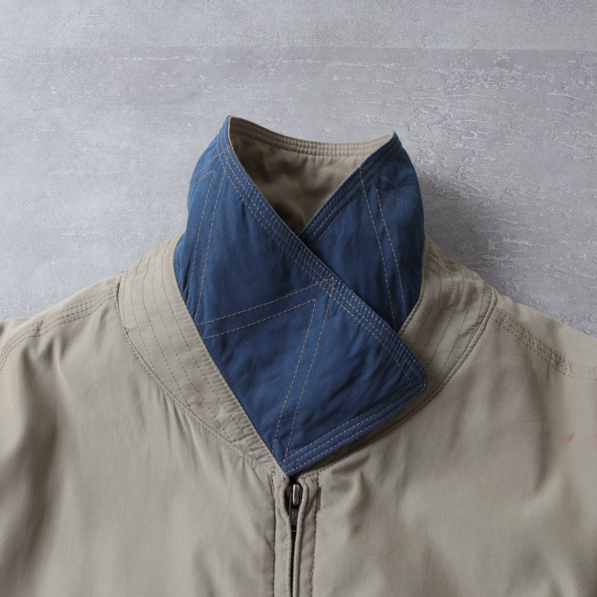 また襟を立てやすいよう補強ステッチが入っています。