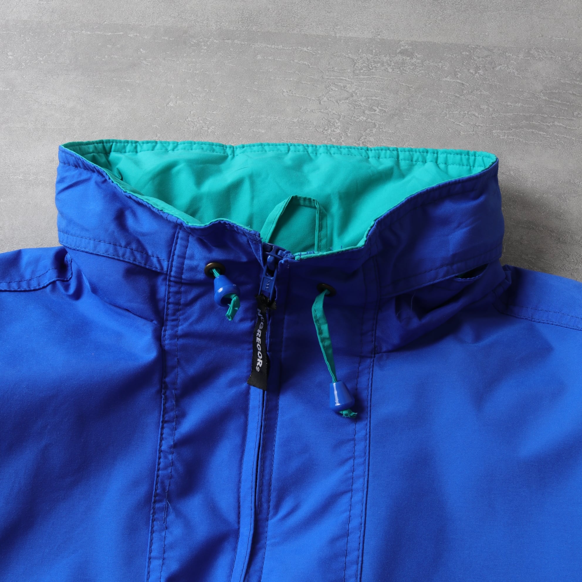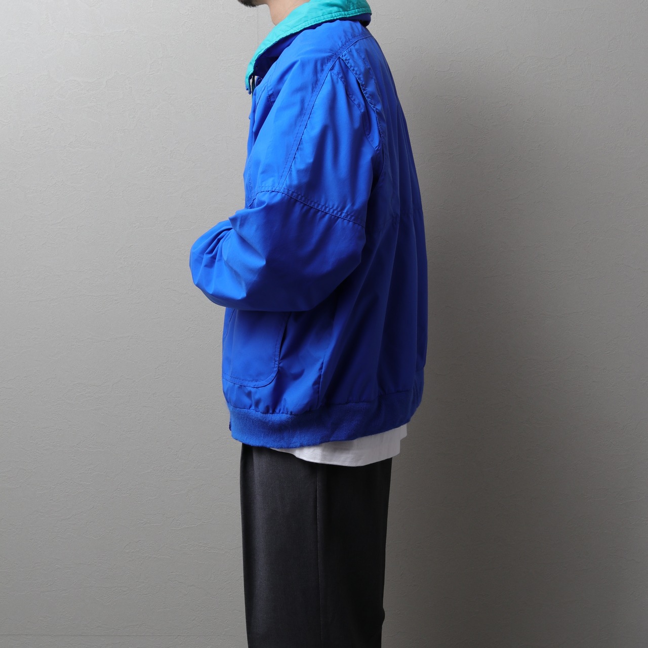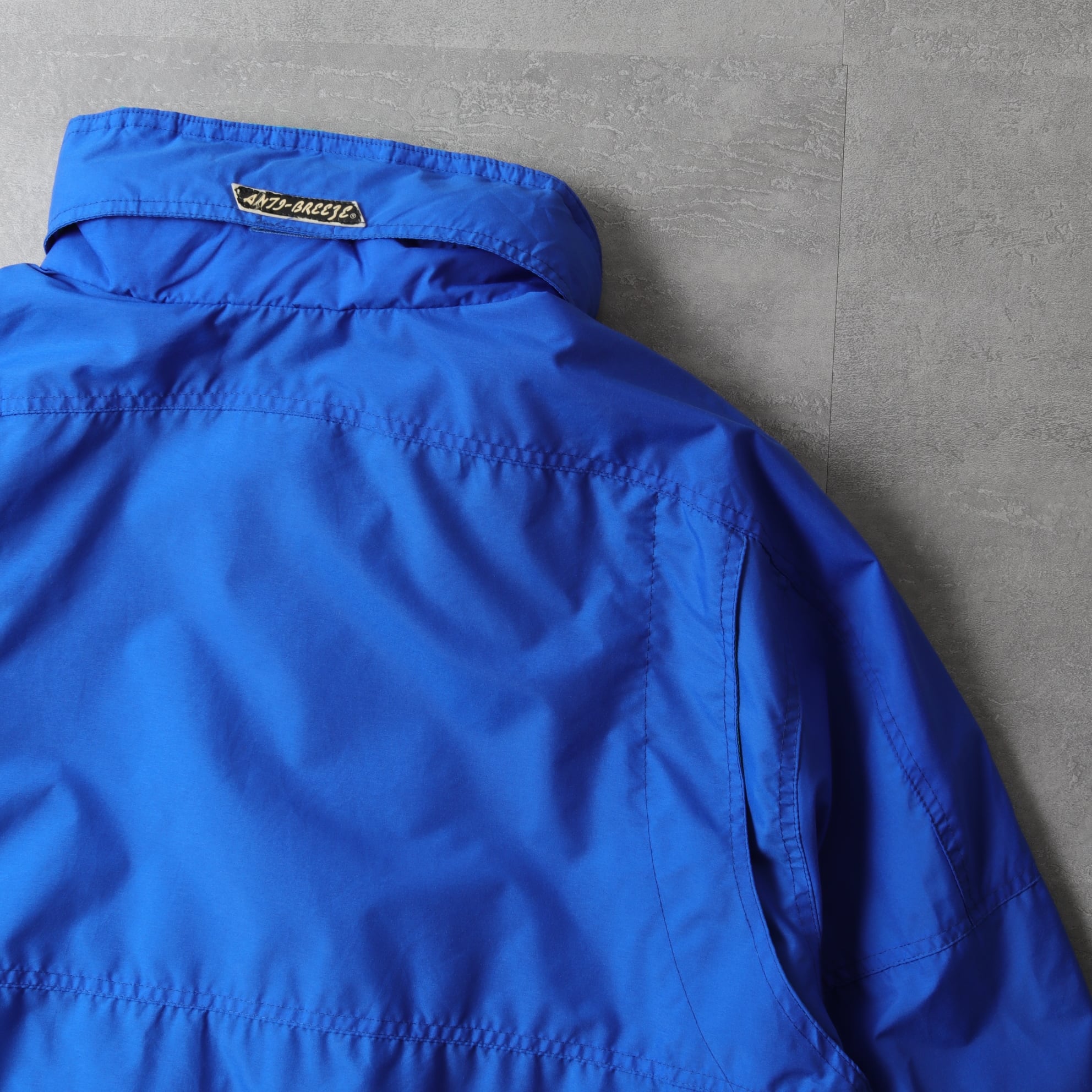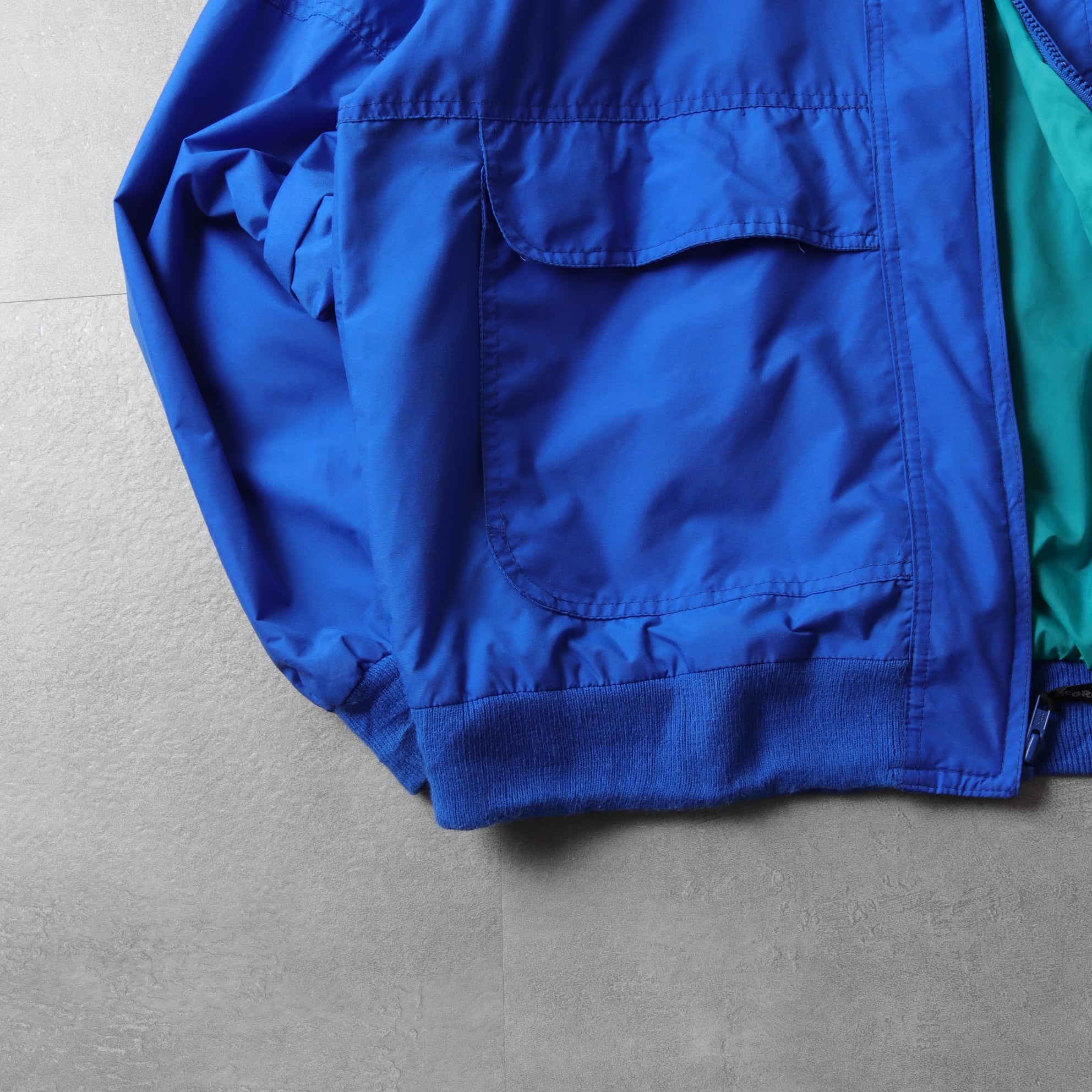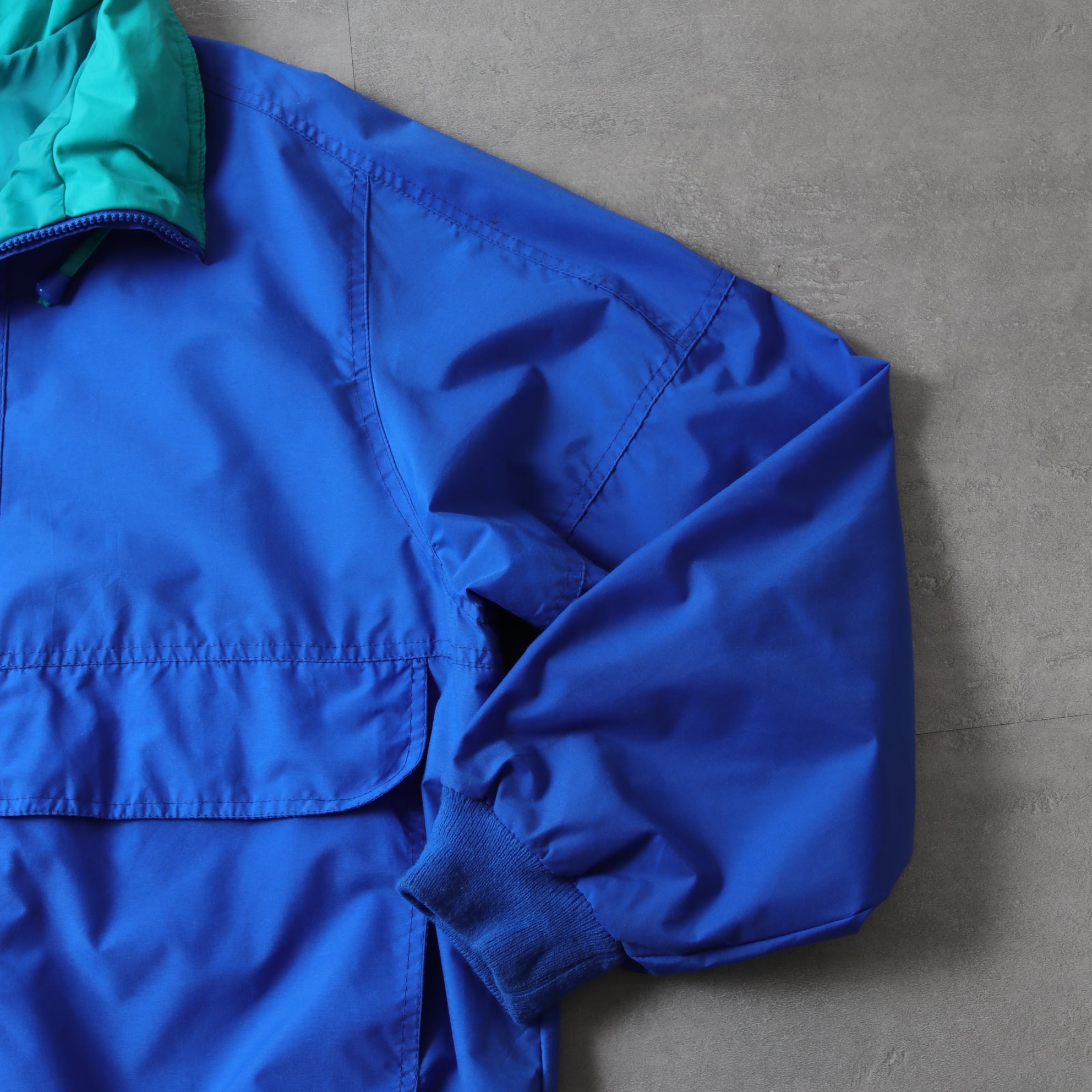 軽いナイロン生地で鮮やかなブルーにターコイズという90sらしい配色。