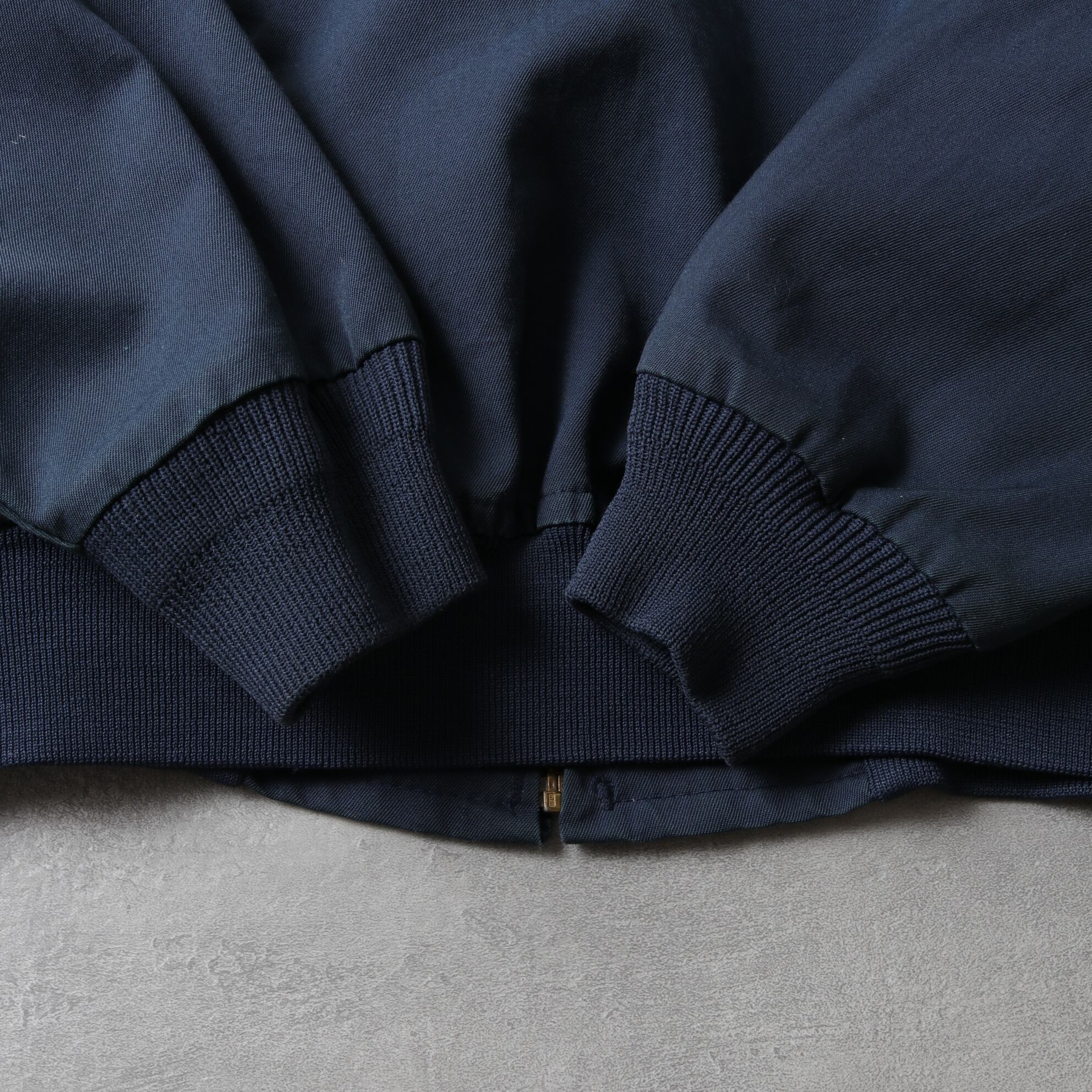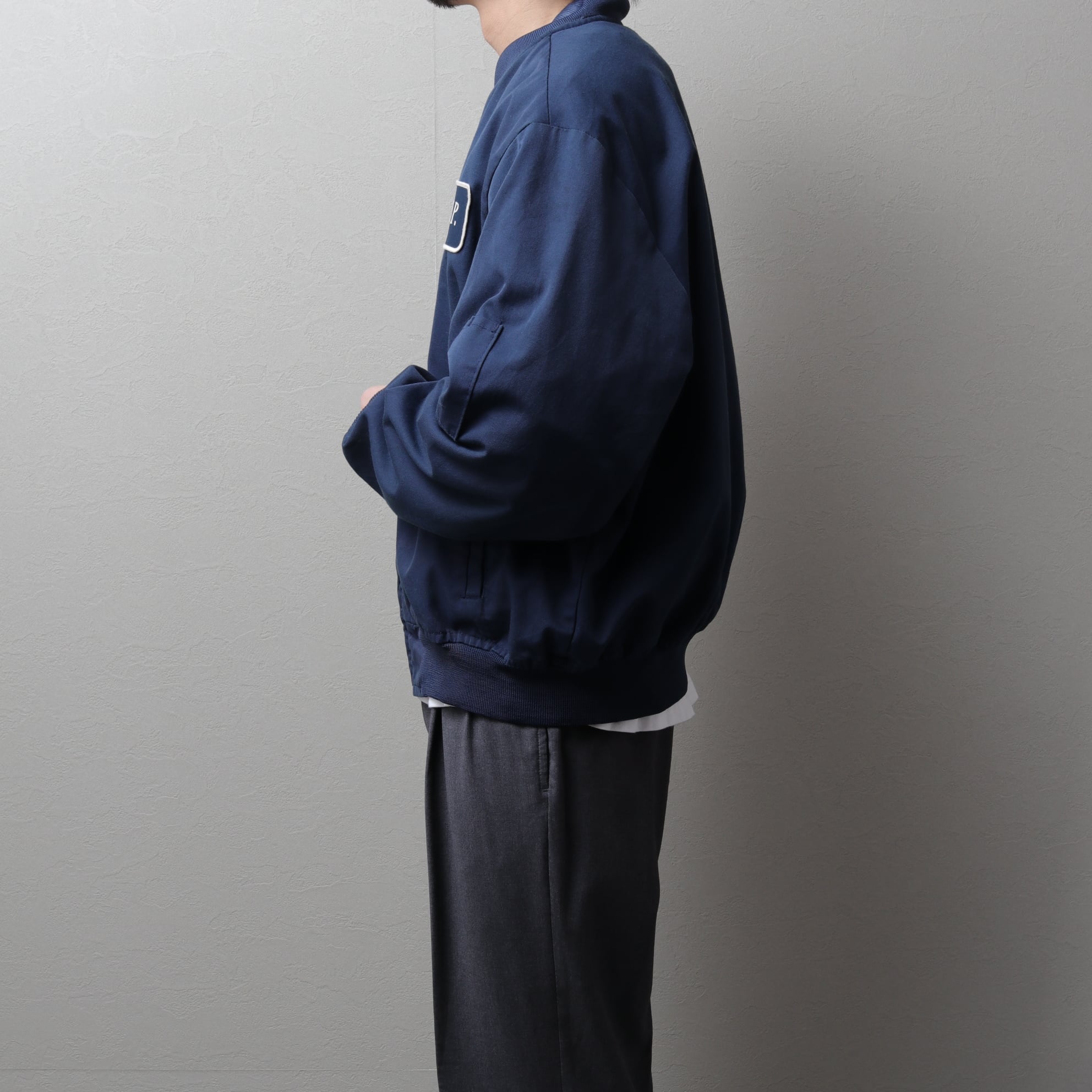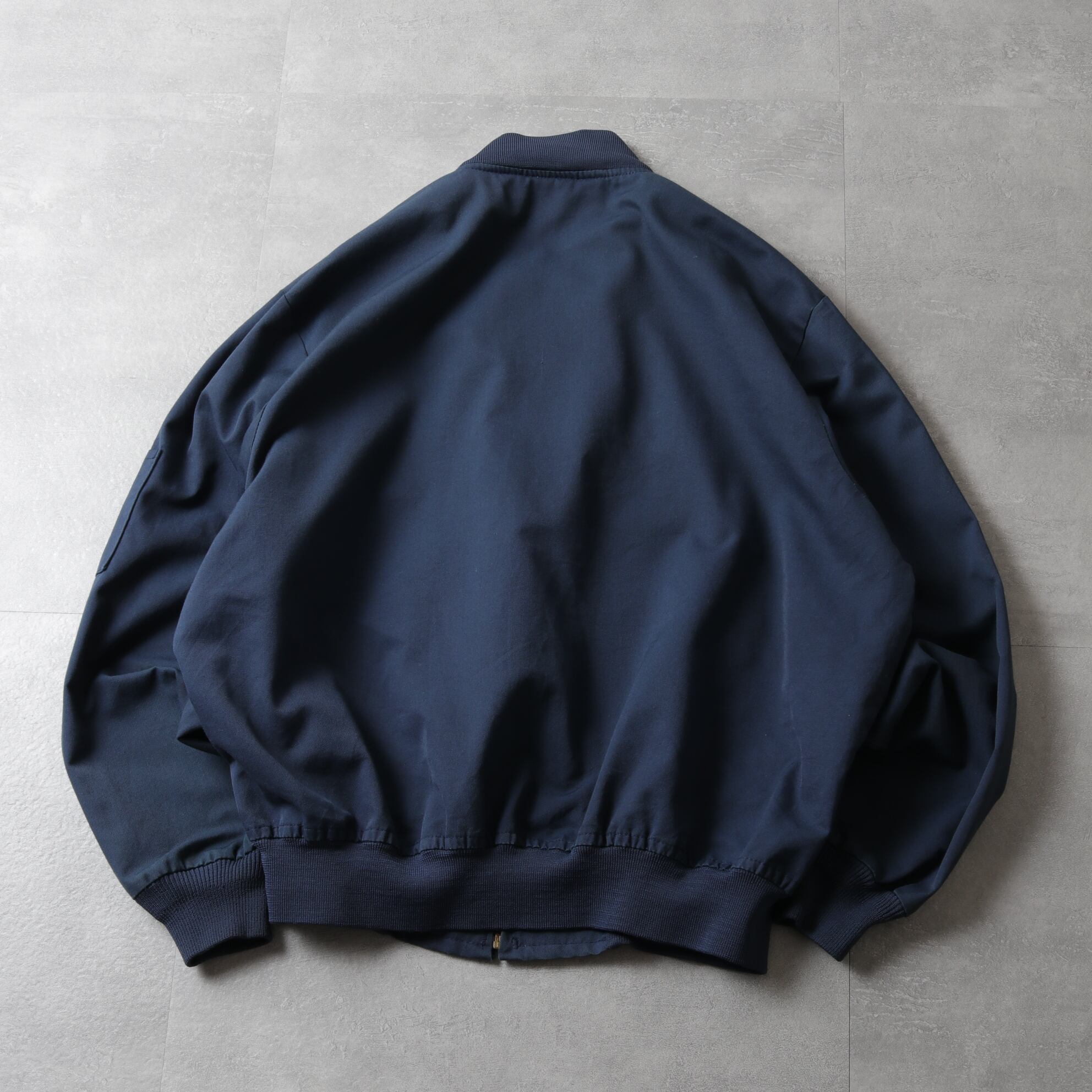 MA-1のようなリブ襟ブルゾンタイプでマッドなネイビーカラー。