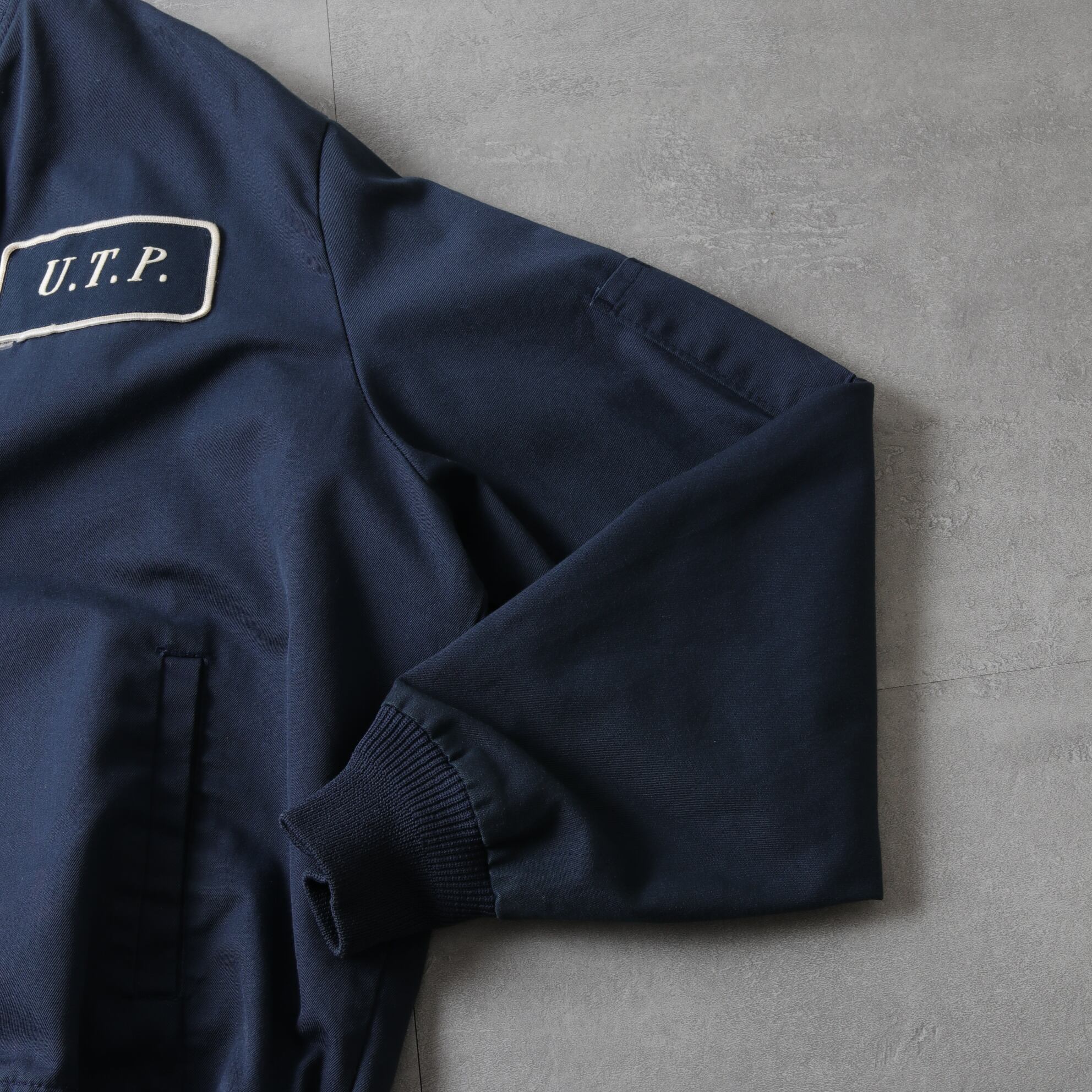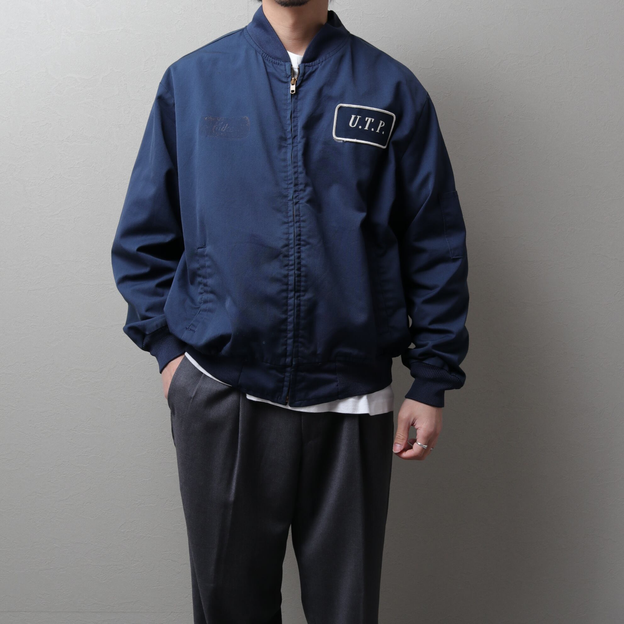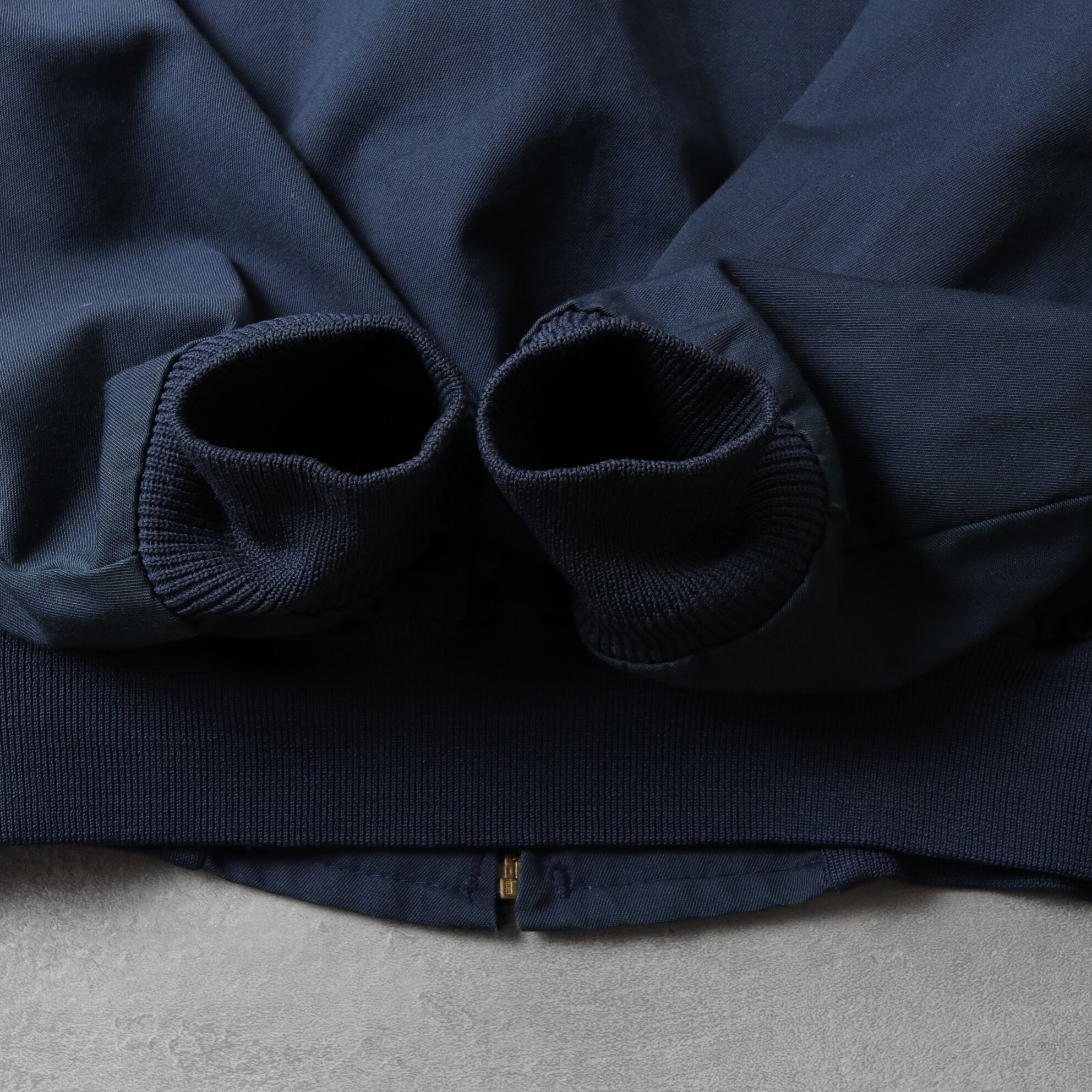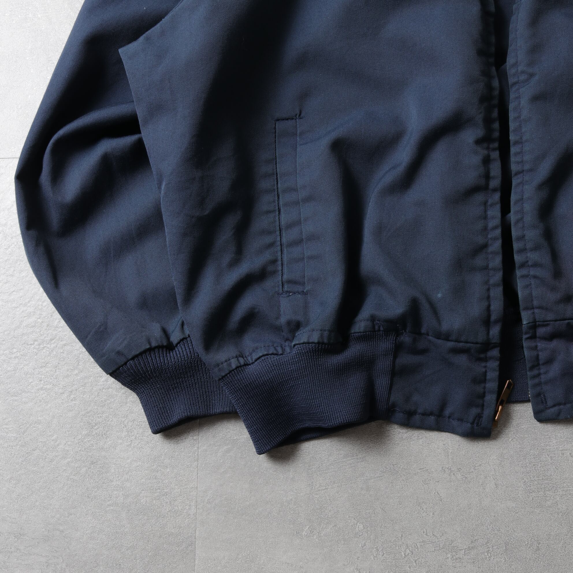 MA-1のようなリブ襟ブルゾンタイプでマッドなネイビーカラー。