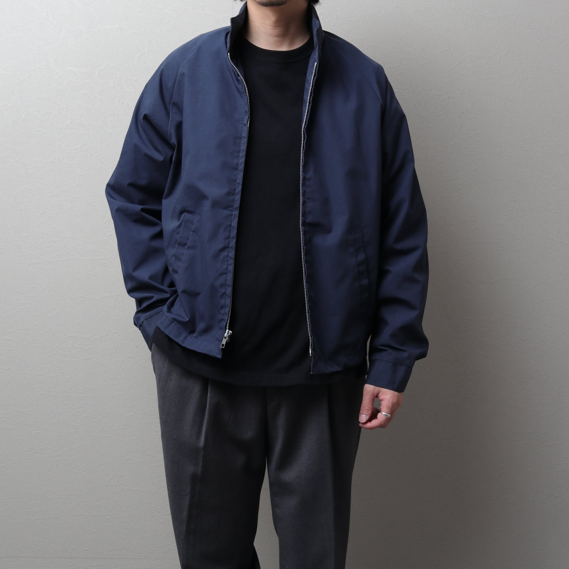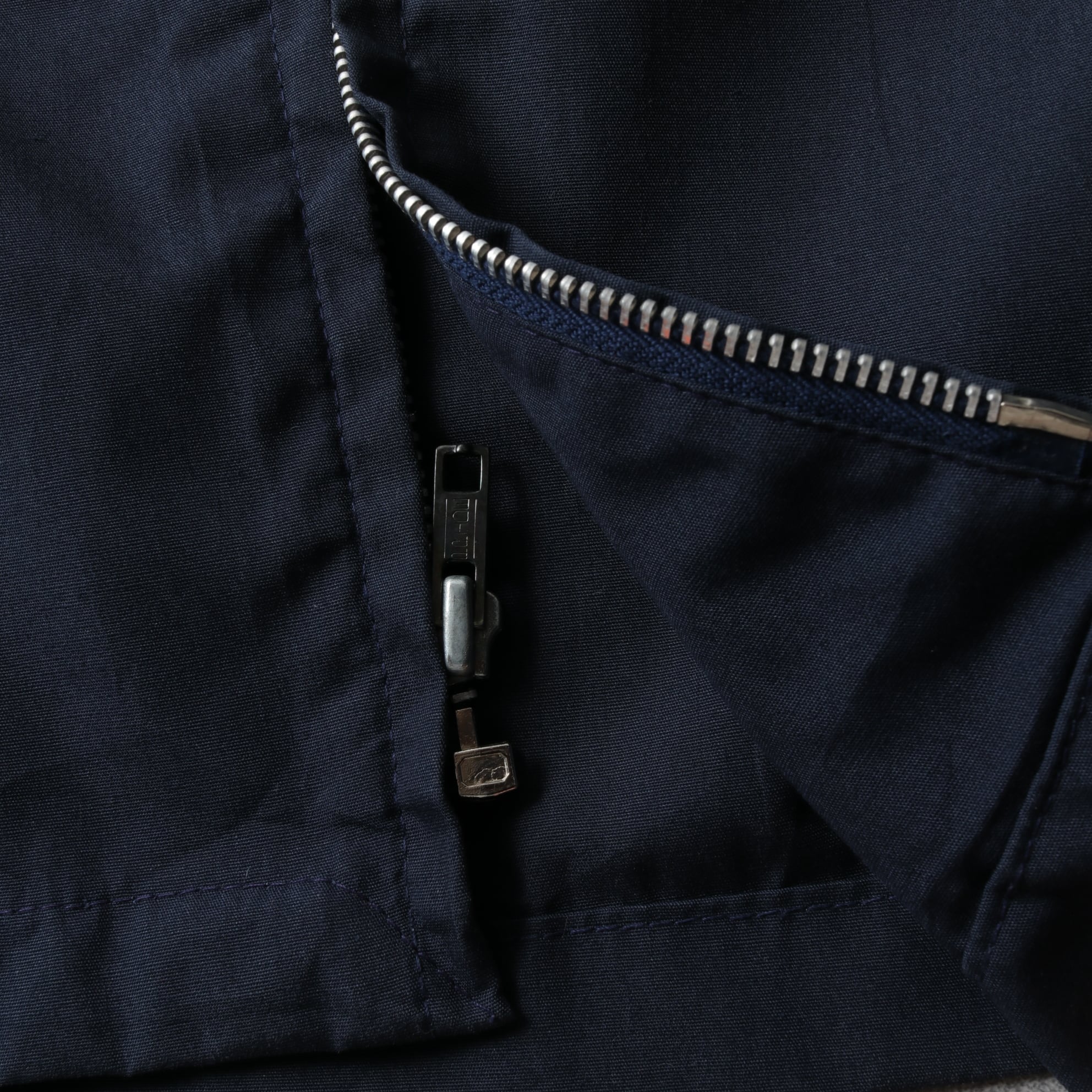 シャツ感覚で着れる一枚仕立てでオールネイビーにPRIDEのアルミジッパー。