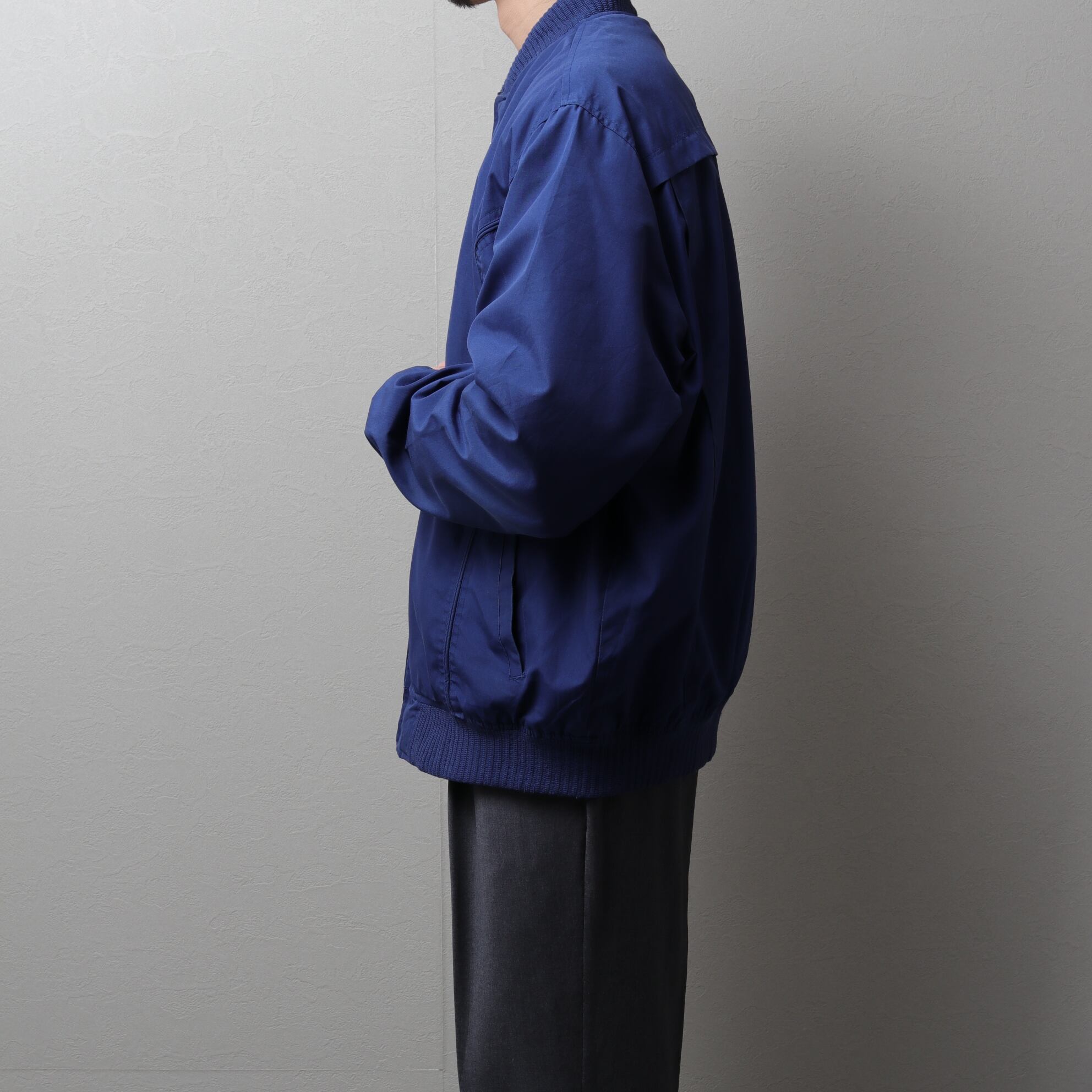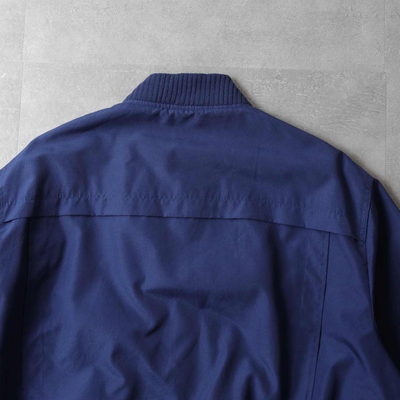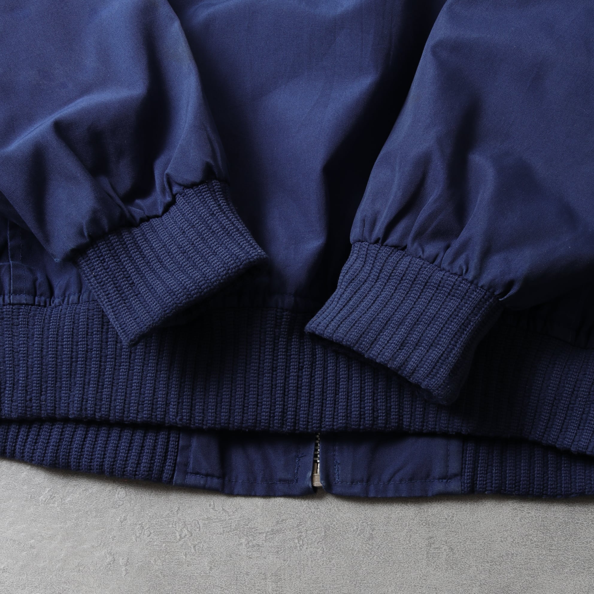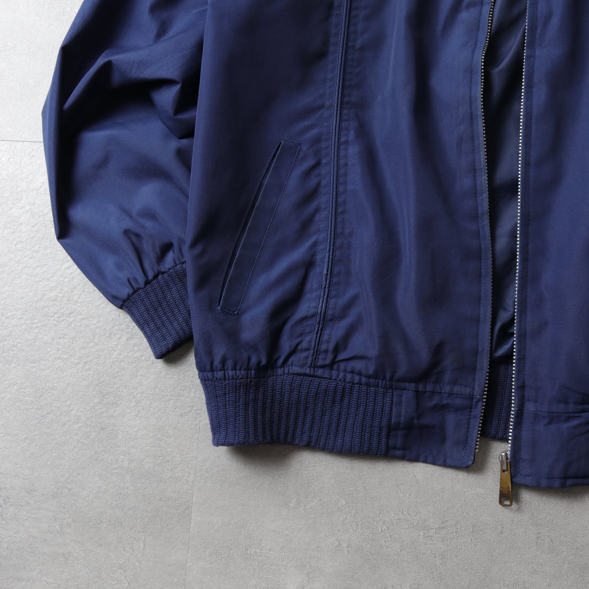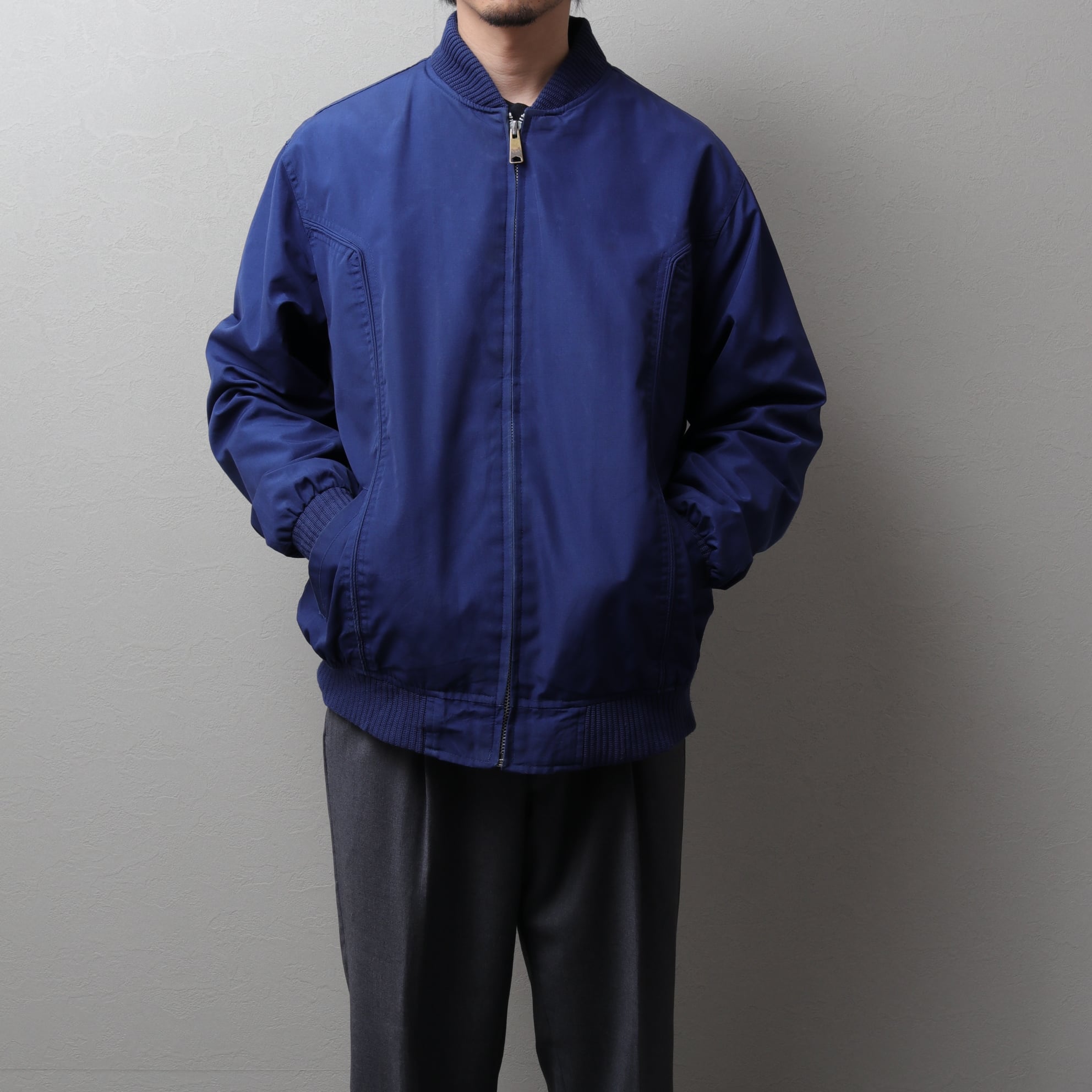 ポリコットンのタフな生地に襟、袖、裾にリブが付いたMA-1タイプ。