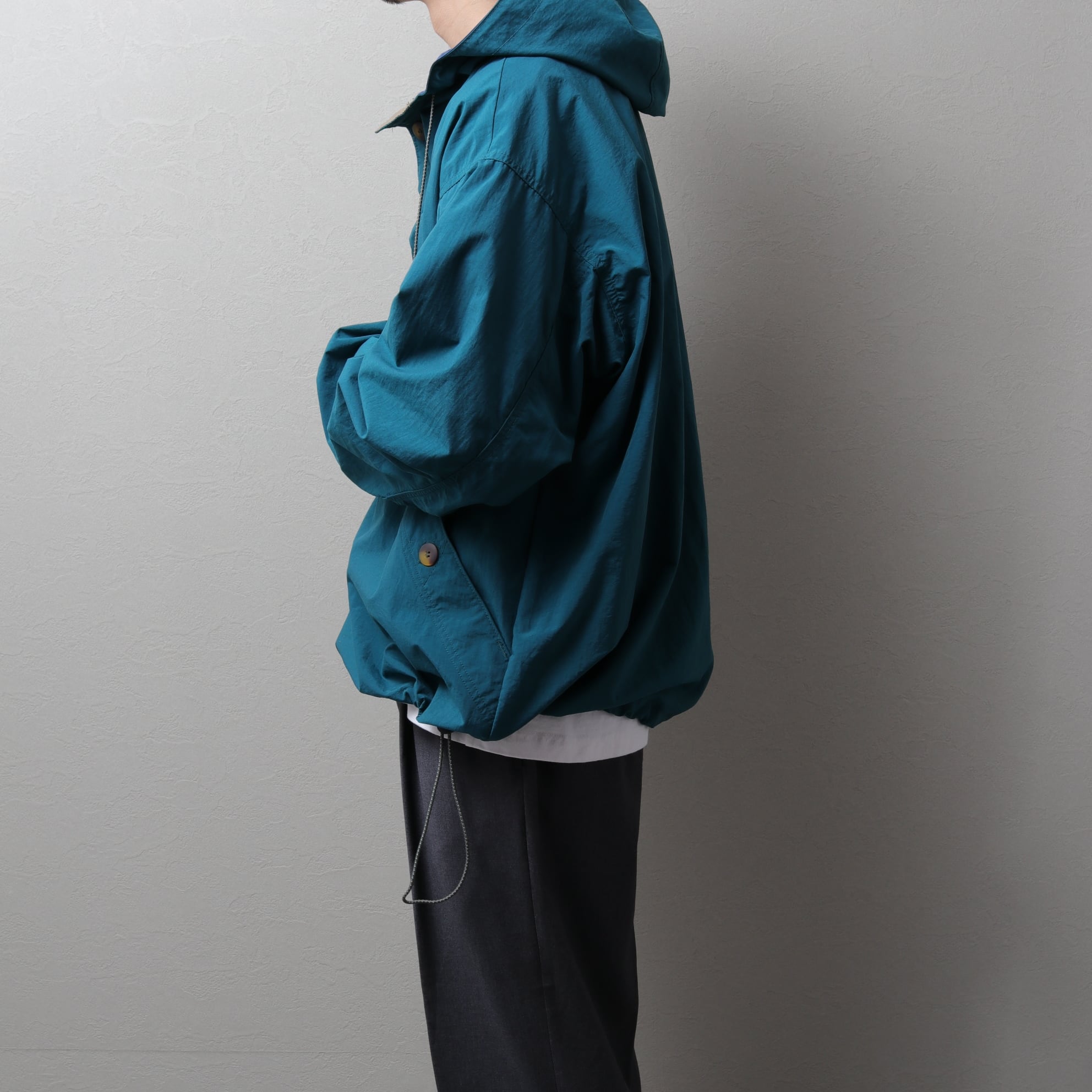 高密度に織られたシャリ感のあるナイロン生地で作られたアノラックで
