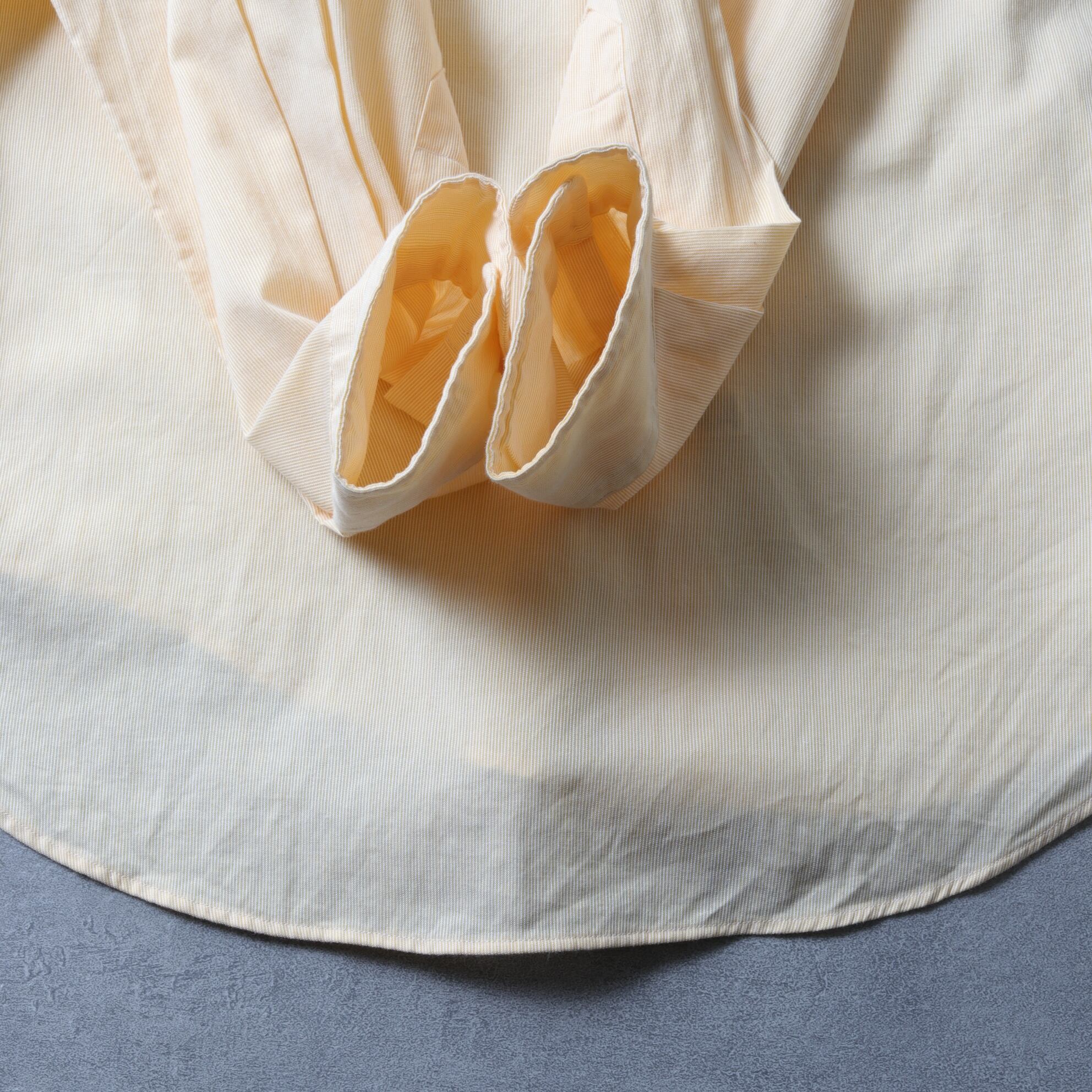 細かなストライプ織りの入った薄手のブロード生地で淡いイエロー。