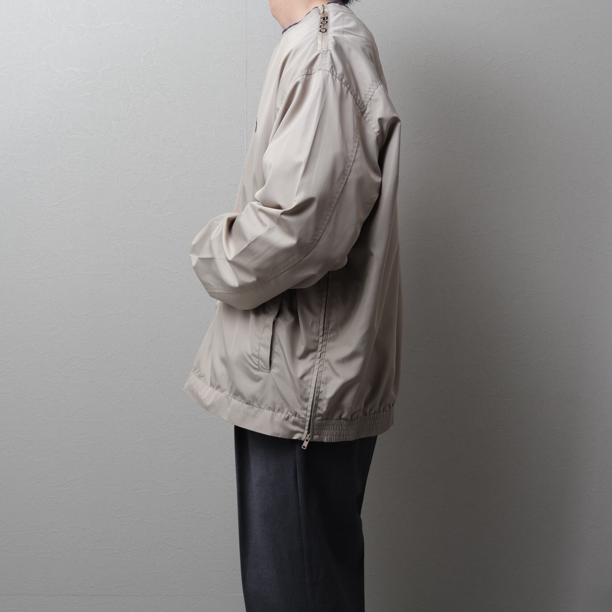 クルーネックで着脱とベンチレーションも兼ねたジッパーが首と裾に設置。